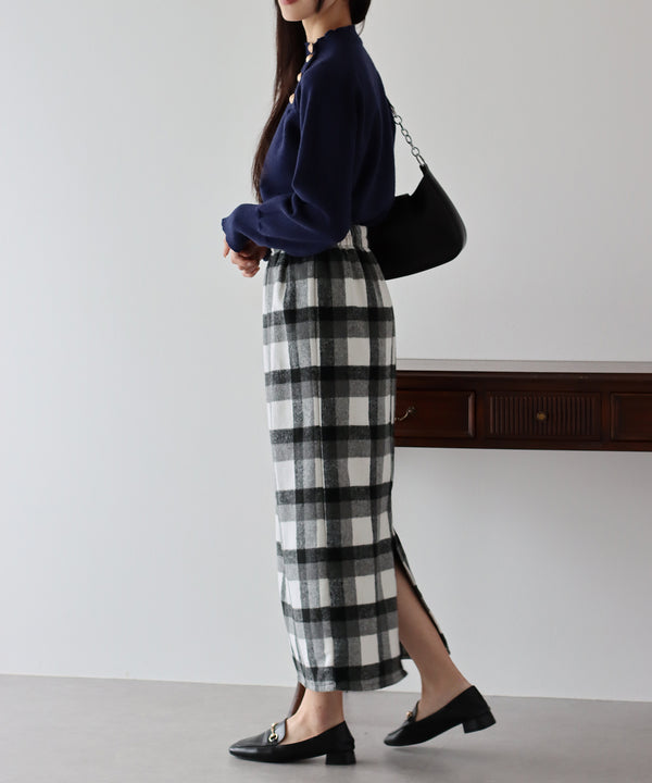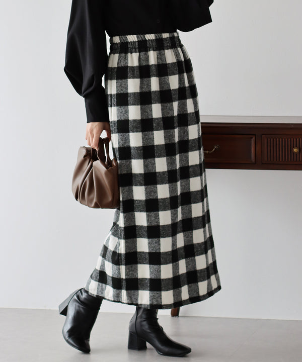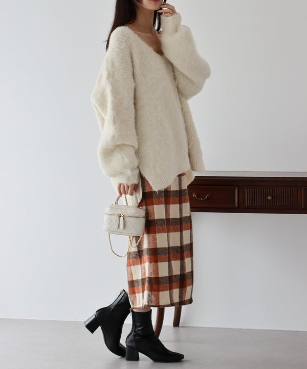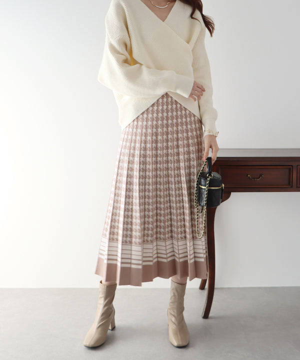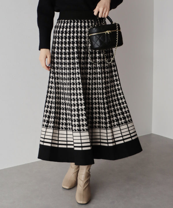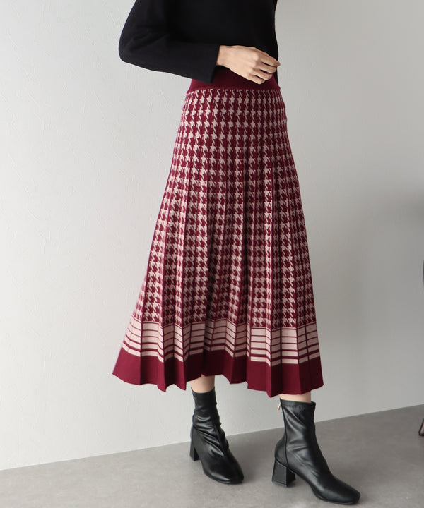 グッと秋冬感が高まるチドリ柄のニットスカートです。