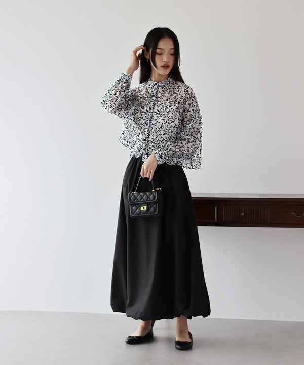 ご紹介したアイテムの中からチドリ柄のスカートでスタイリングを組んでみました!
