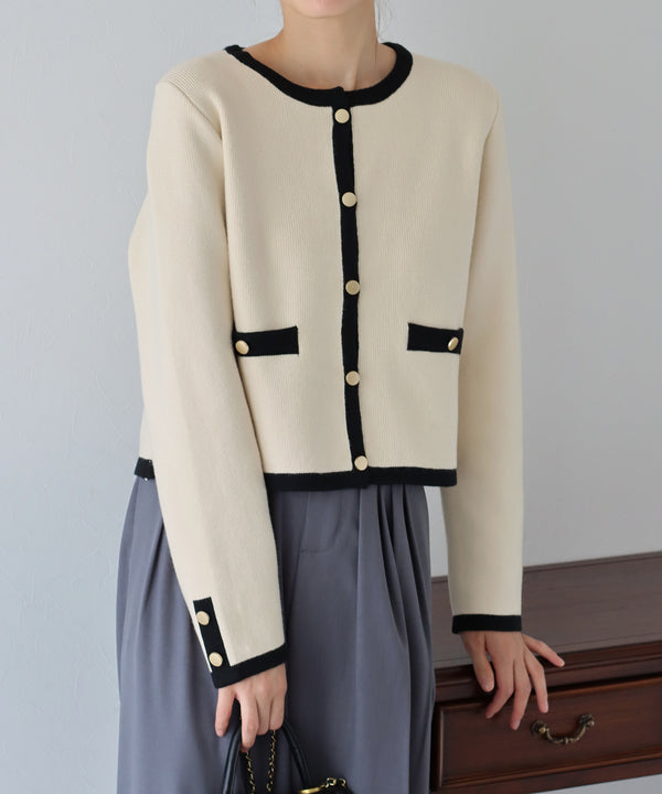 配色と金ボタンがアクセントになっているニットジャケットが一番注目度が高いアイテムでした!