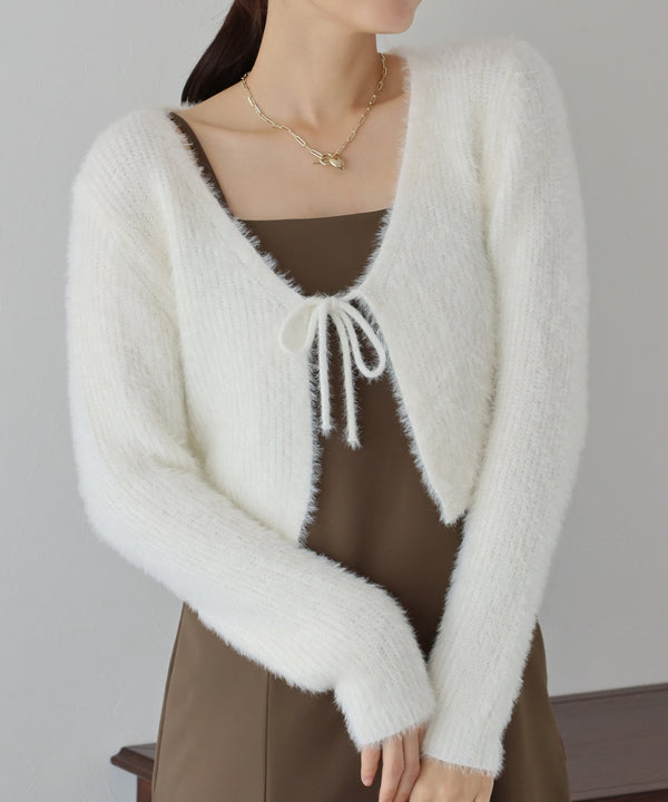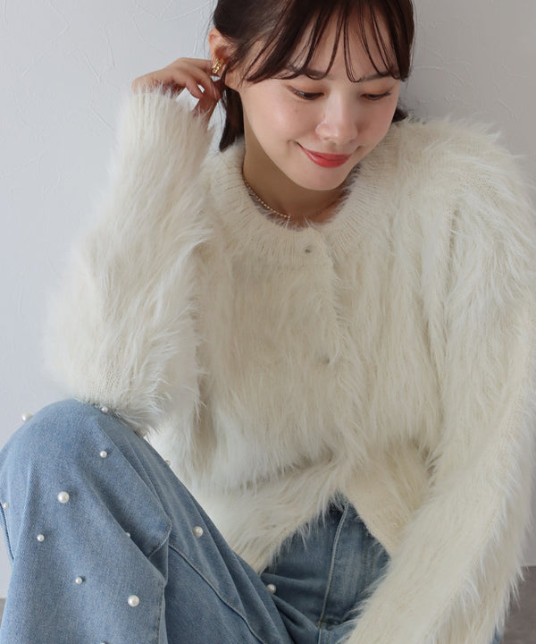 2位のカーディガンと同じシャギーのカーディガンですが、こちらは毛足が短く