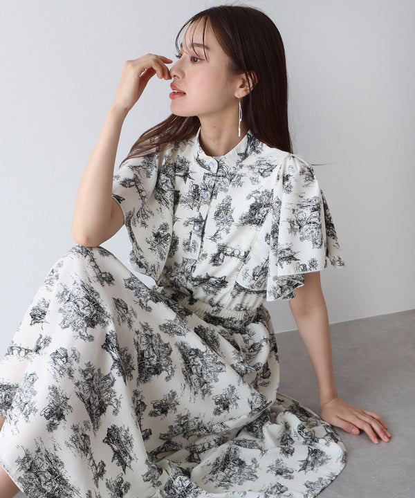 花柄フレアケープスリーブワンピース