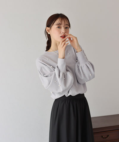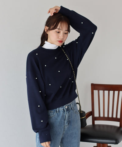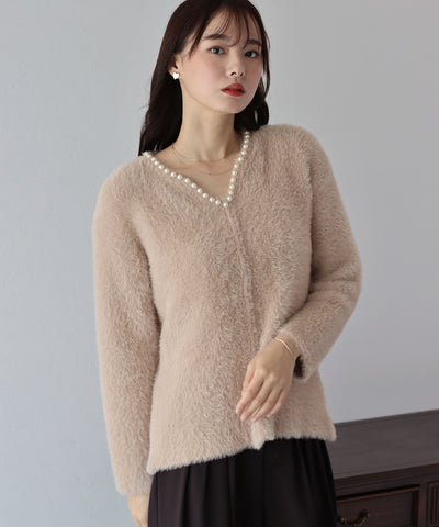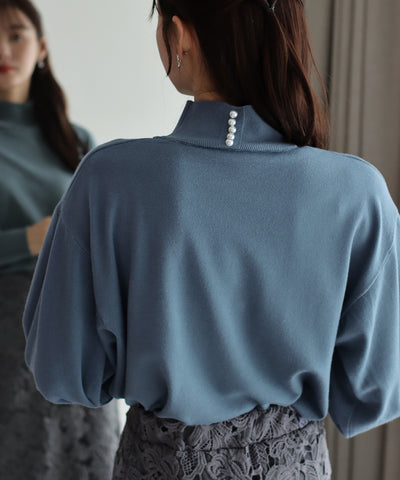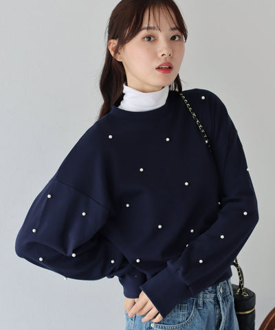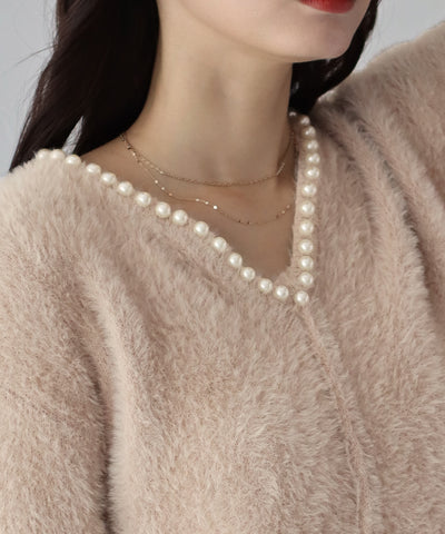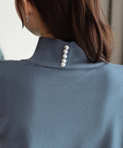 大きめのパールが付いた一枚で決まるきれいめニット。