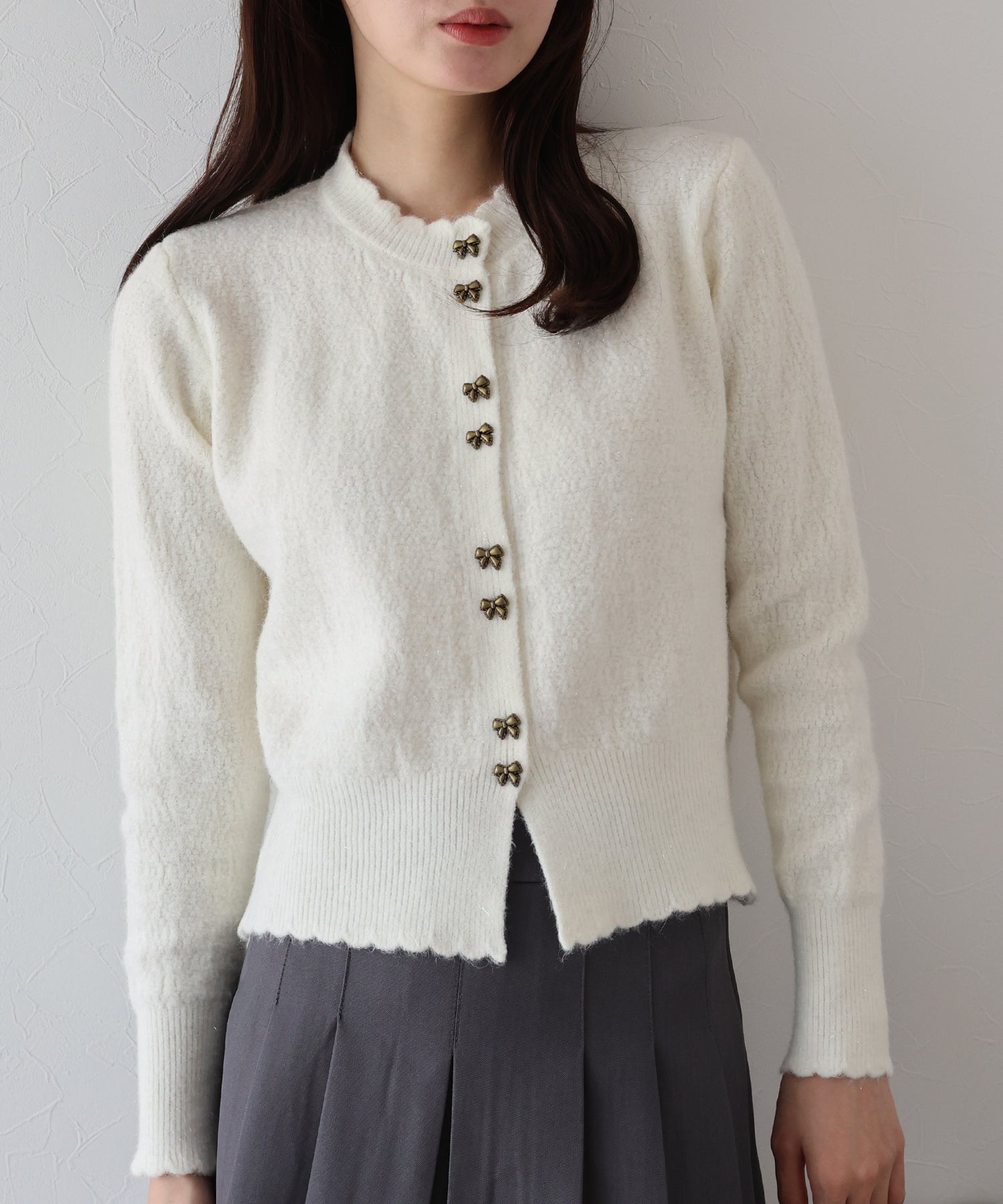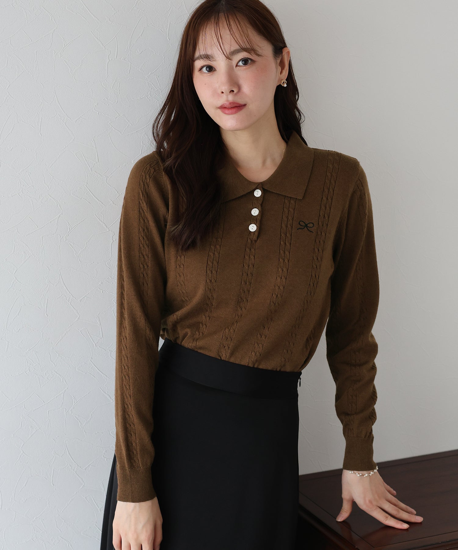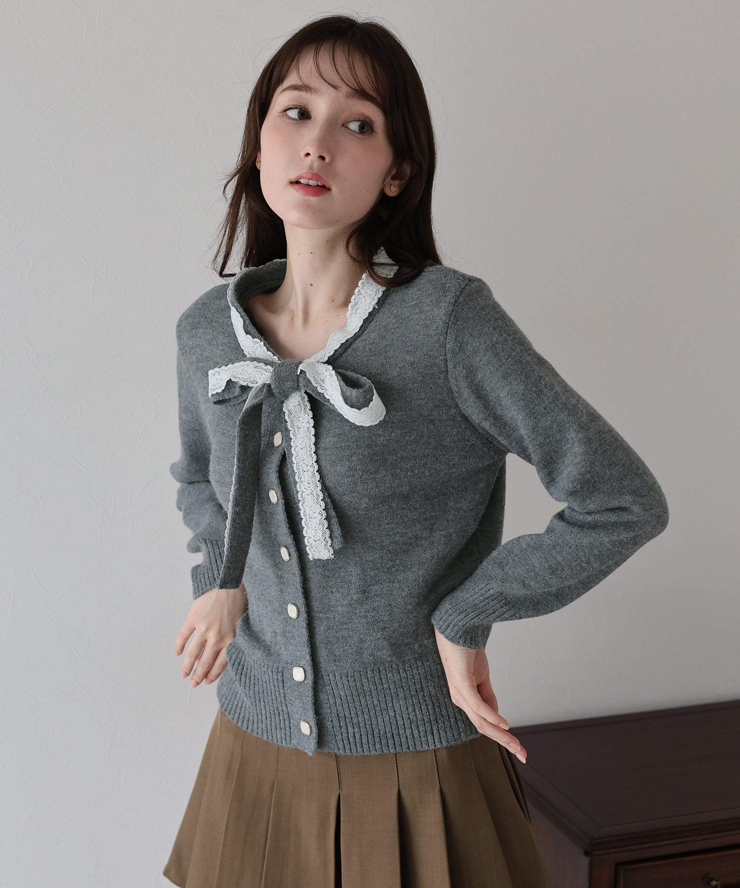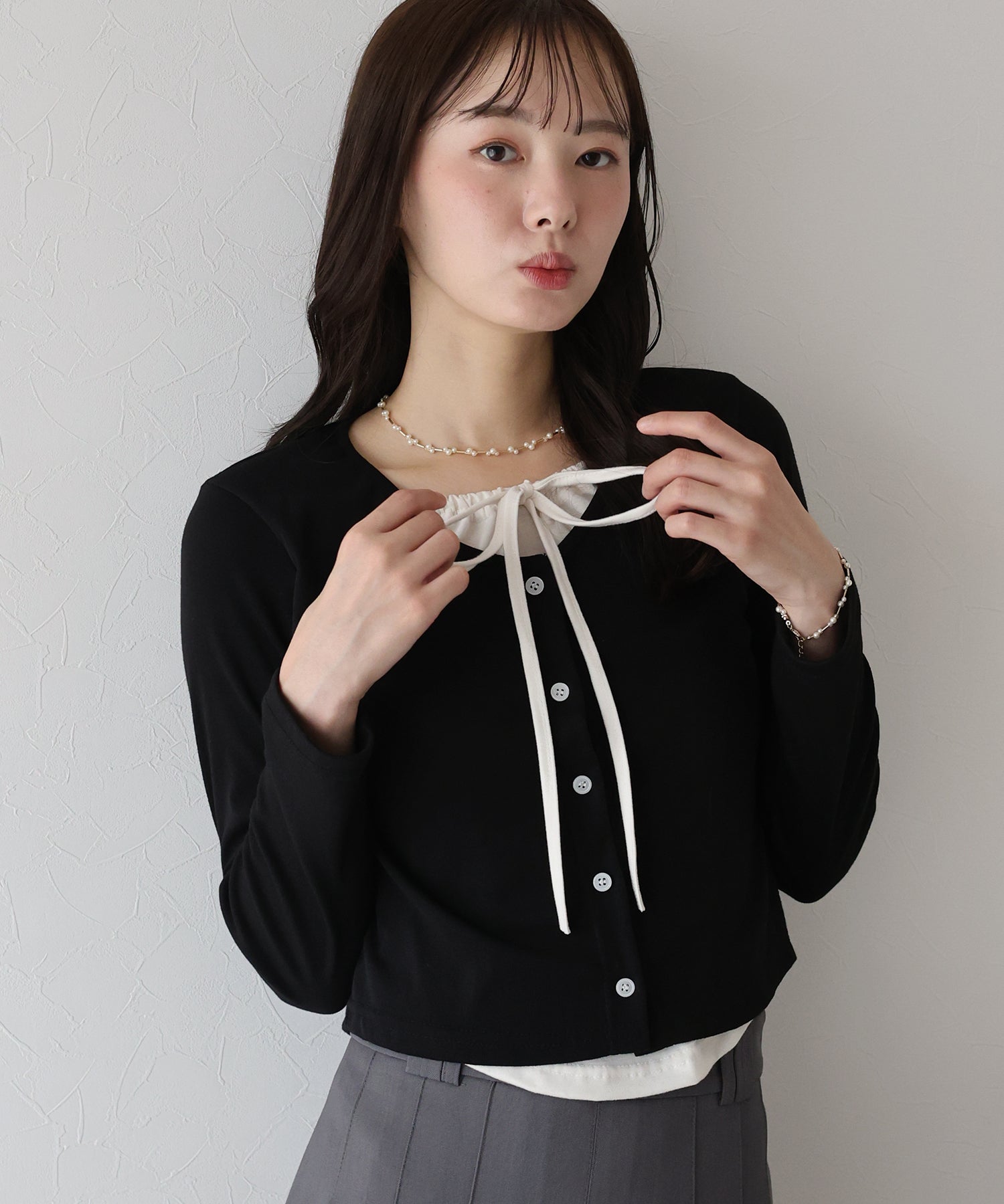【早割5%OFF】リボン袖ドッキングケーブルニット