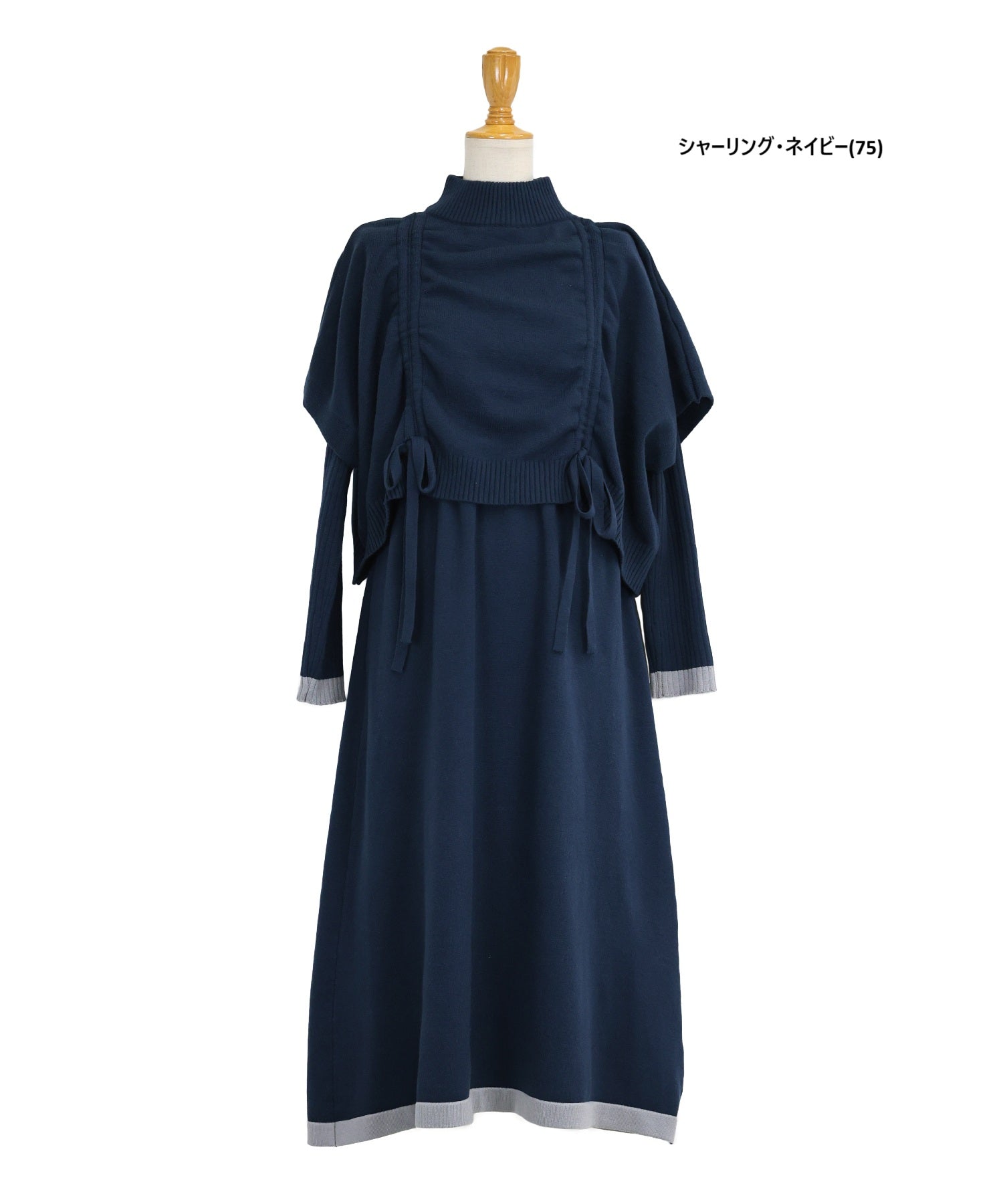 選べる2丈・吸湿発熱・リボンケープニットベスト&リブニットワンピース