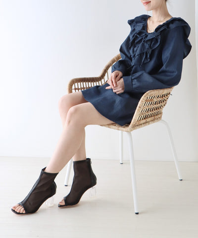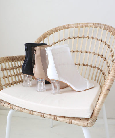 『 クリアヒールオープントゥメッシュブーツ 』