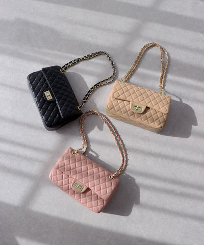 キルティングとゴールドチェーンが上品な印象。