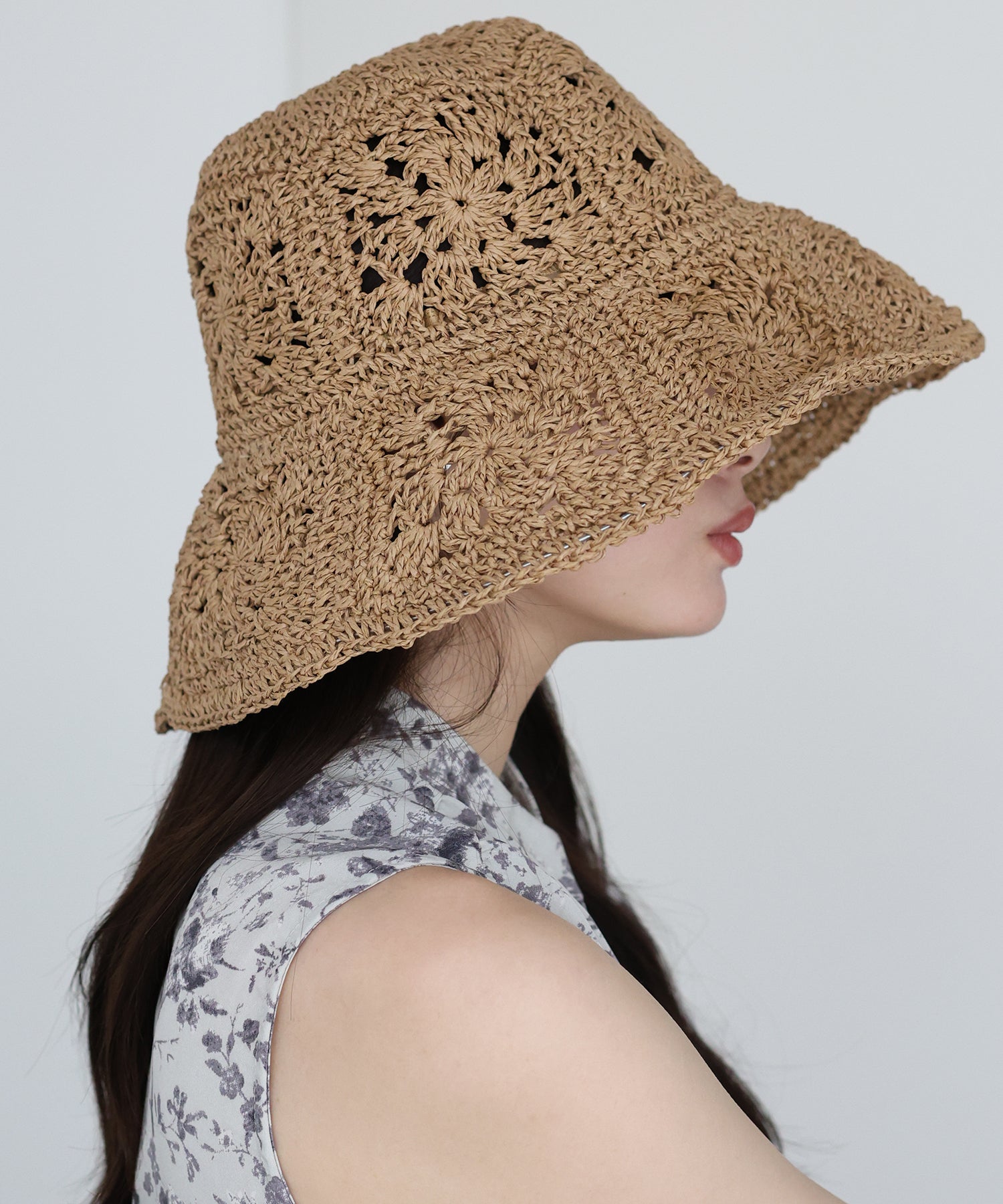 春夏のスタイリングに欠かせない涼しげなペーパーハット。ざっくりした編地なので通気性が良く、ツバ部分にワイヤーを入れているのでお好みの形にアレンジ可能。