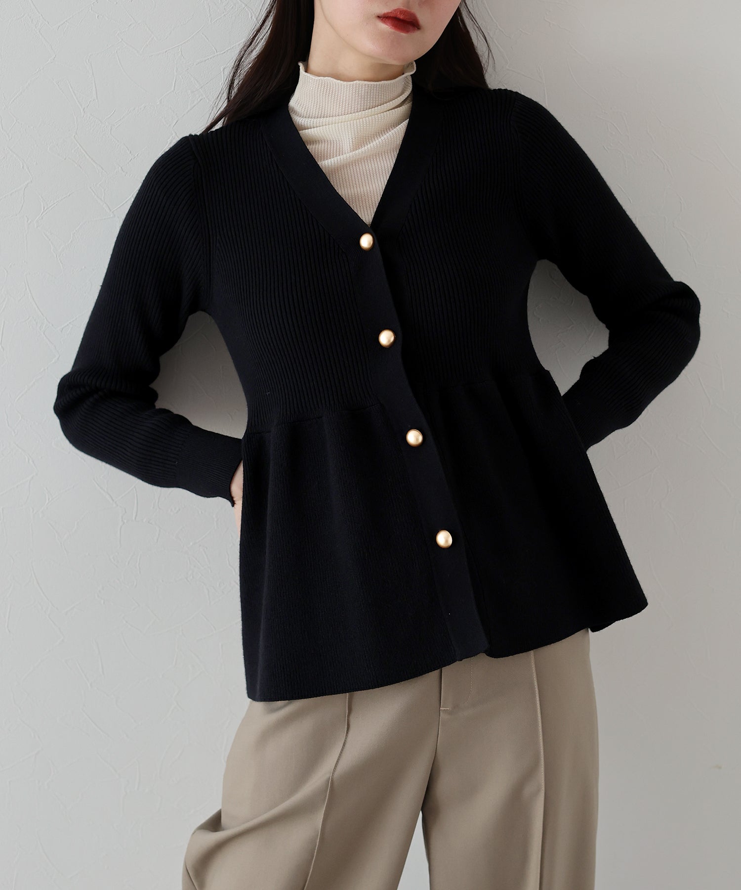 【TIME SALE】ゴールドボタンペプラムカーディガン[J by blue]