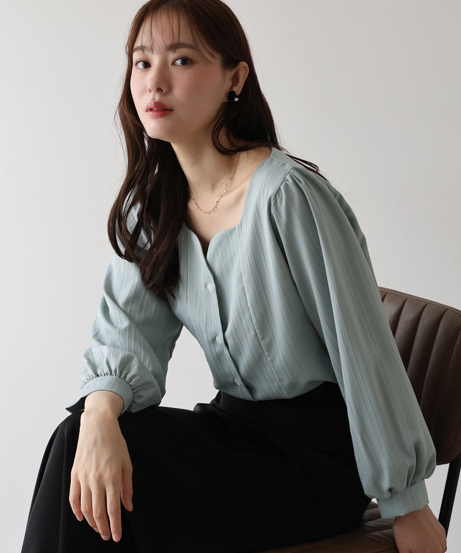 ほんのりハートを描くネックラインがポイントのブラウス。