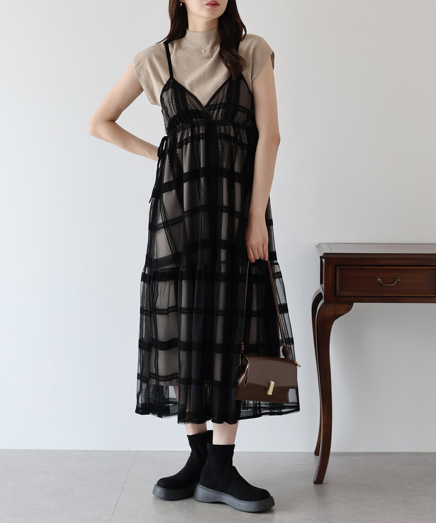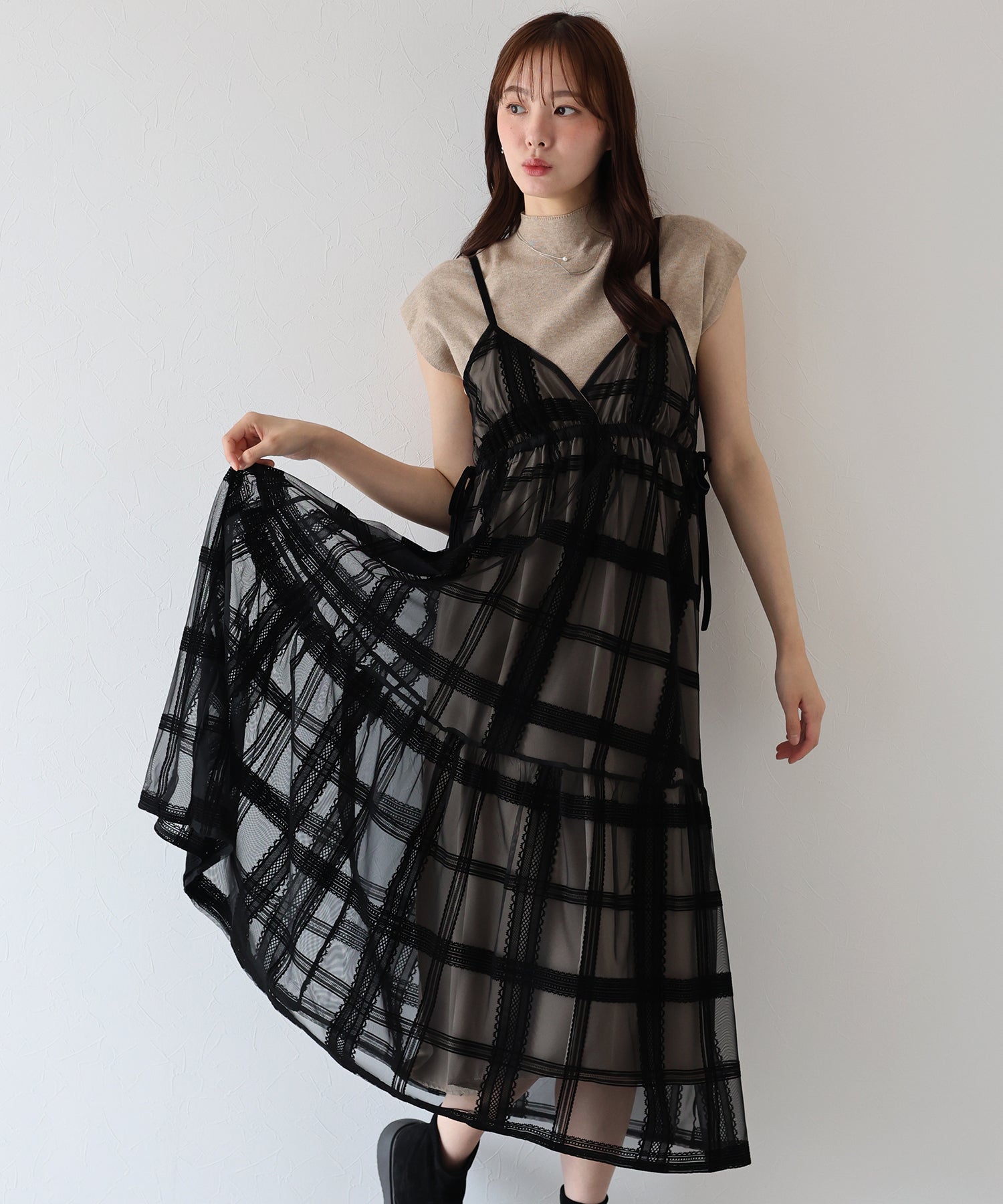 フロッキーチェックキャミワンピース