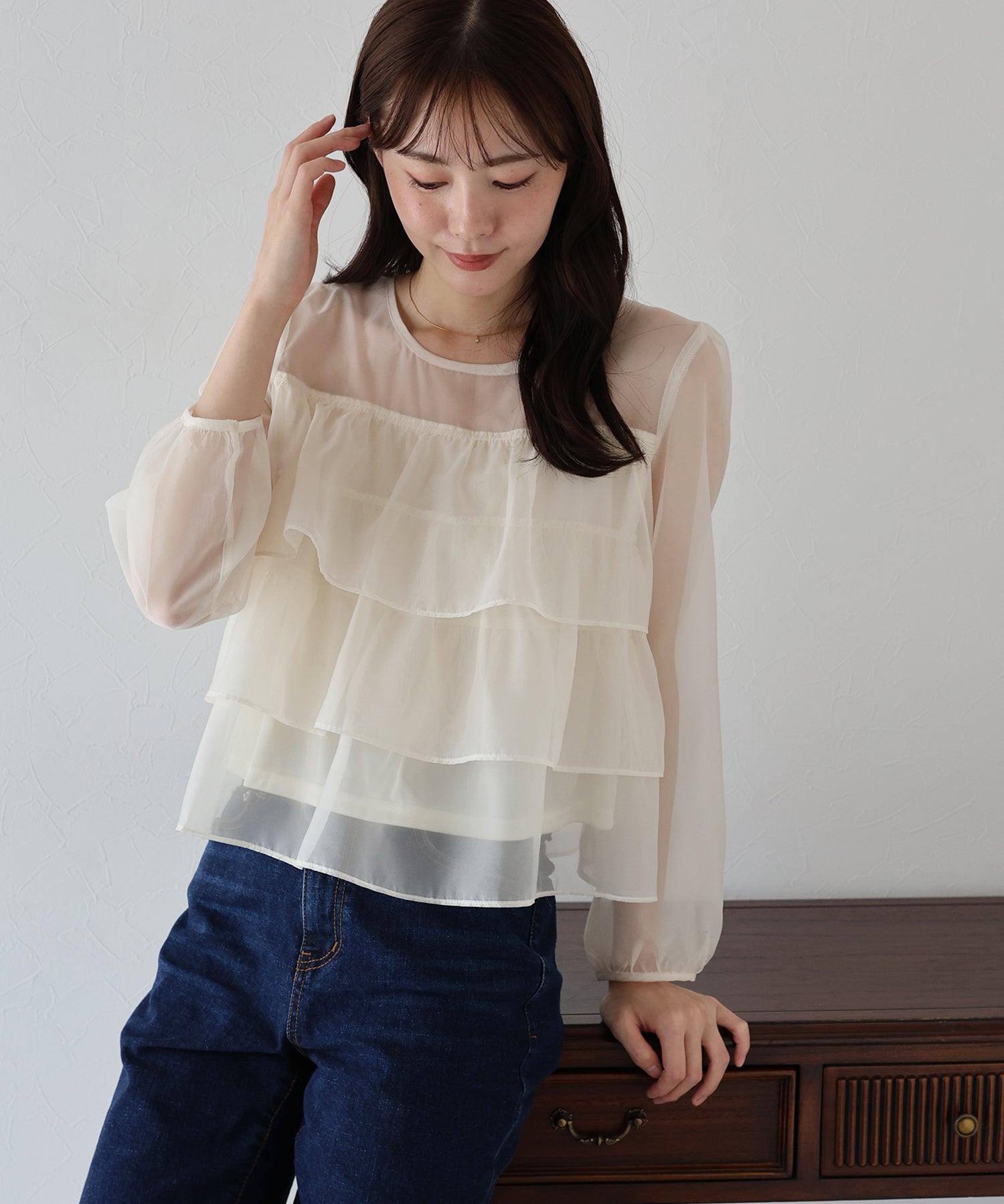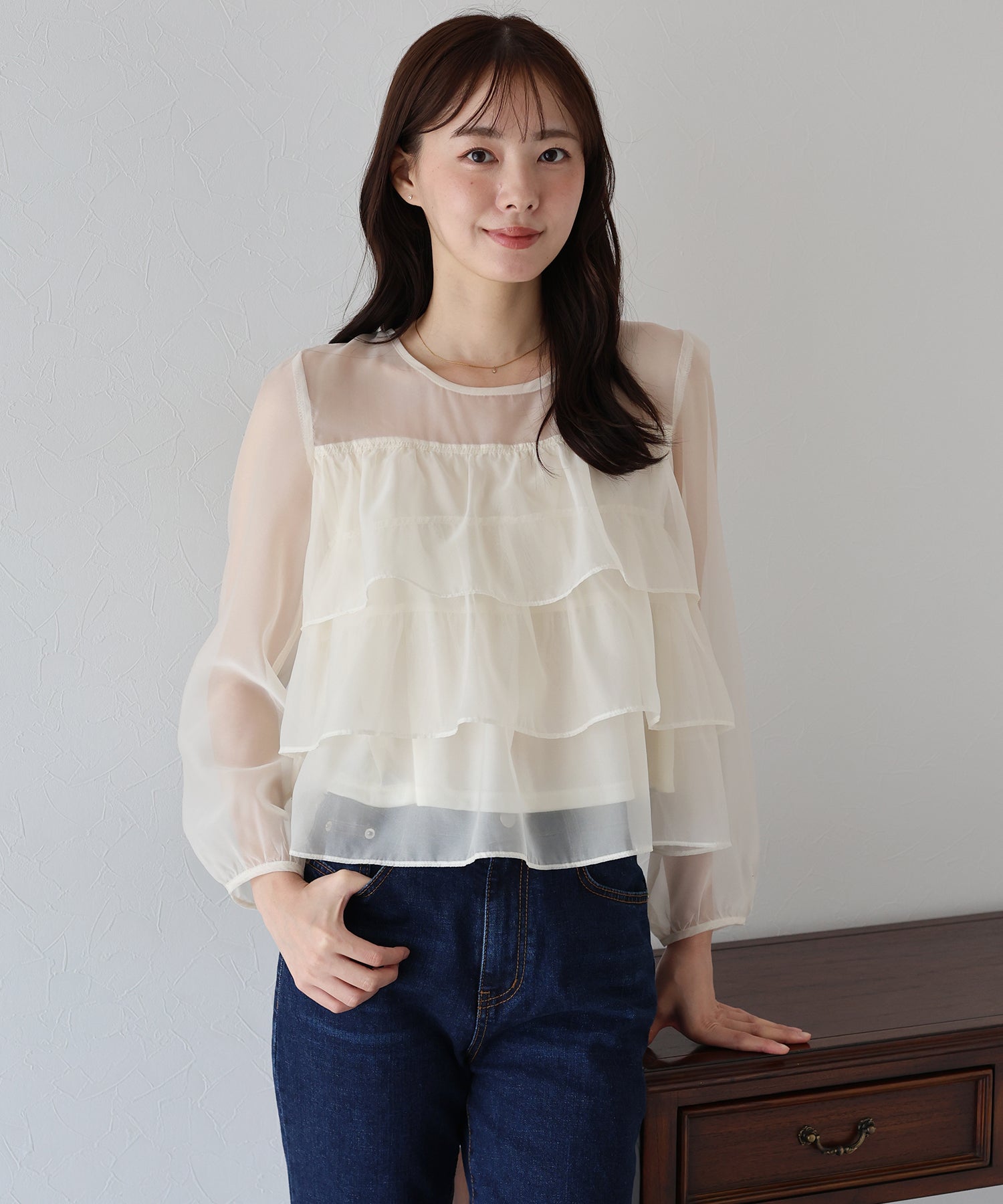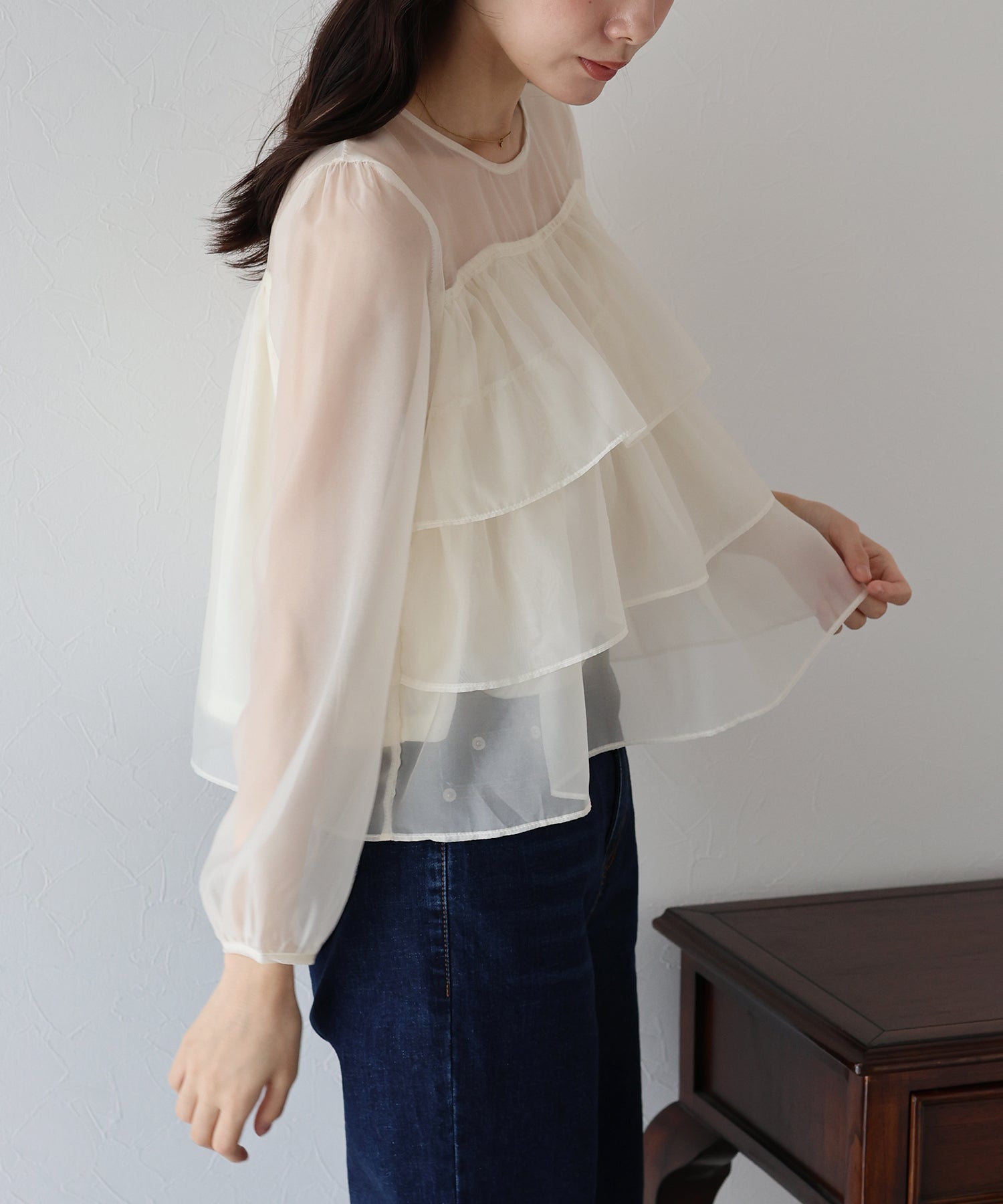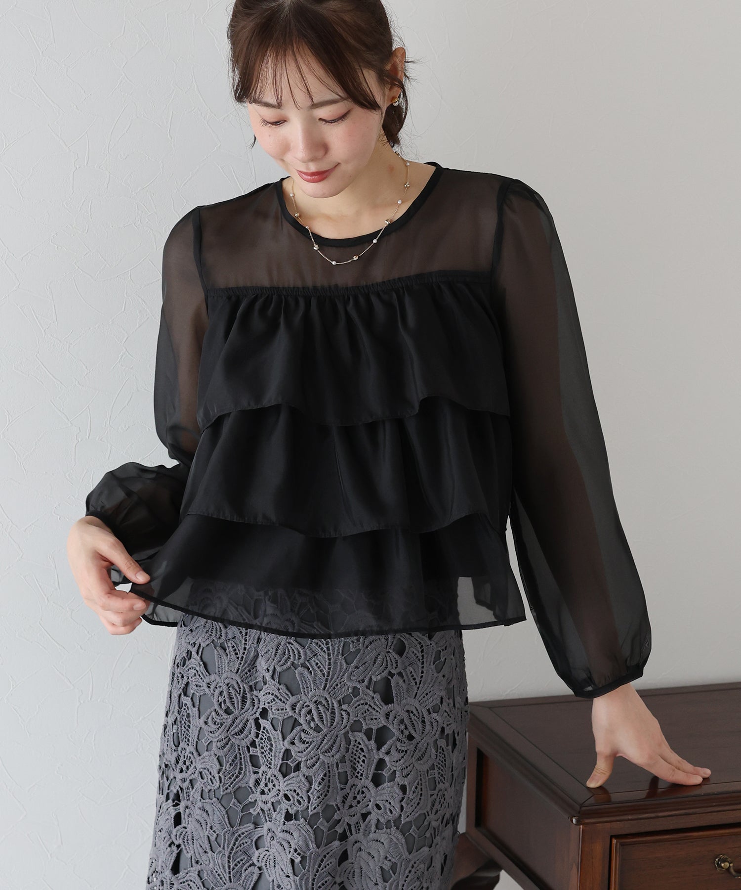 フェミニンなディテールが詰まったシアーティアードブラウス