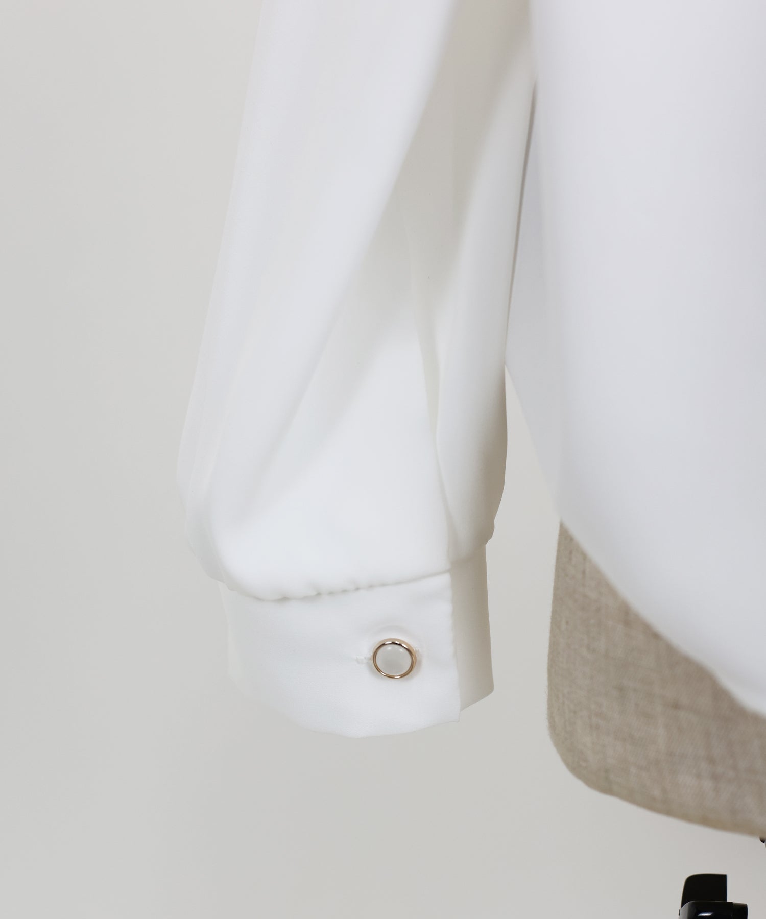 一枚でも、オフィスカジュアルにぴったりのジャケットインでも決まるキレイめブラウス。