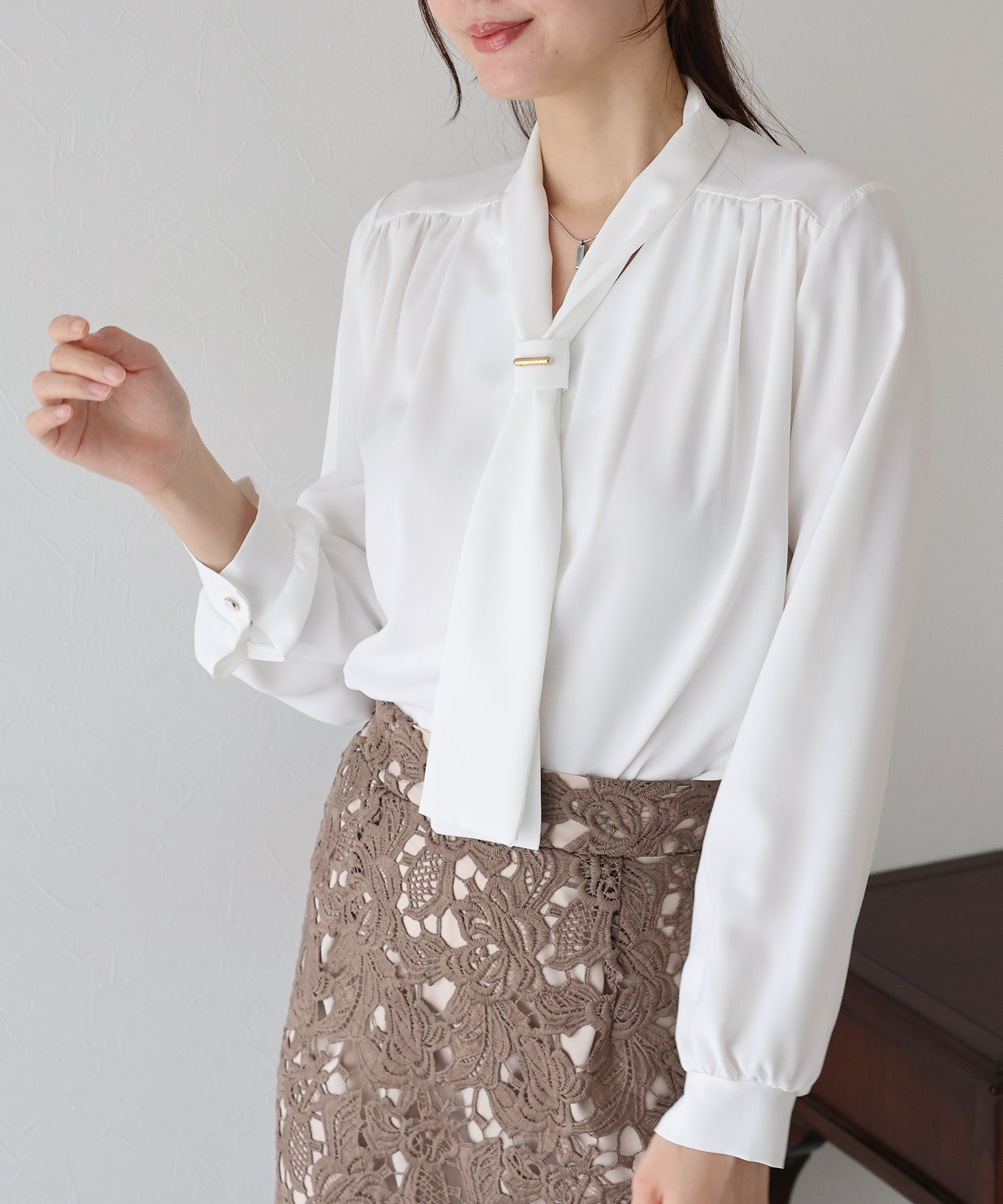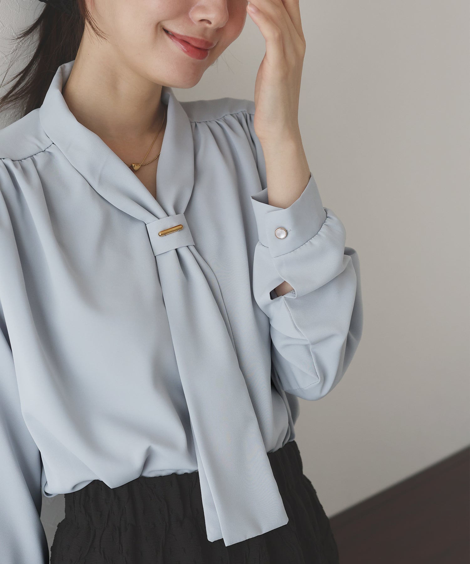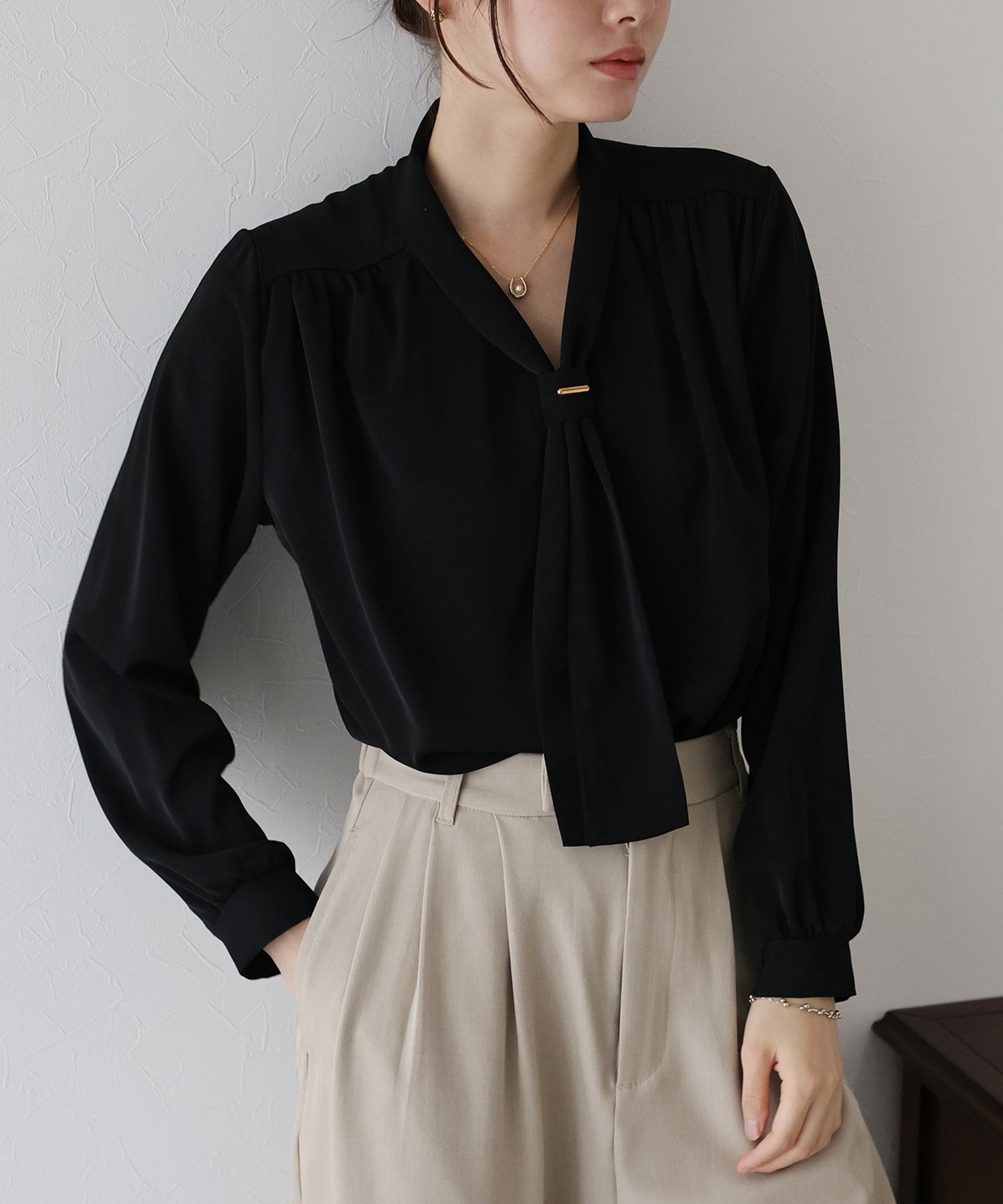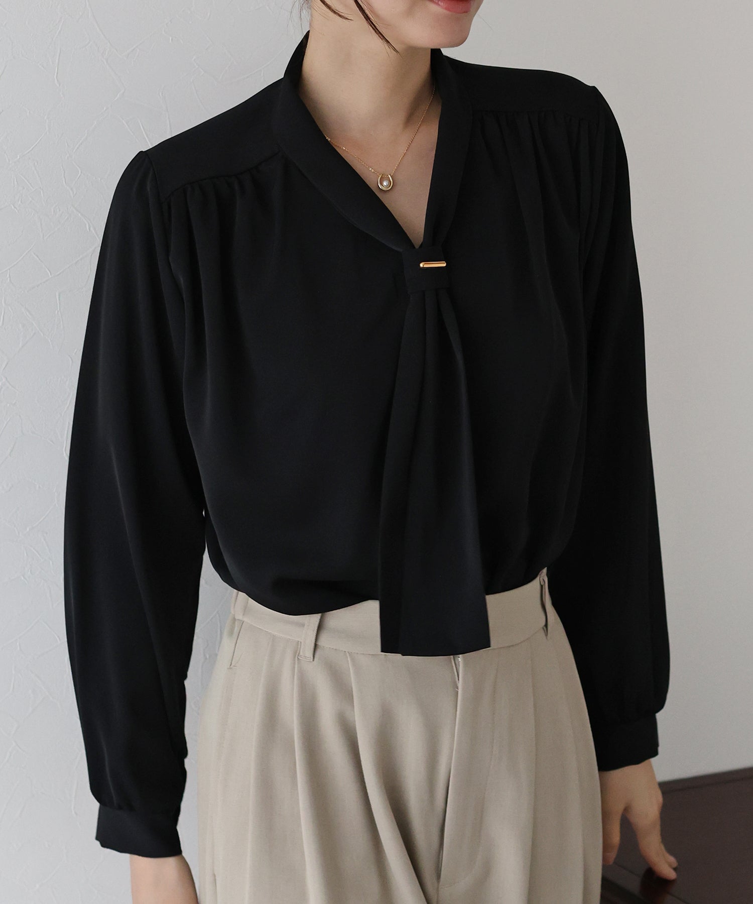 【早割5%OFF】メタルバー付きボウタイブラウス【ネコポス】