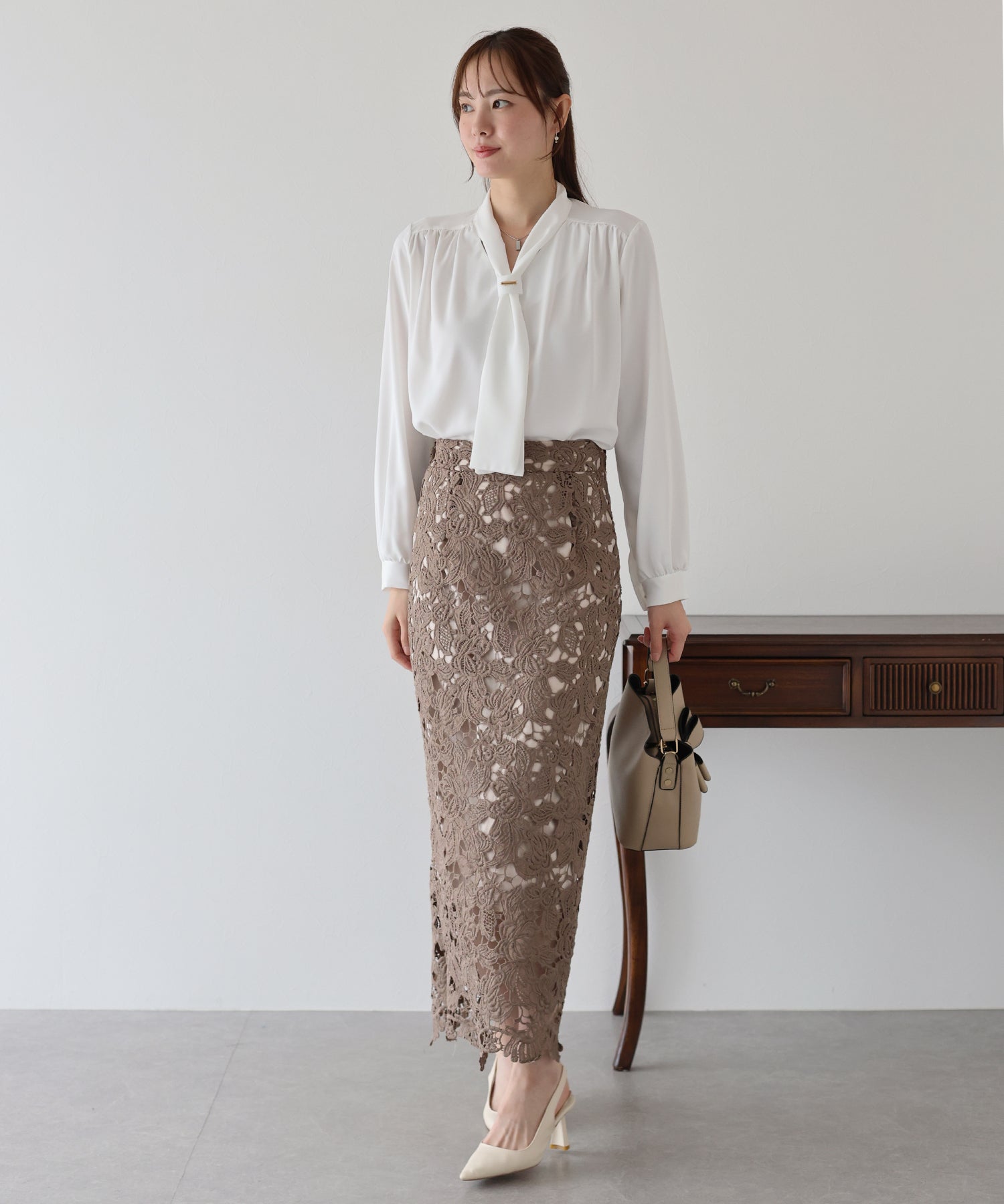 大人フェミニンできちんと感のあるなディテールが魅力のブラウス。