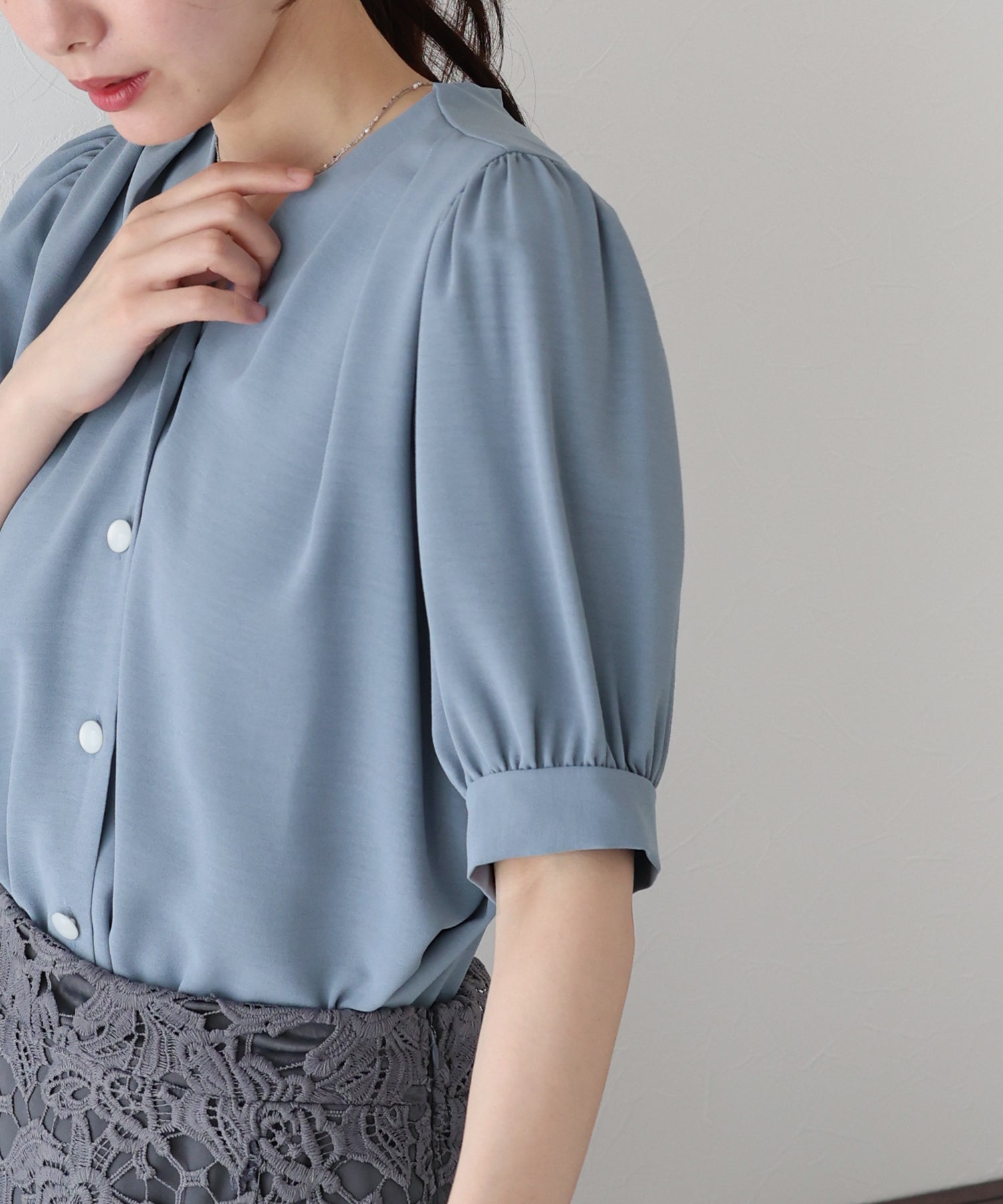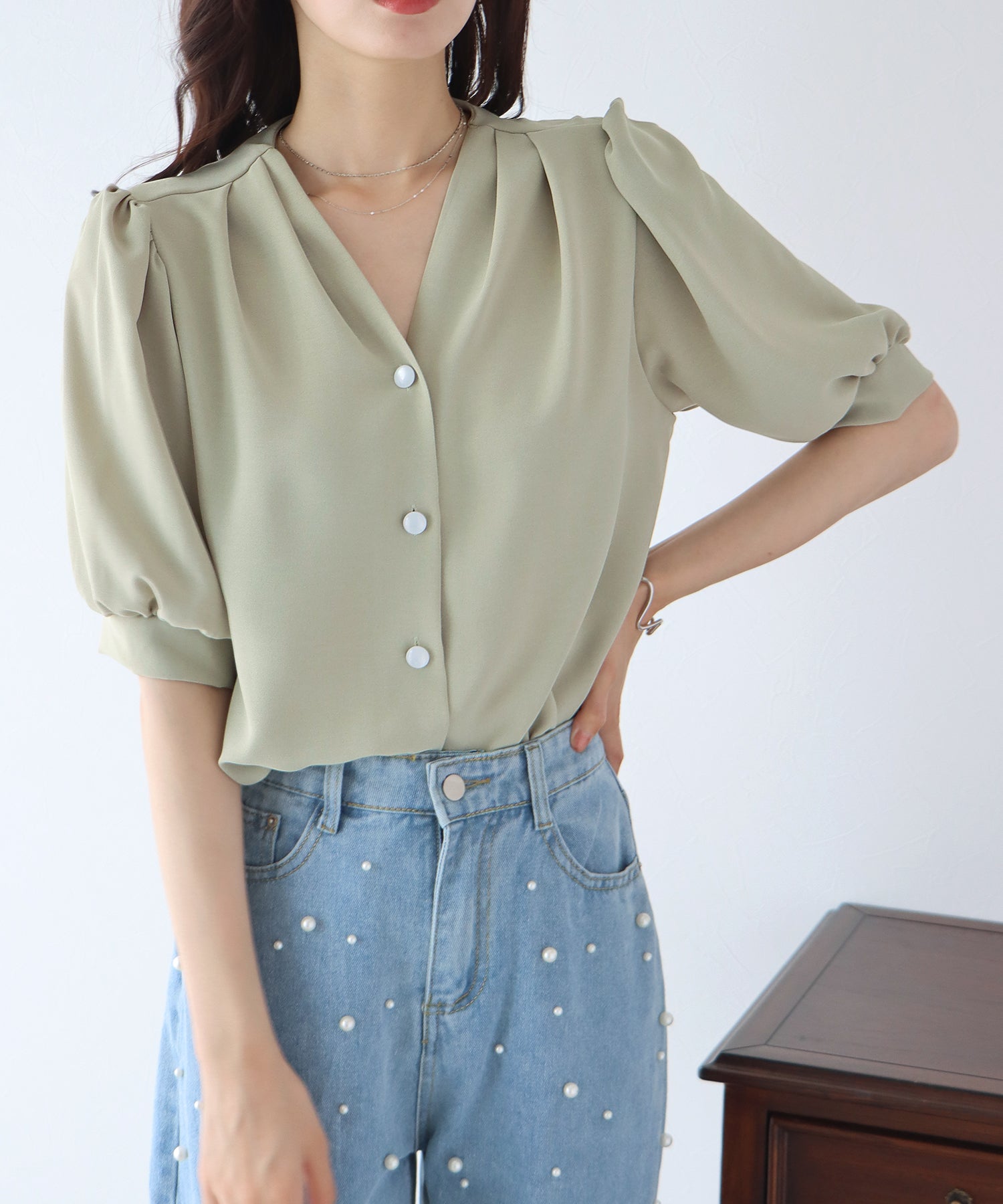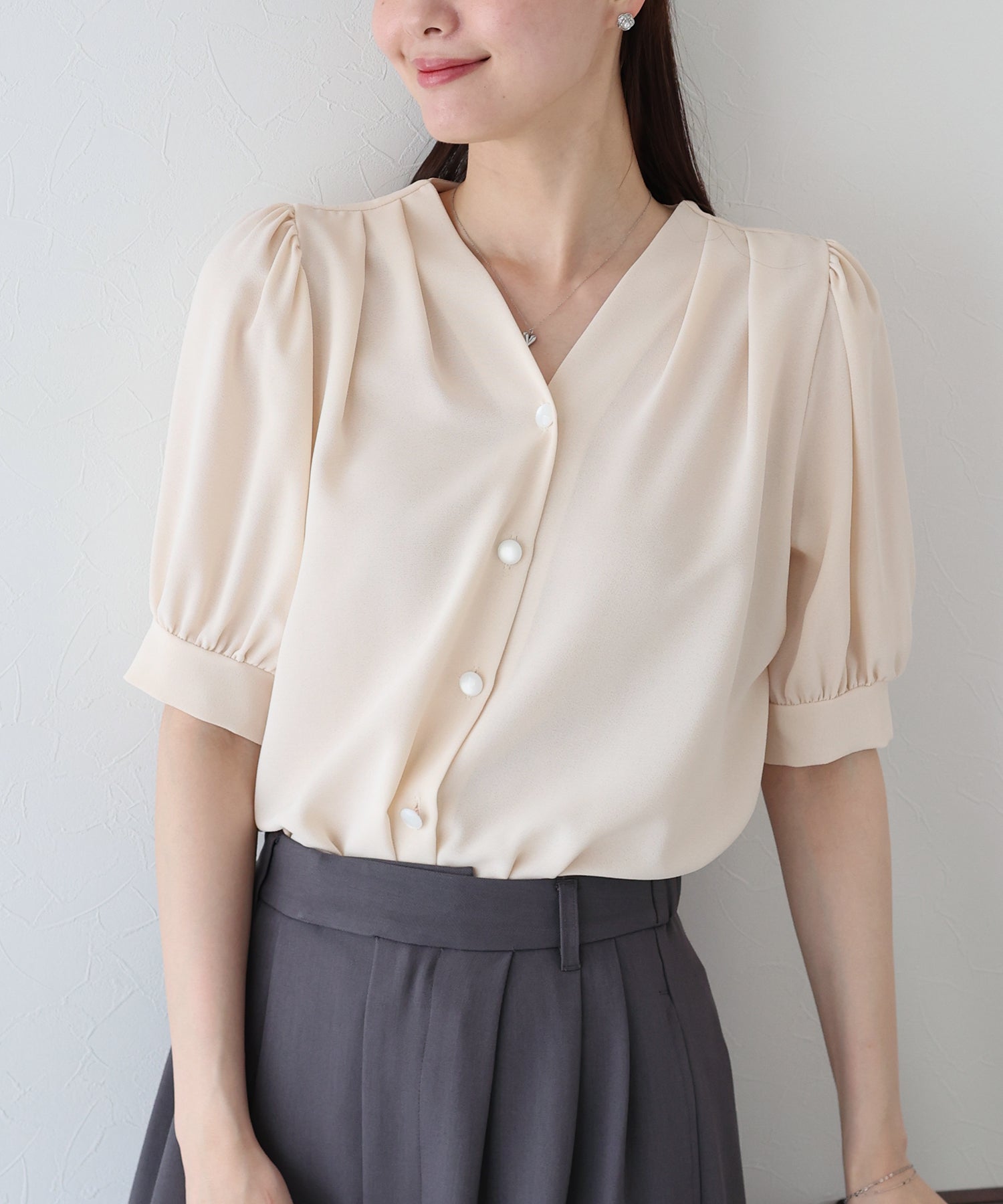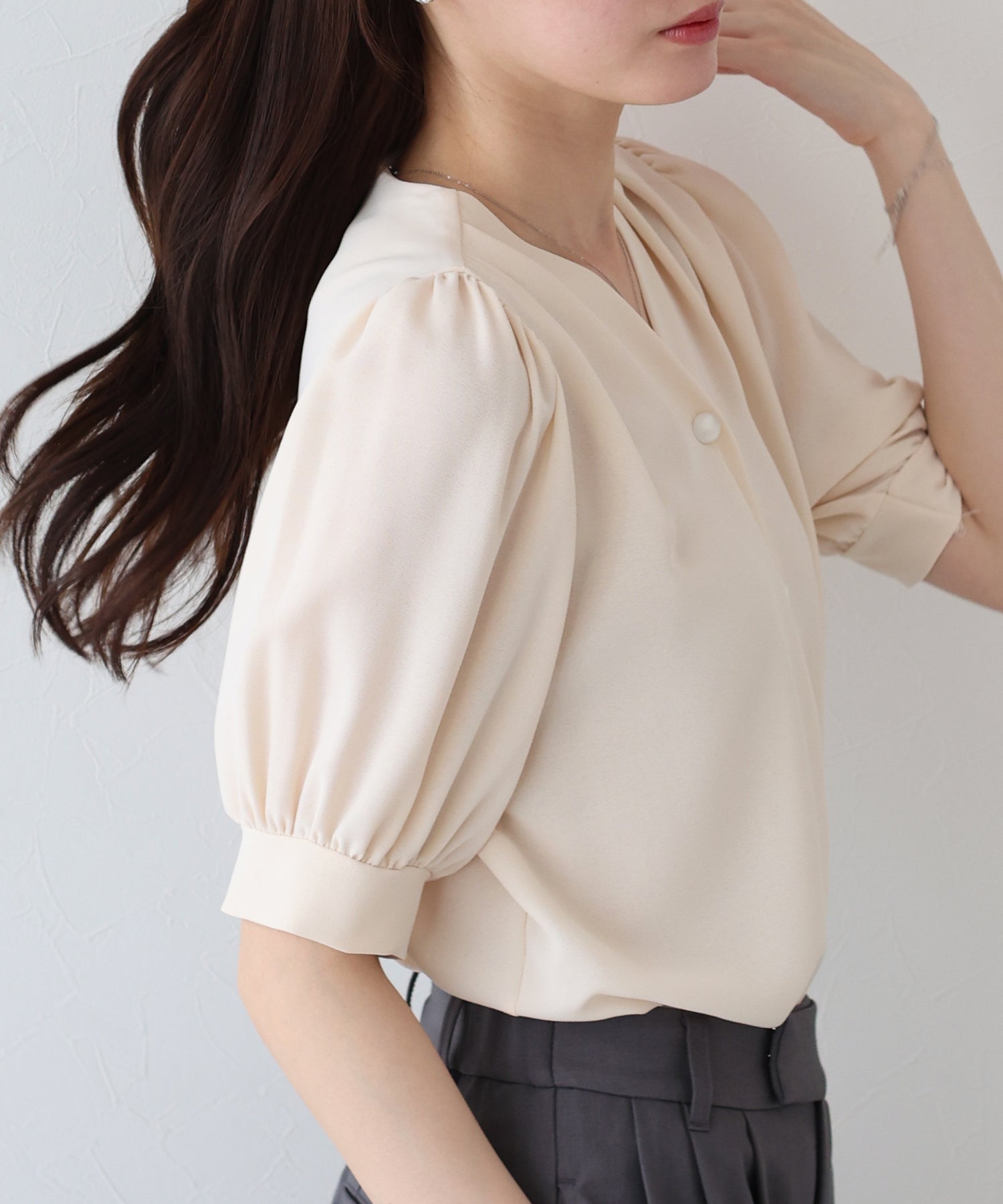 살짝 빛나는 진주 버튼이 포인트의 블라우스
