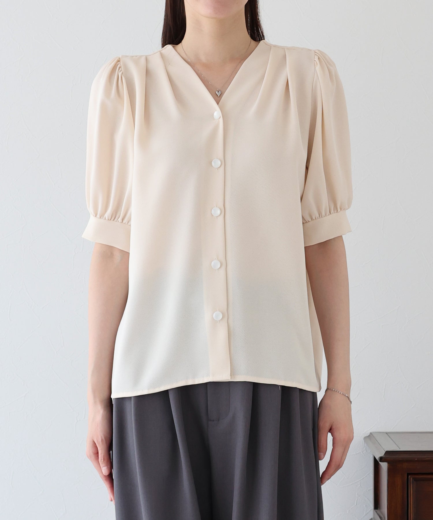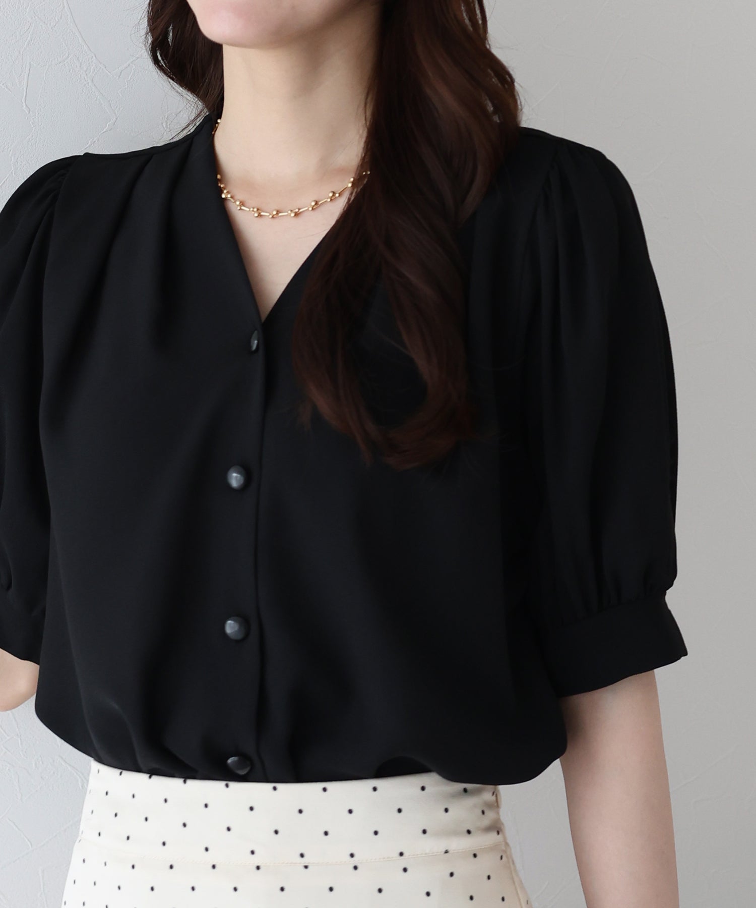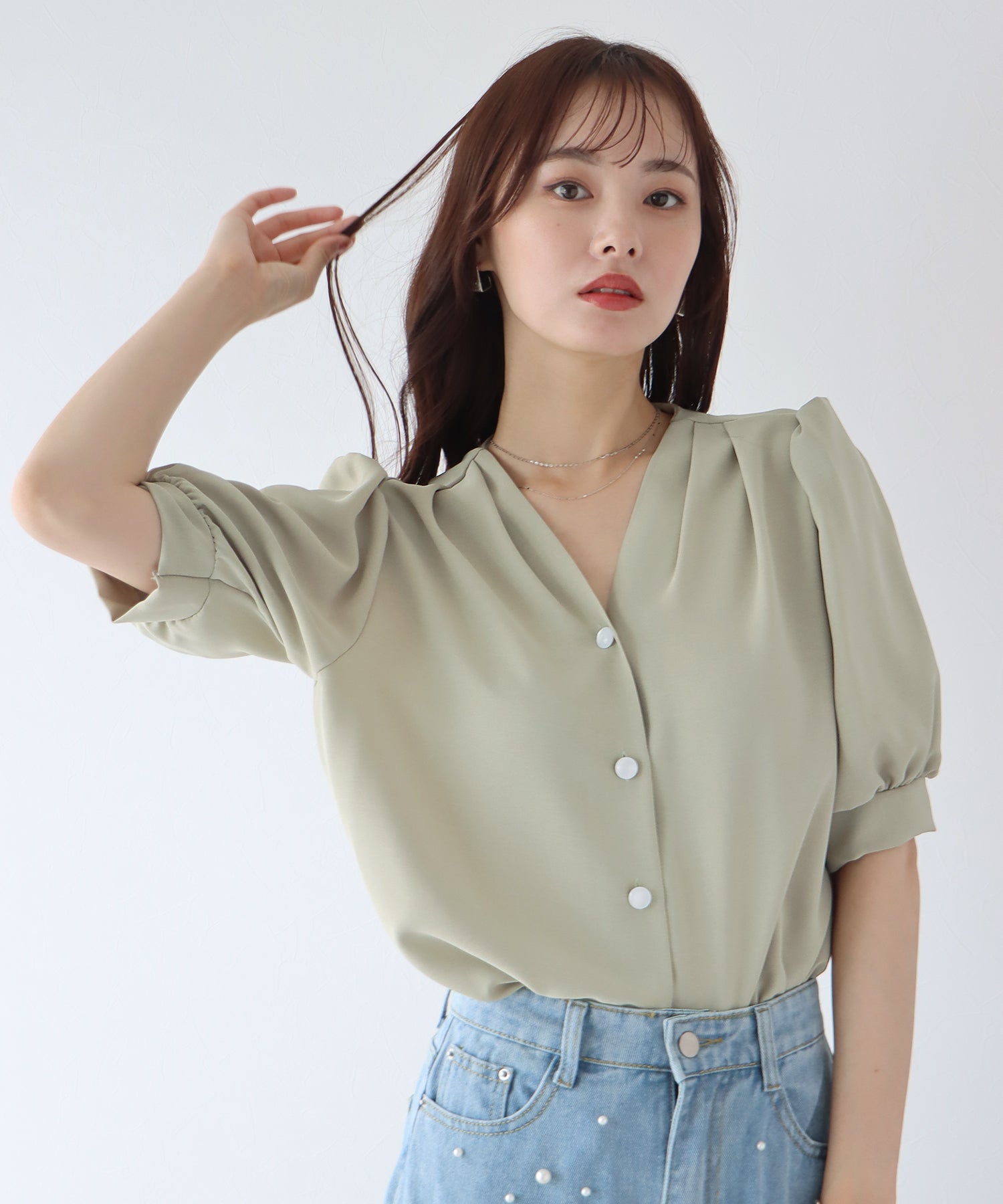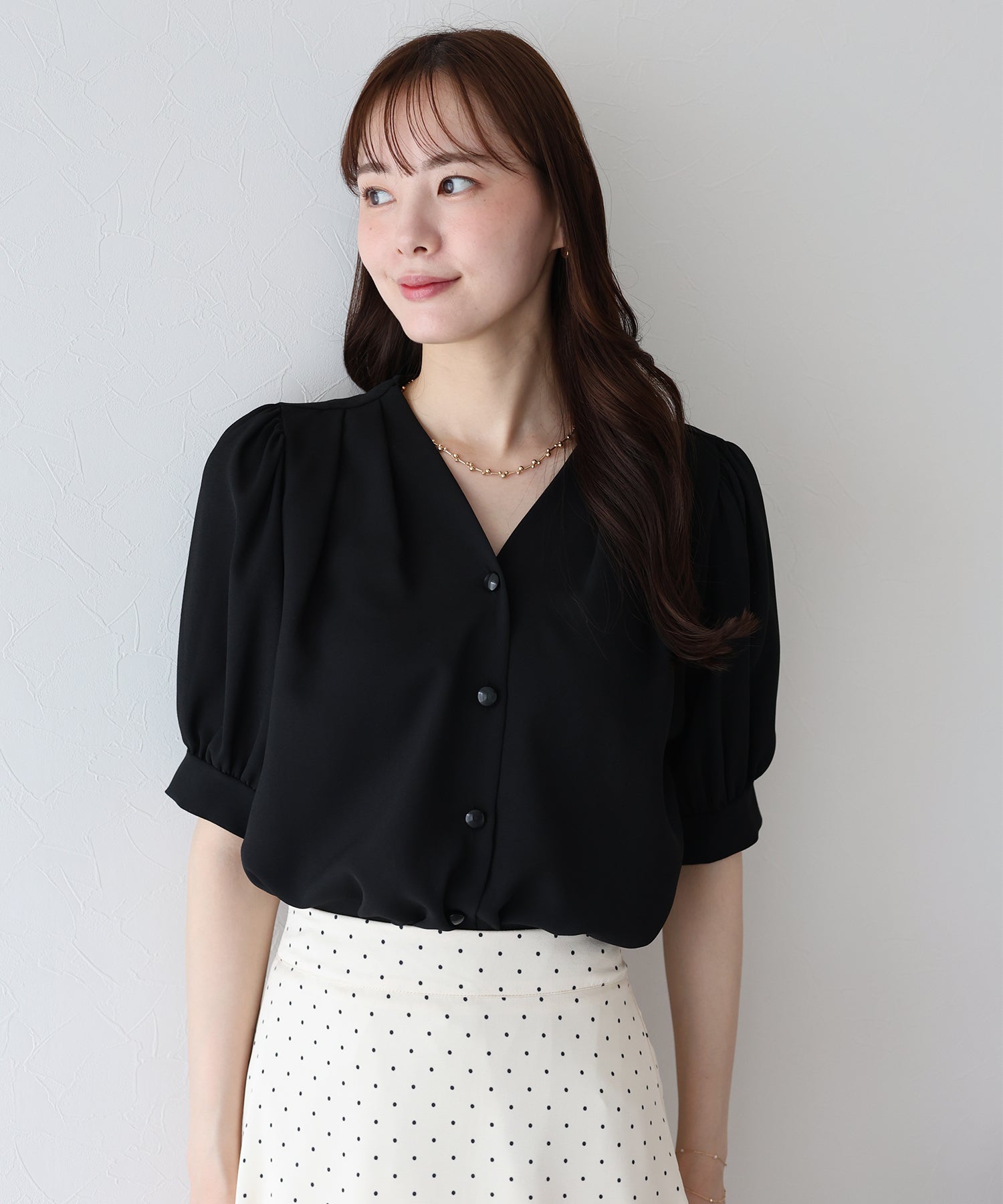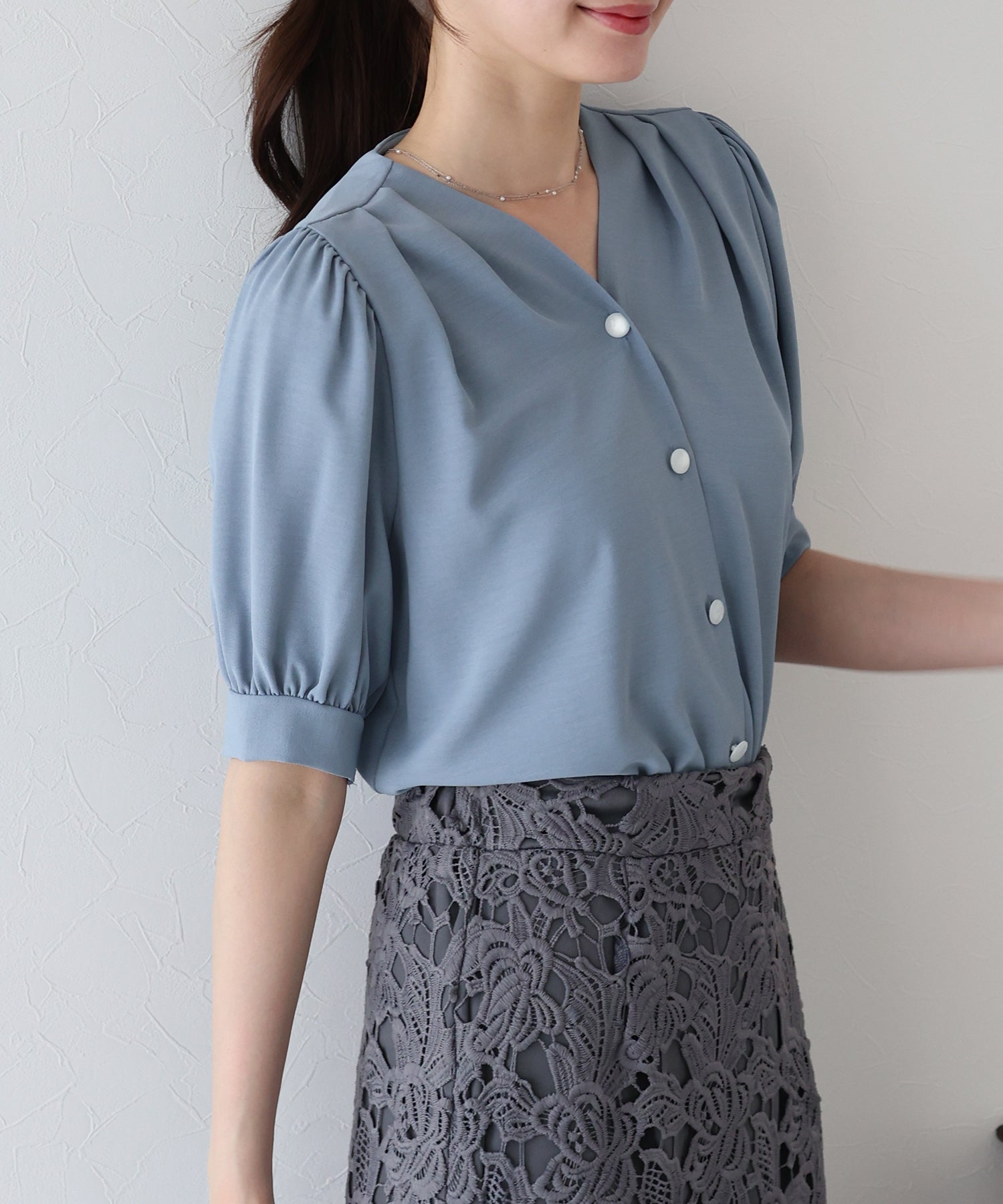 살짝 빛나는 진주 버튼이 포인트의 블라우스