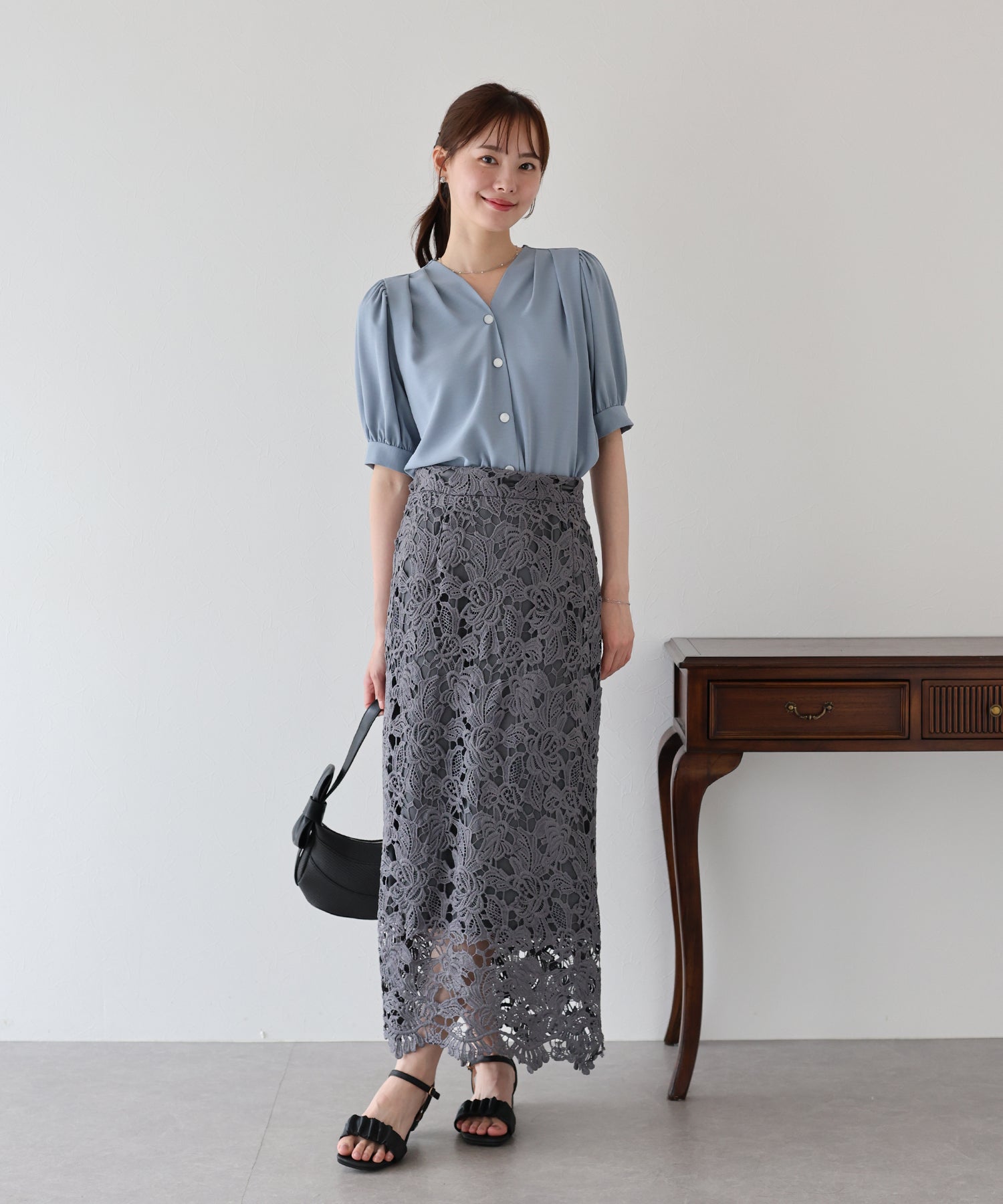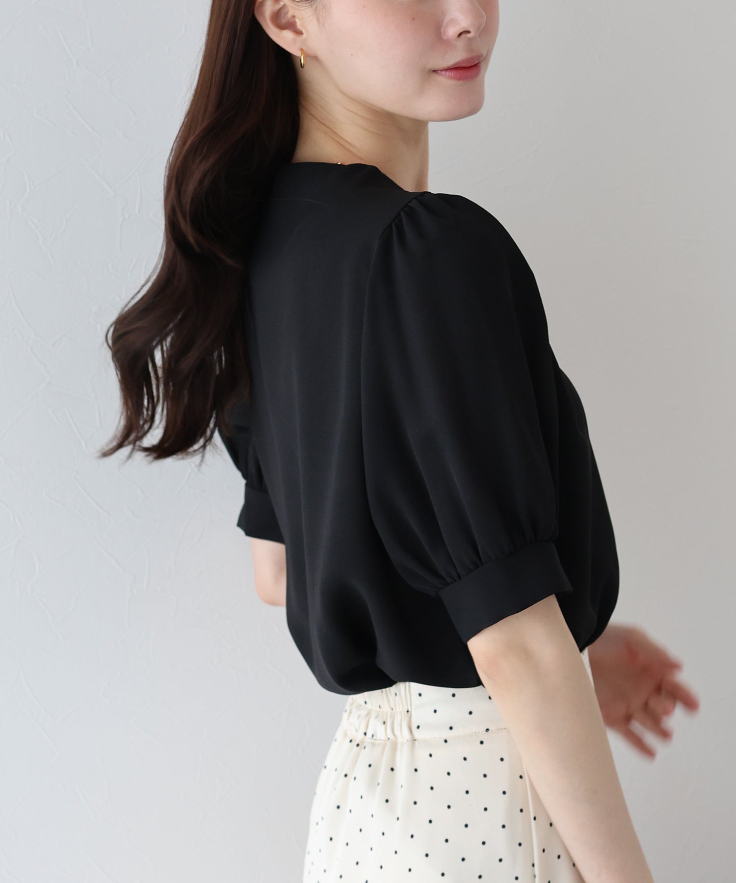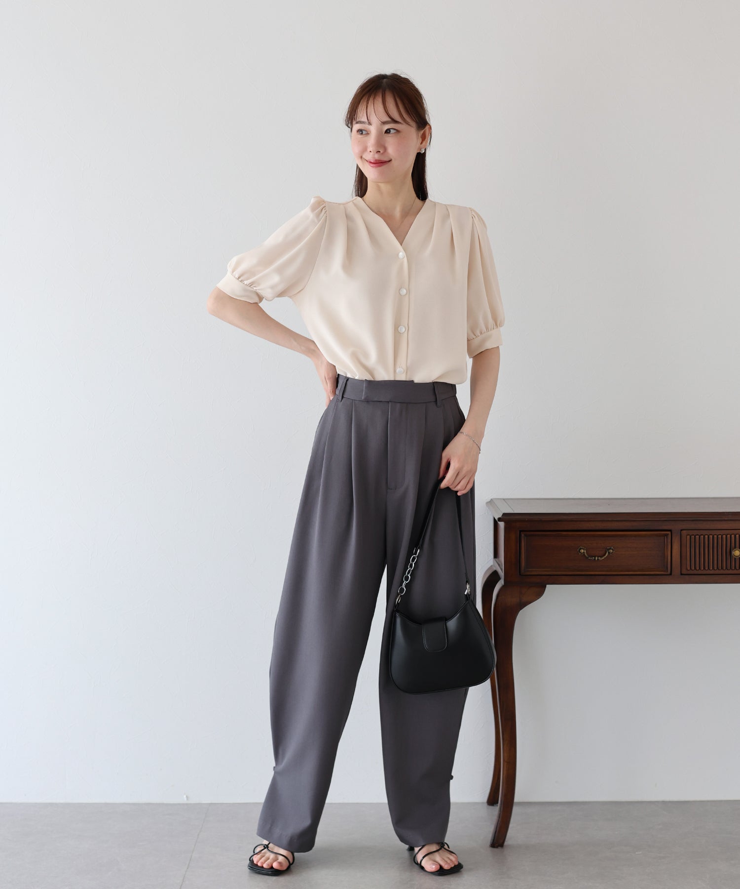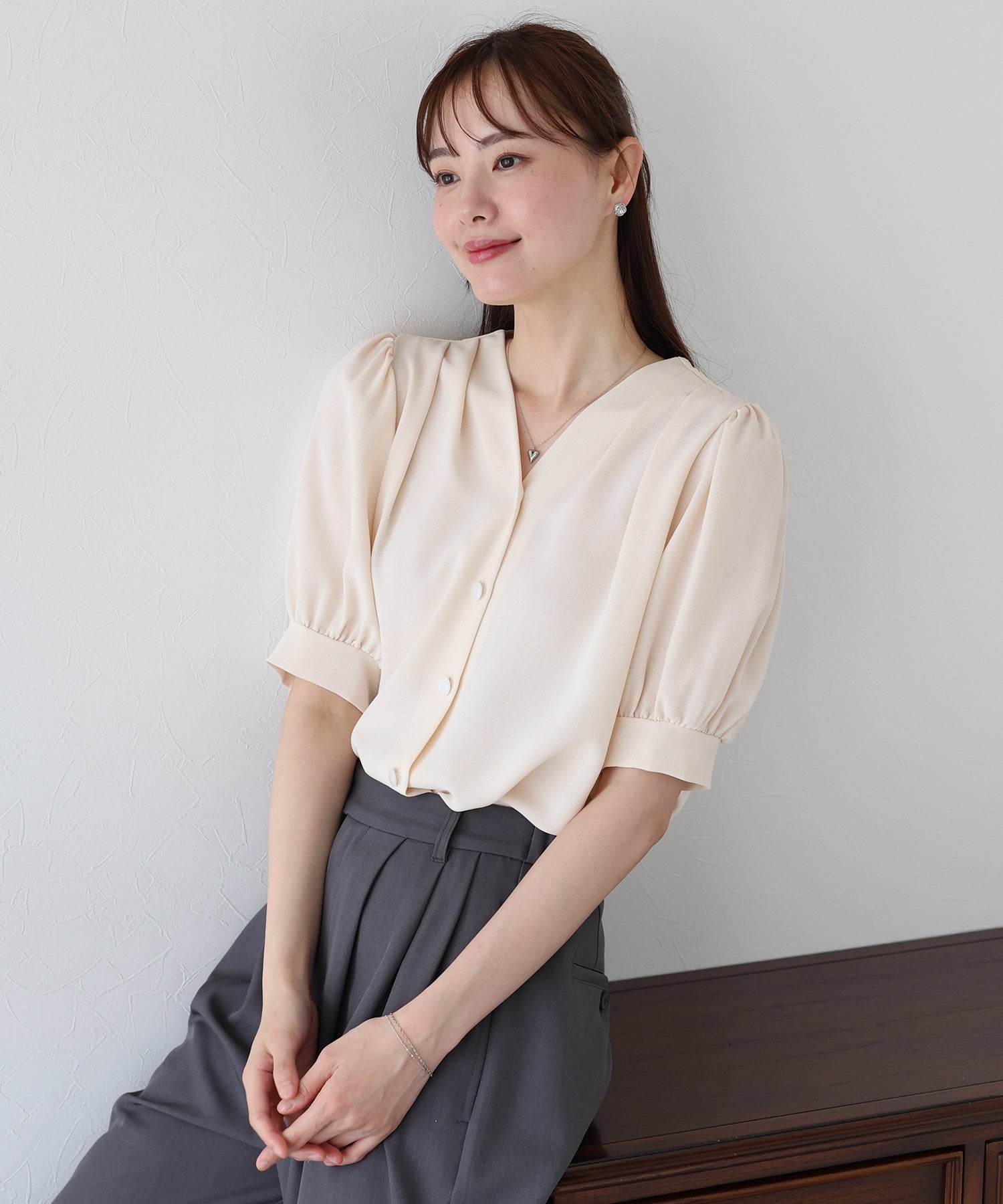 살짝 빛나는 진주 버튼이 포인트의 블라우스