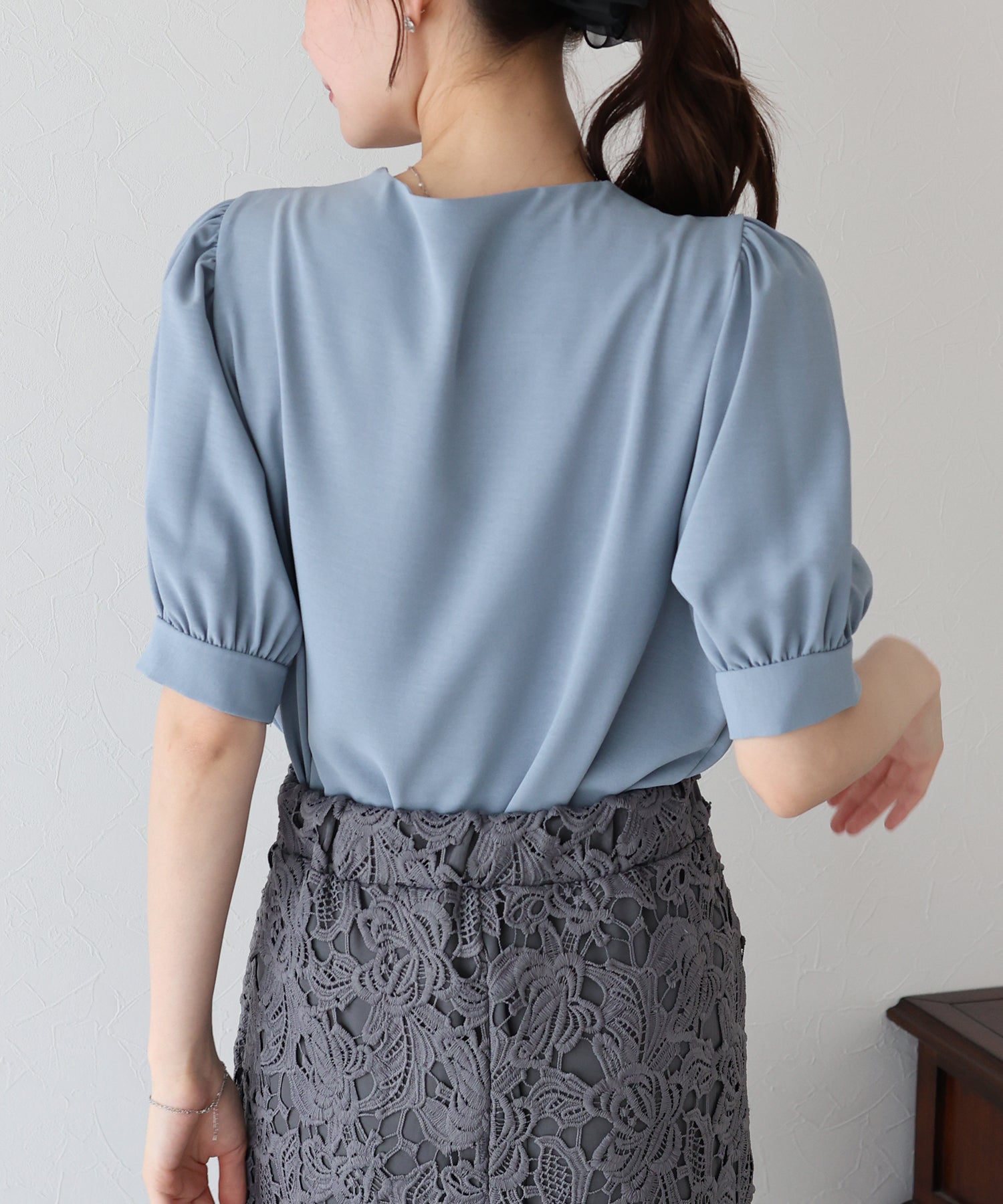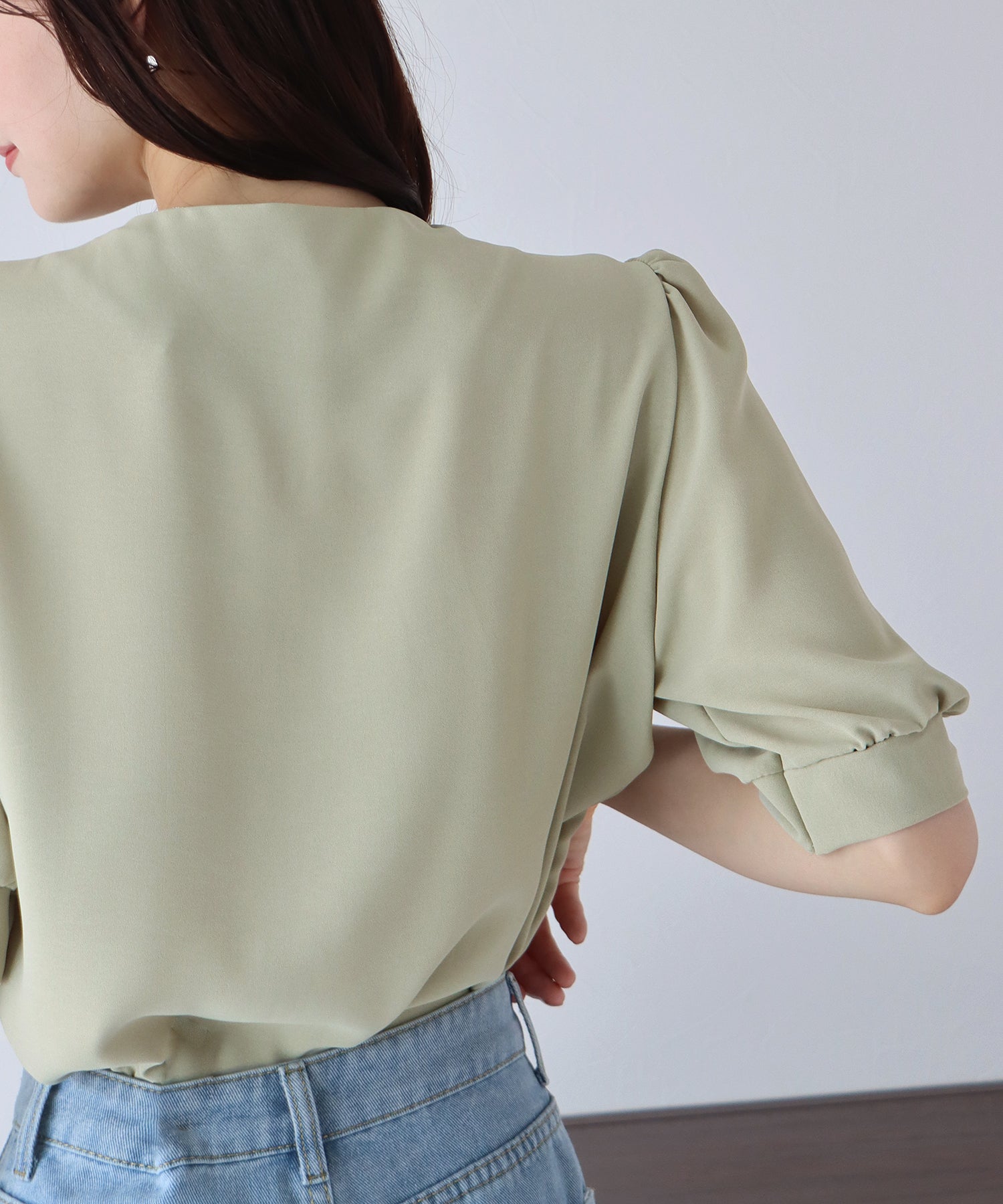 데콜테가 깔끔하게 열린 디자인 블라우스.