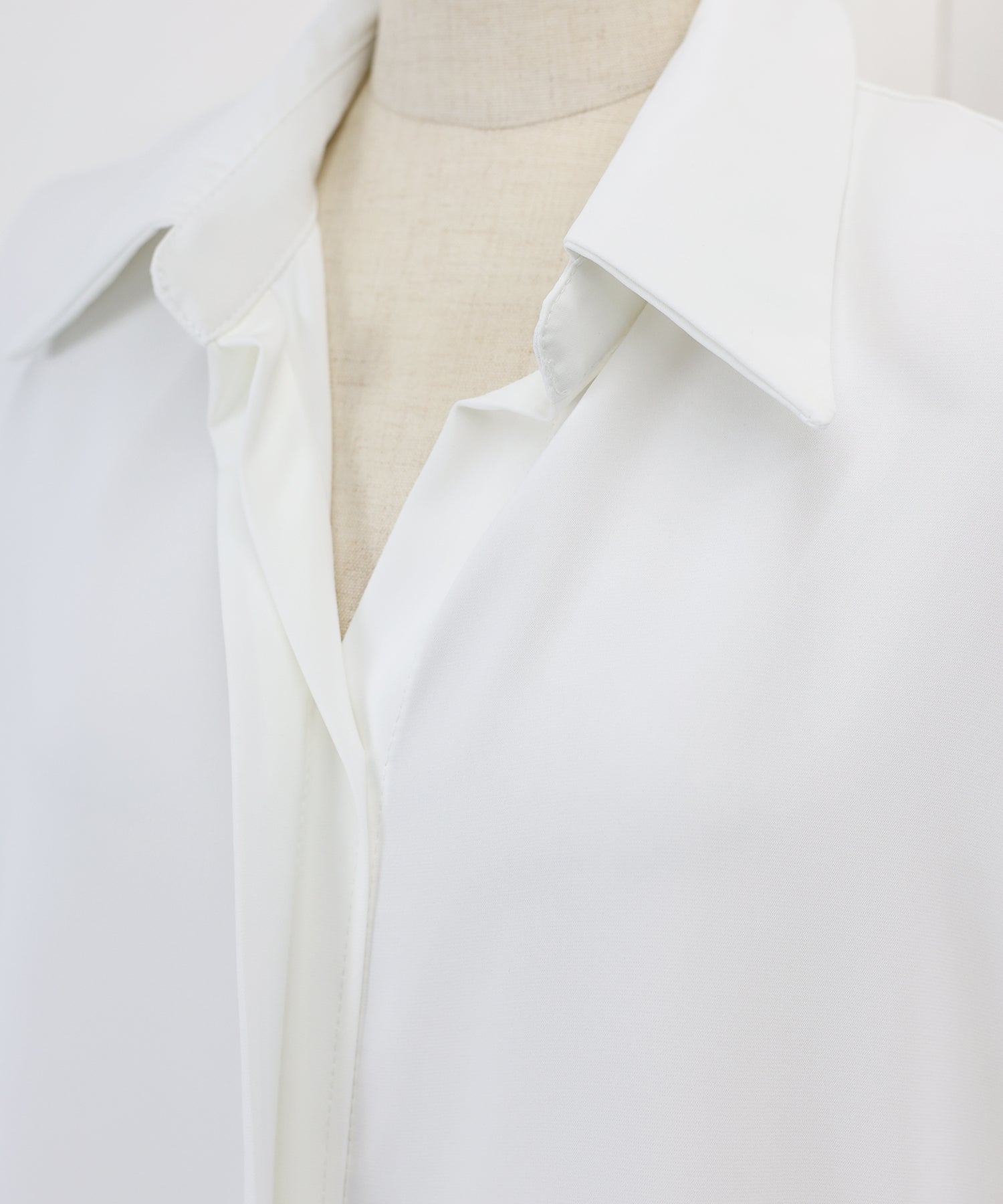 一枚でも、オフィスカジュアルにぴったりのジャケットインでも決まるキレイめブラウス。