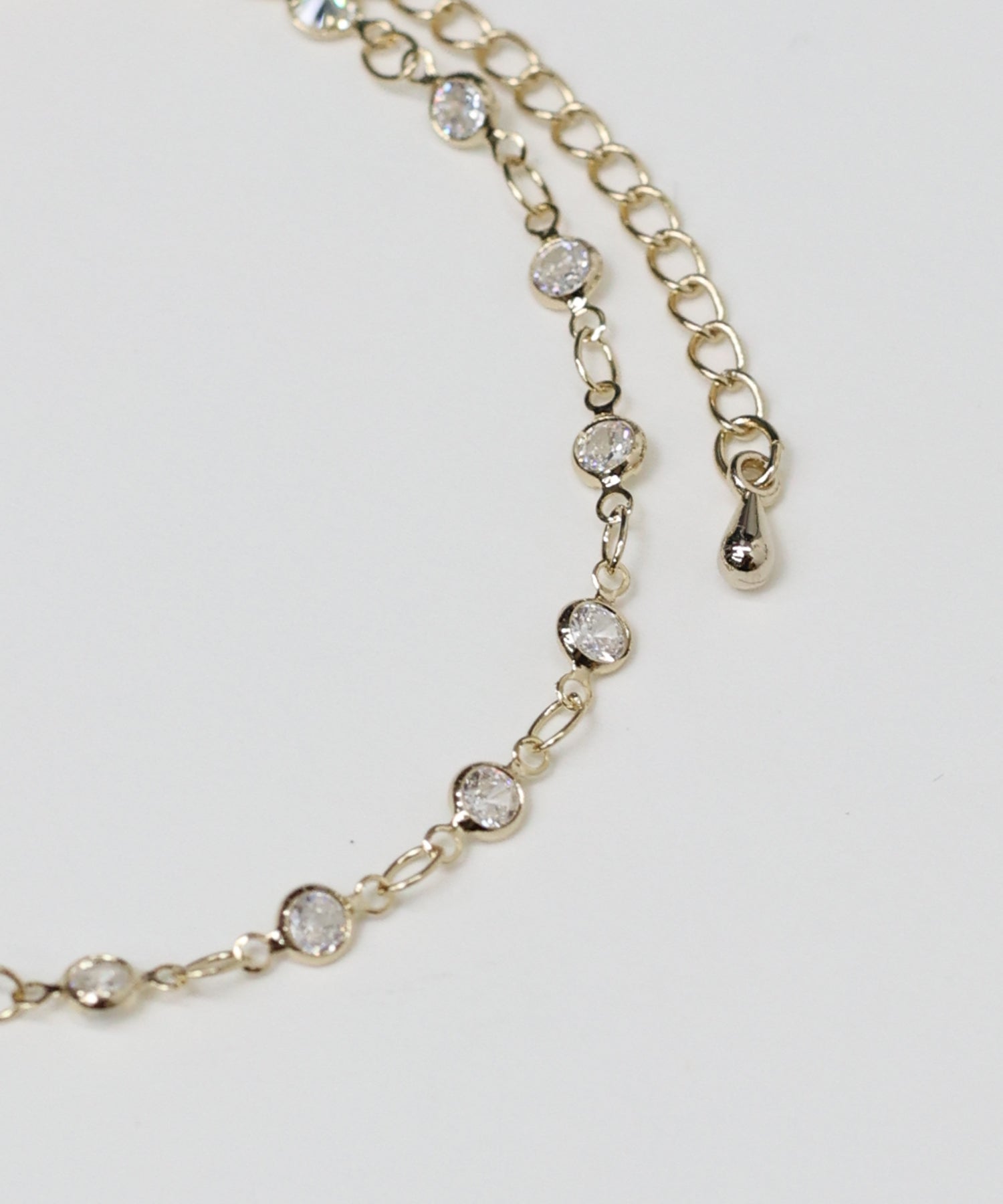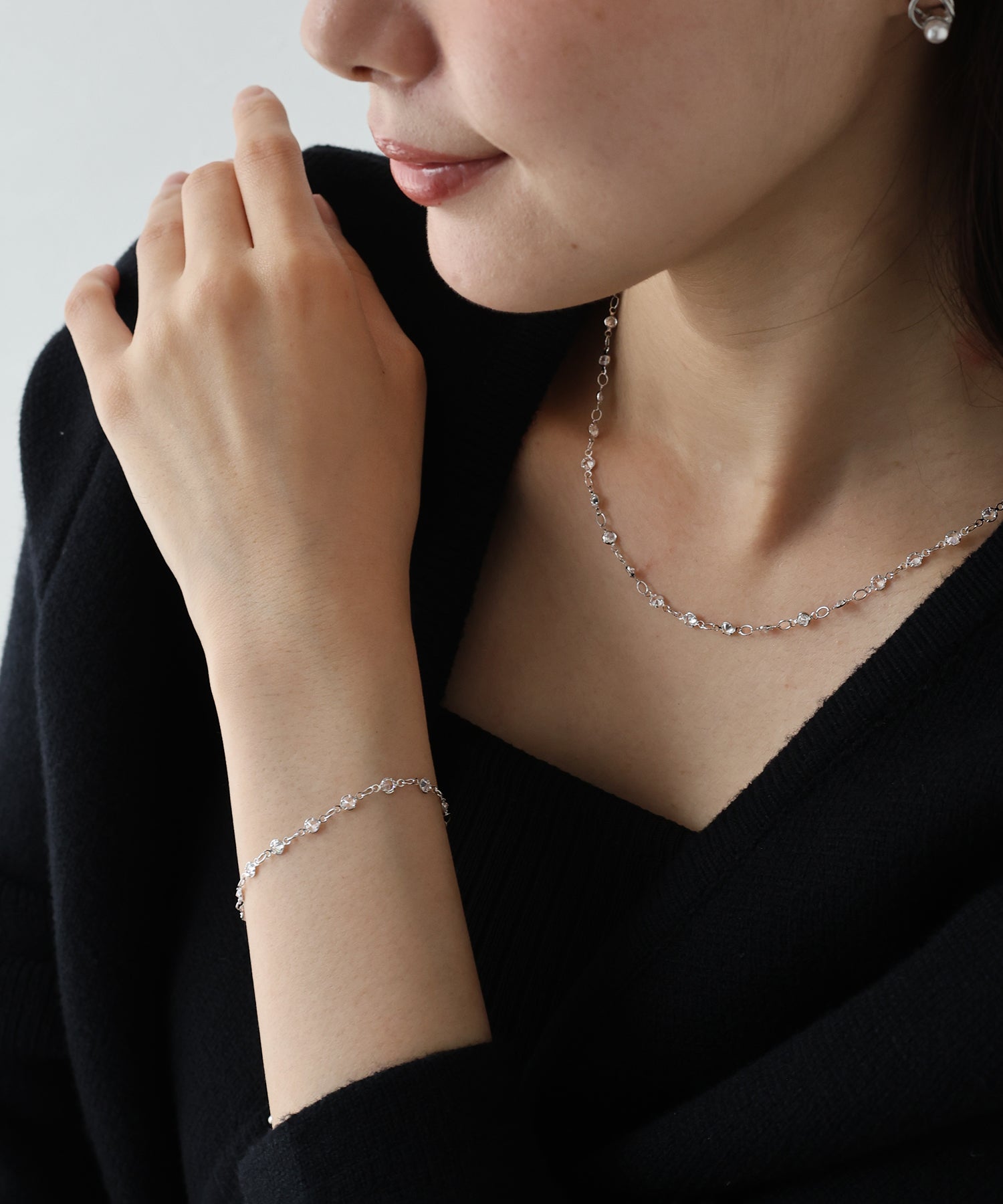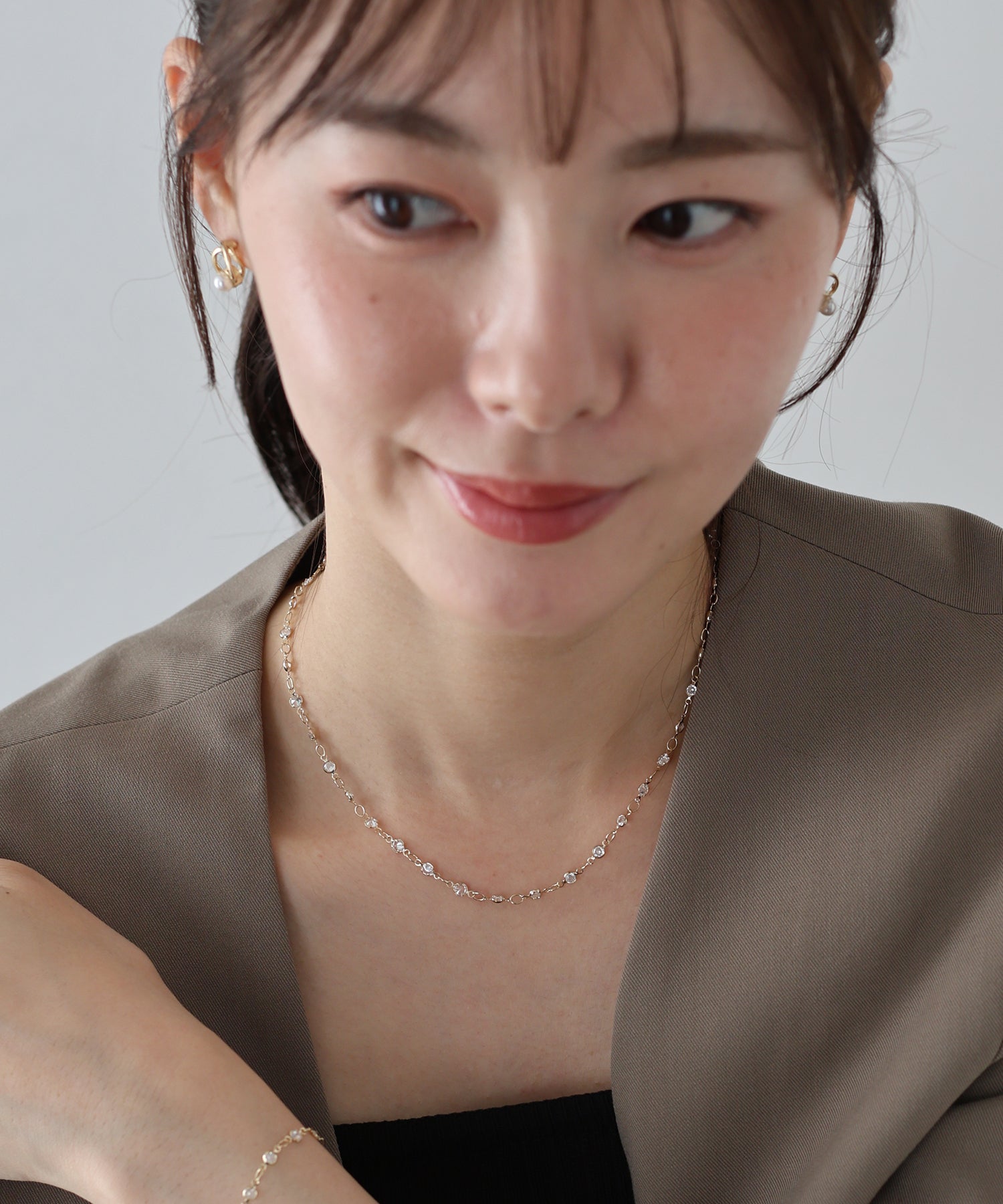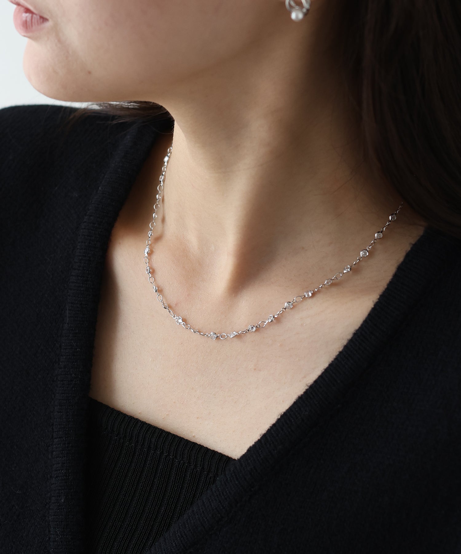 小ぶりなキュービックジルコニアが連なったチェーンネックレス。