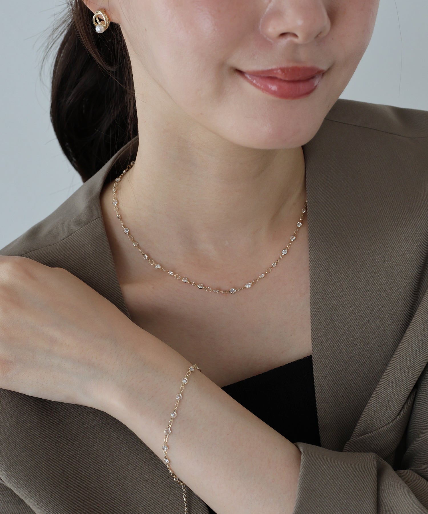チェーンに等間隔に連なったビジューが肌になじみ、首元を綺麗に見せてくれます。