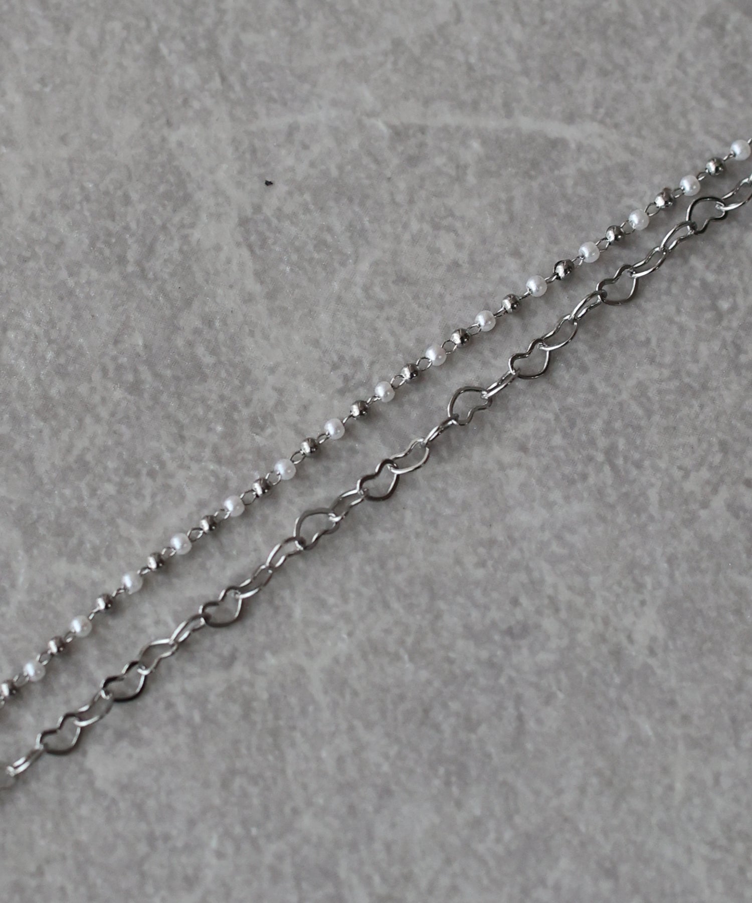 さりげなく可愛らしい魅力のハートチェーンと、小さめパールをあしらった2種類のチェーンが