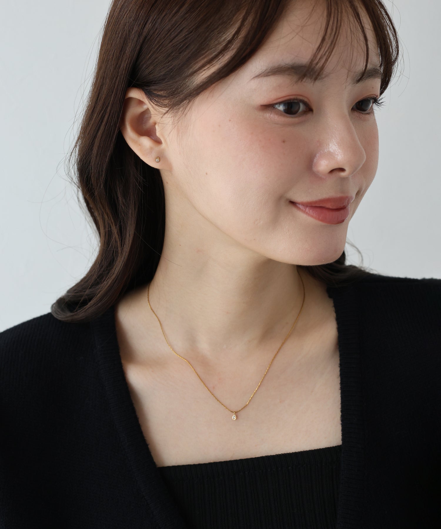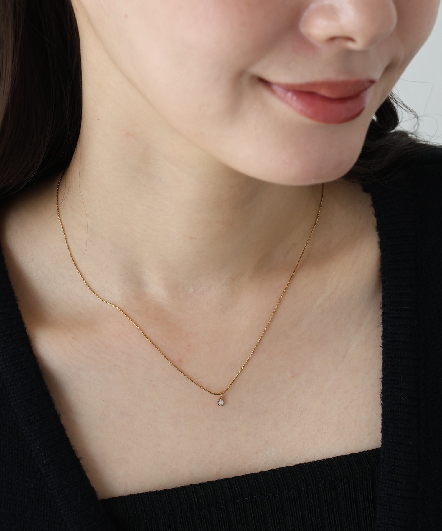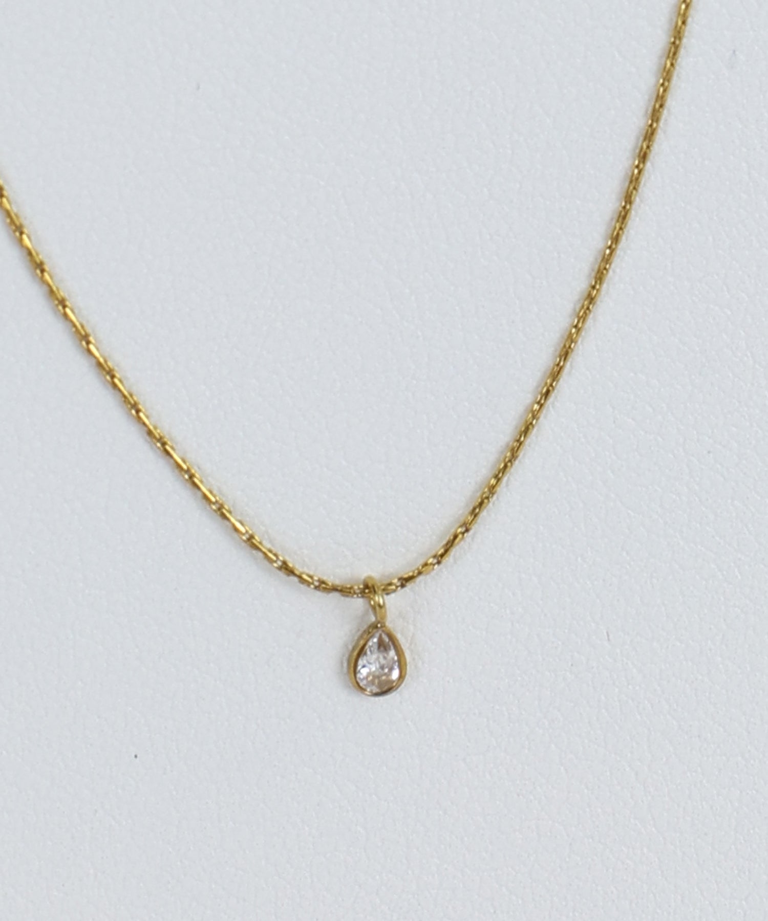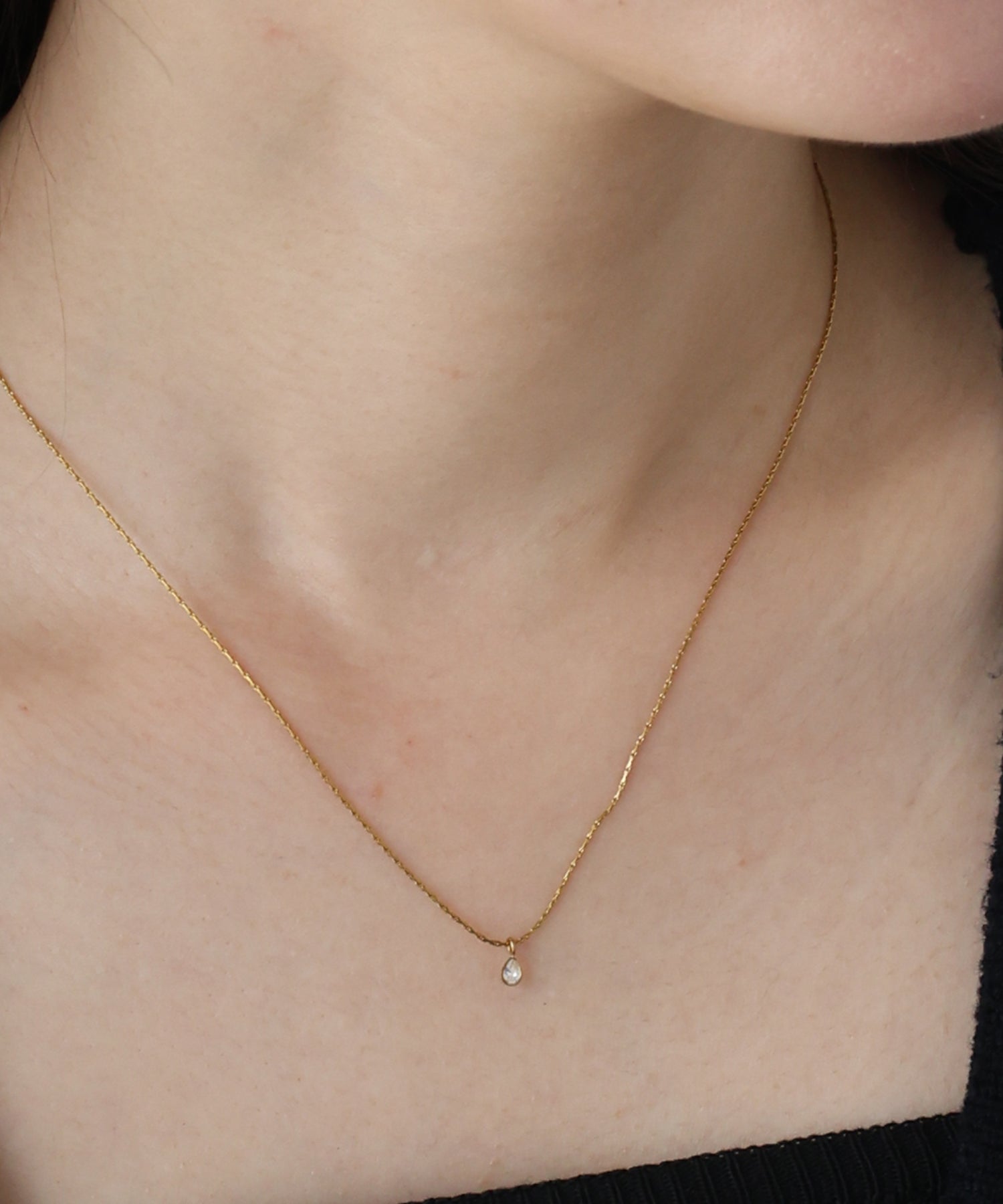 小ぶりなしずく型ビジューが首元に可憐な印象を与えるネックレス