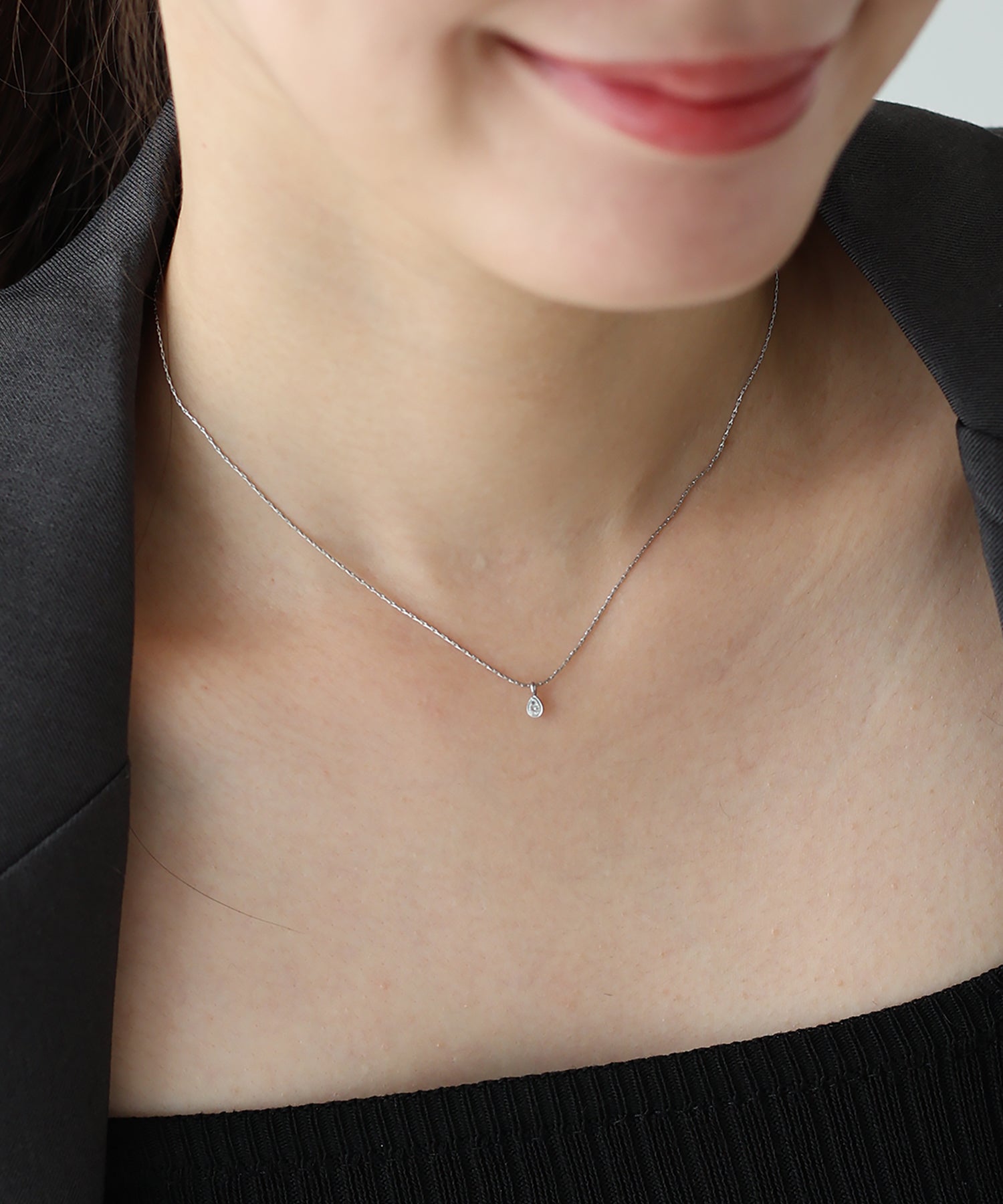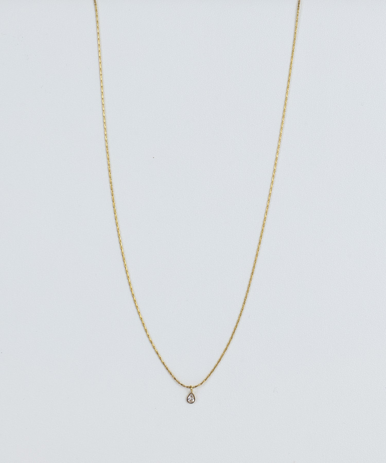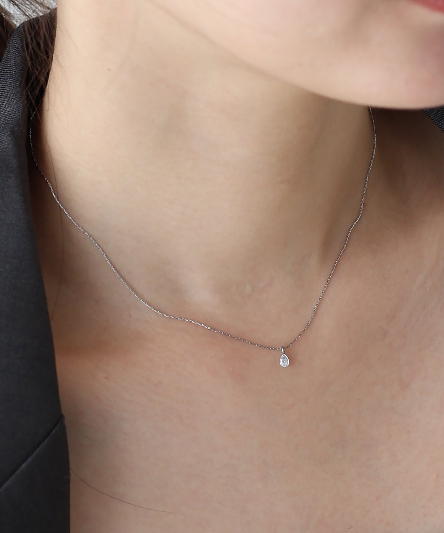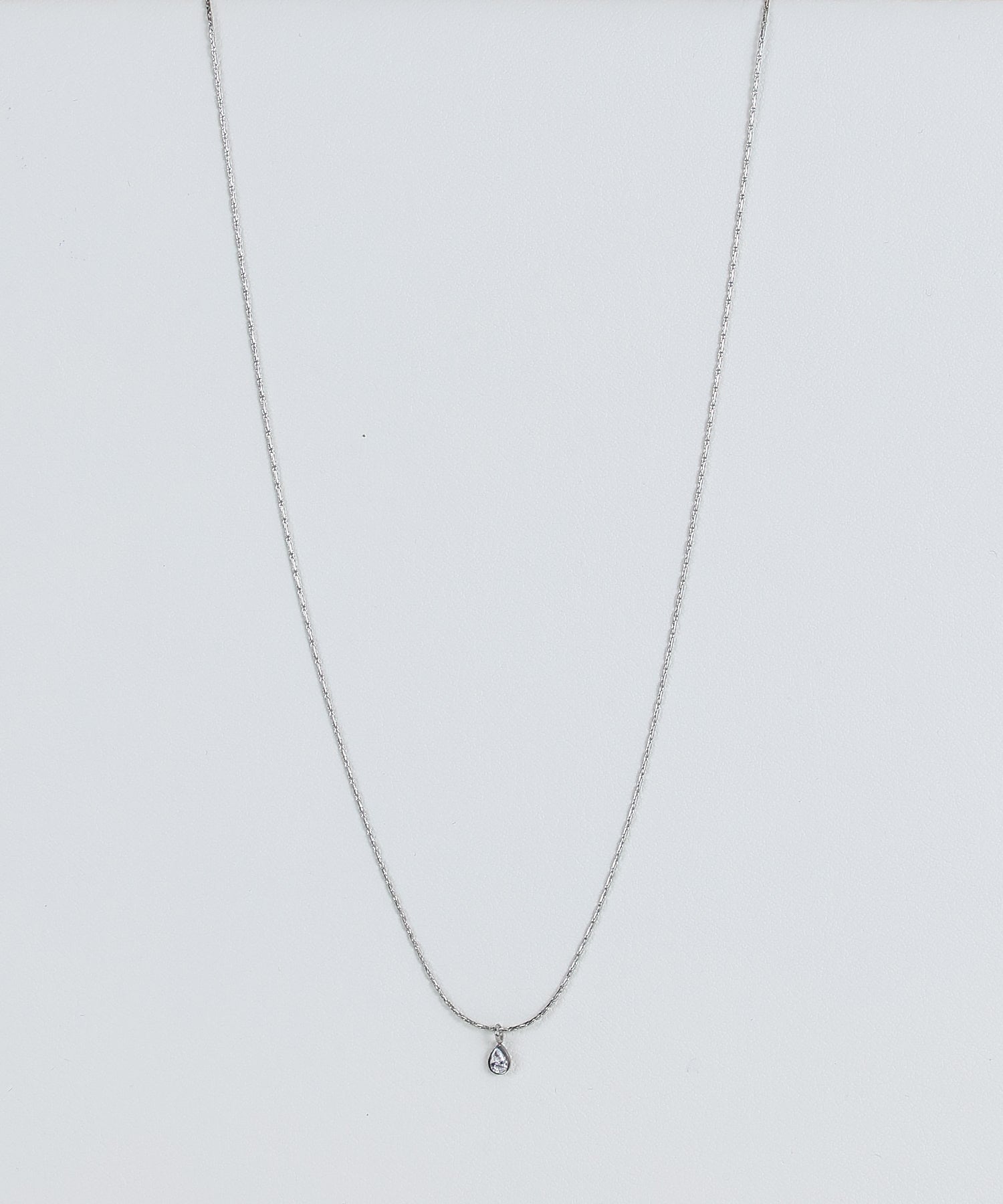 小ぶりなしずく型ビジューが首元に可憐な印象を与えるネックレス