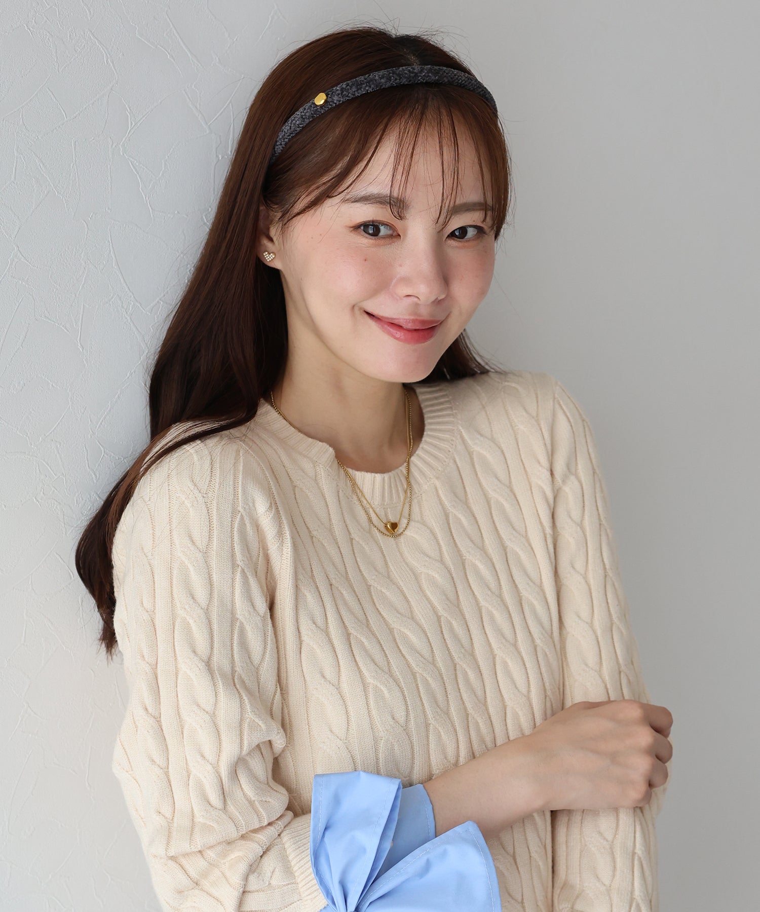 ニット×ニュアンスメタルモチーフがおしゃれなカチューシャ