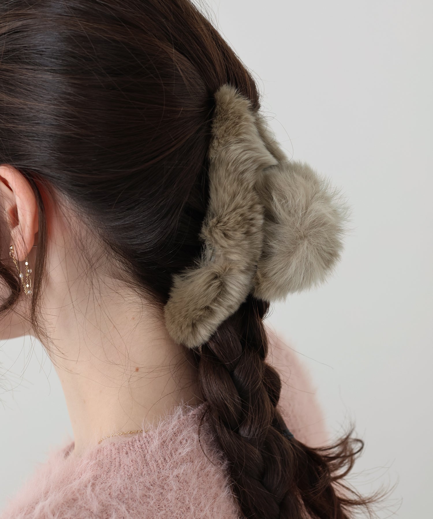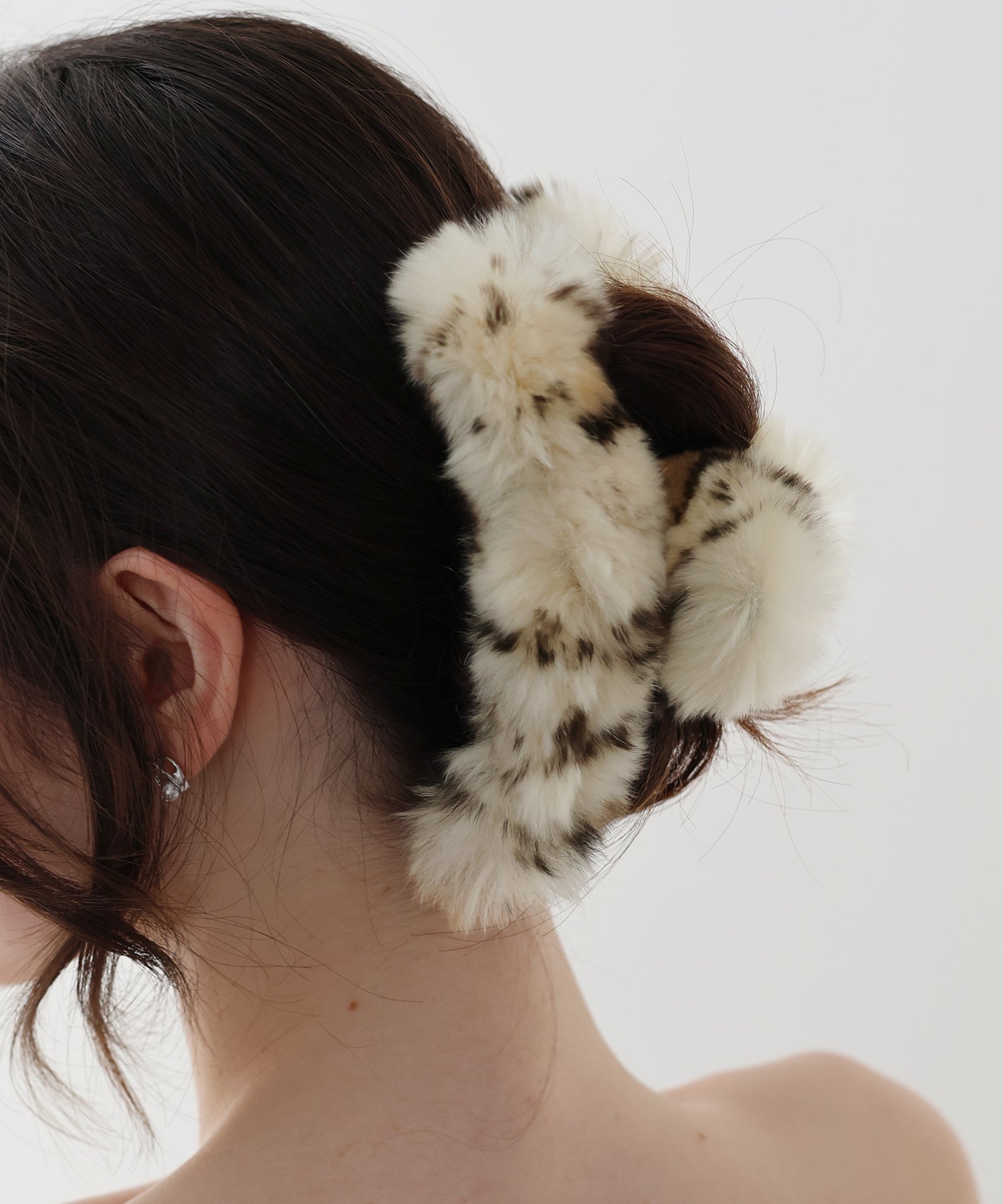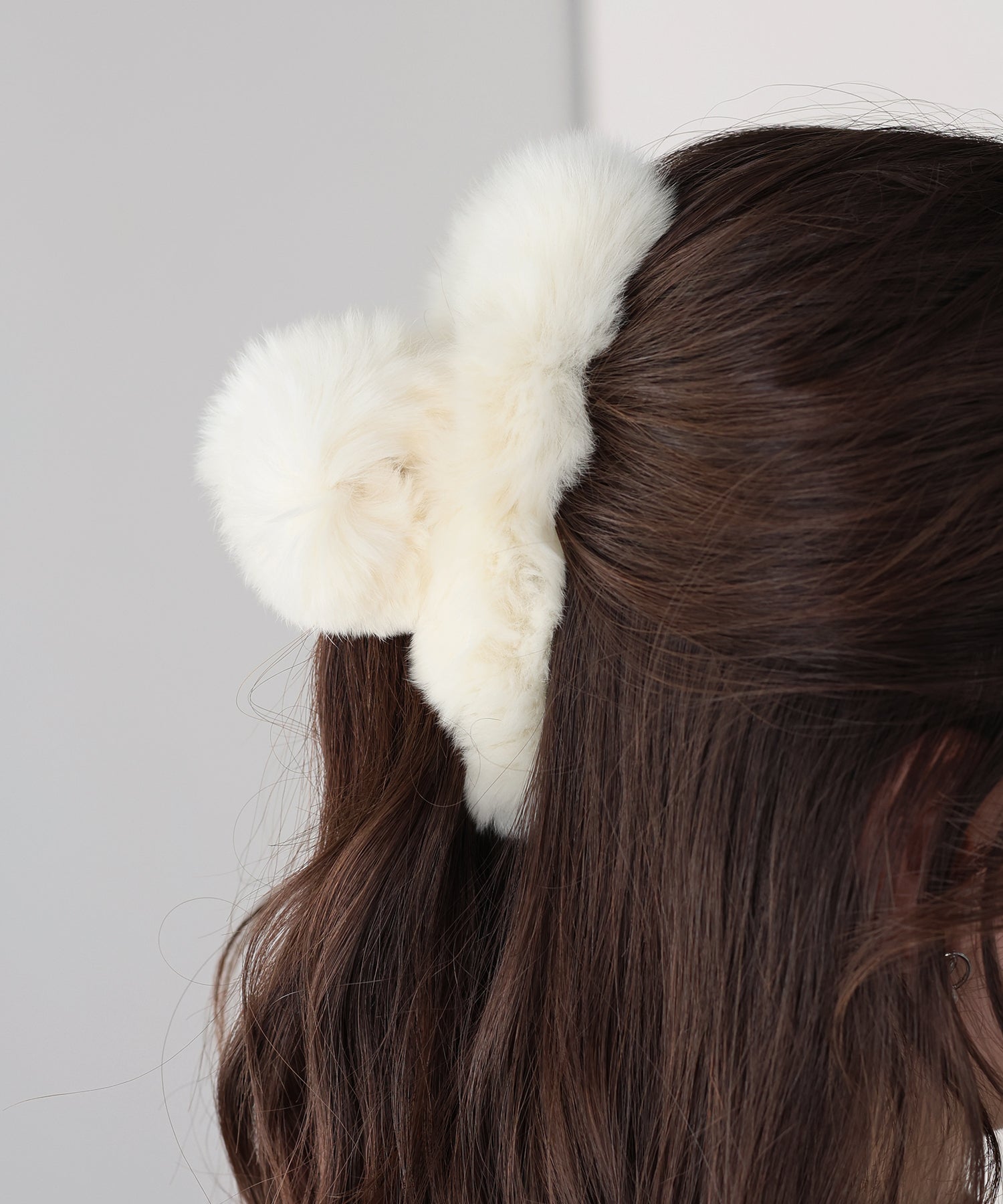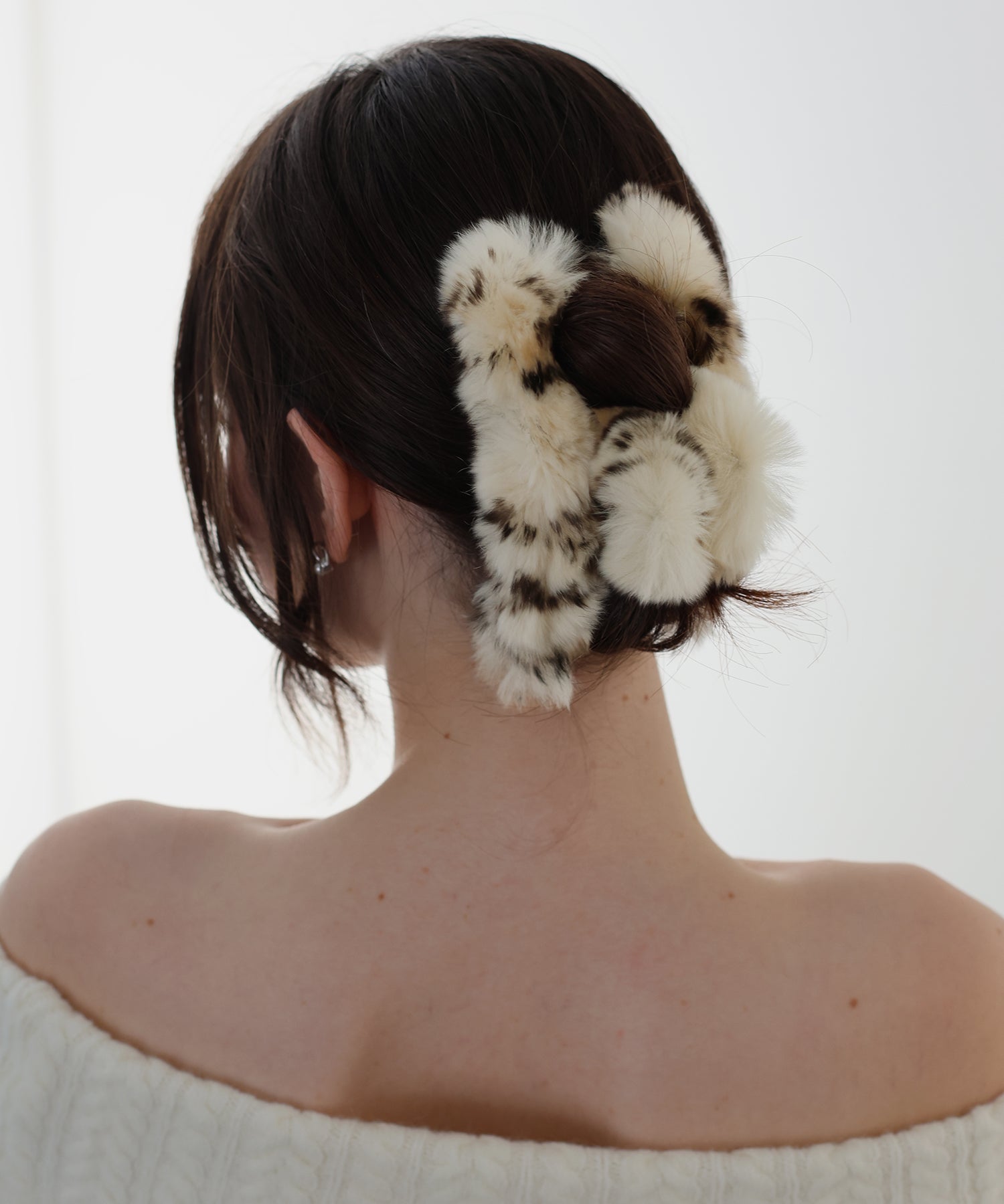 ふわふわのファーをあしらいコーデに秋冬のムードをプラスするヘアクリップ。