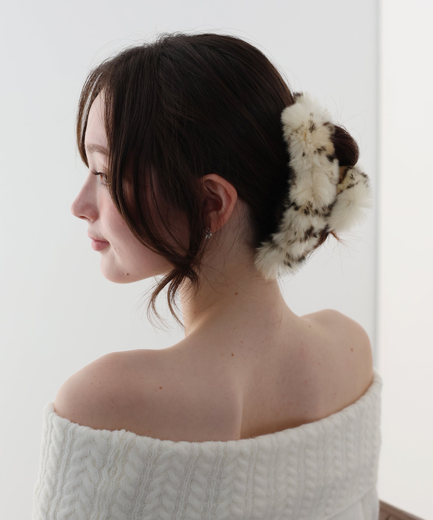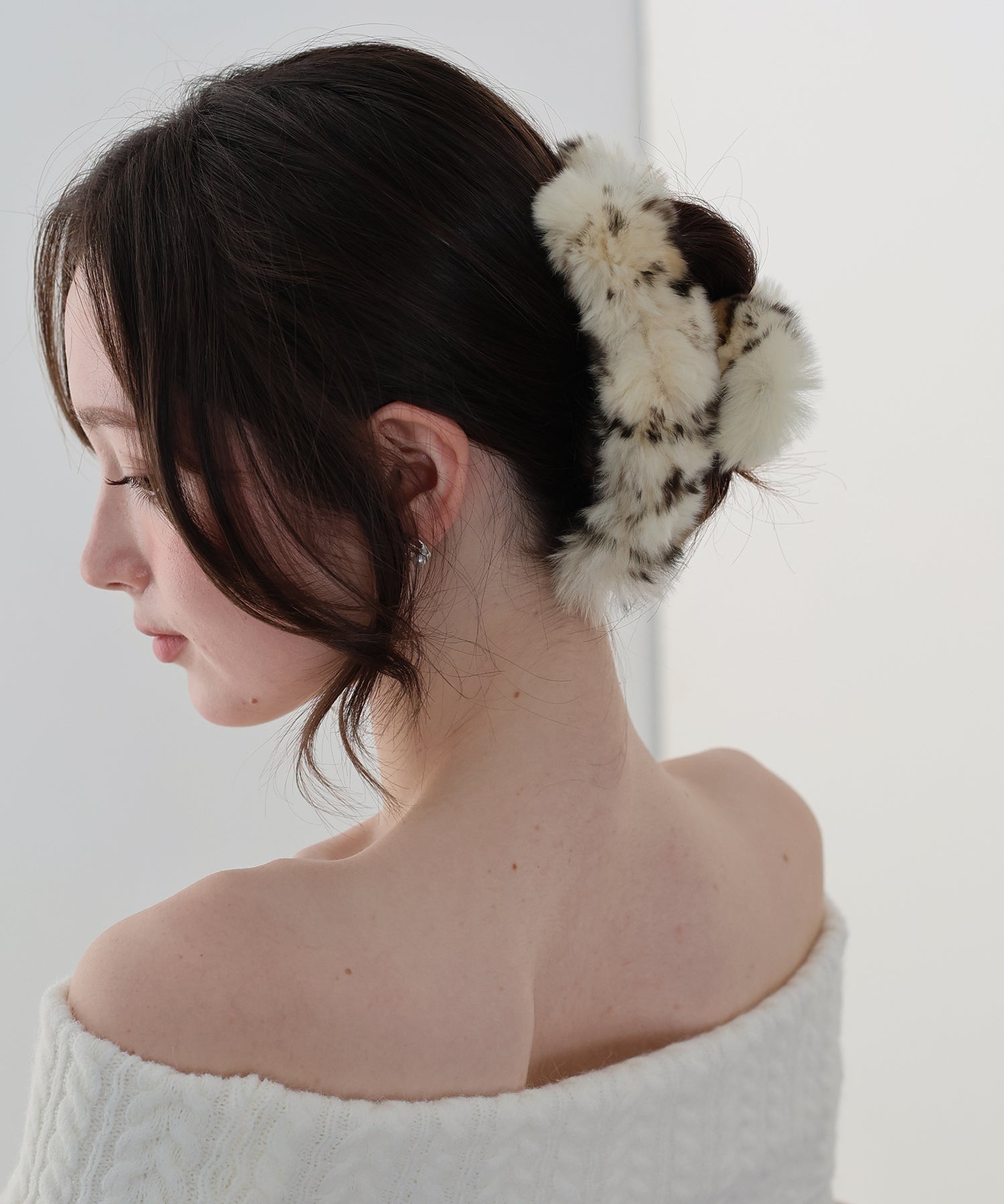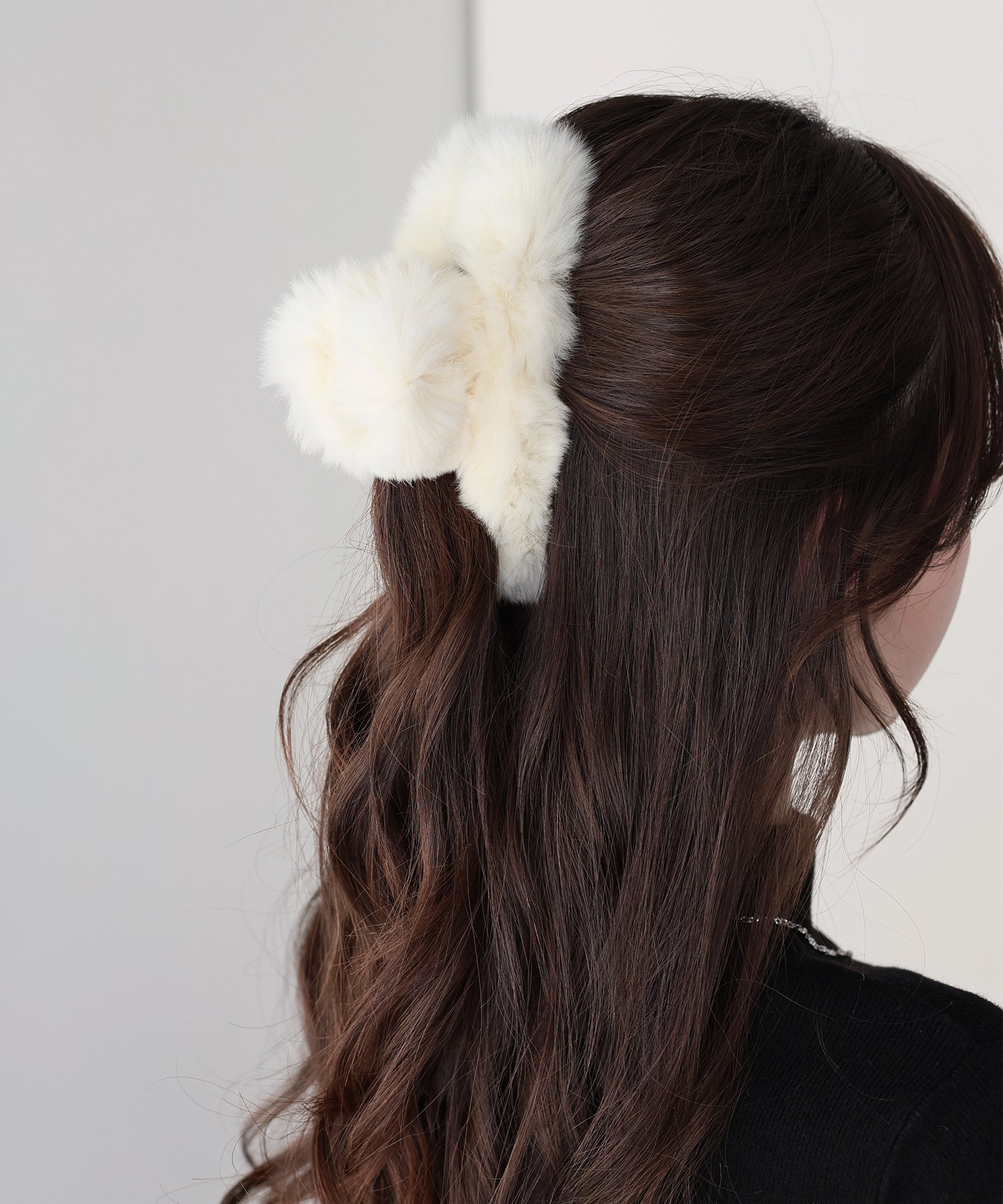 ふわふわのファーをあしらいコーデに秋冬のムードをプラスするヘアクリップ。