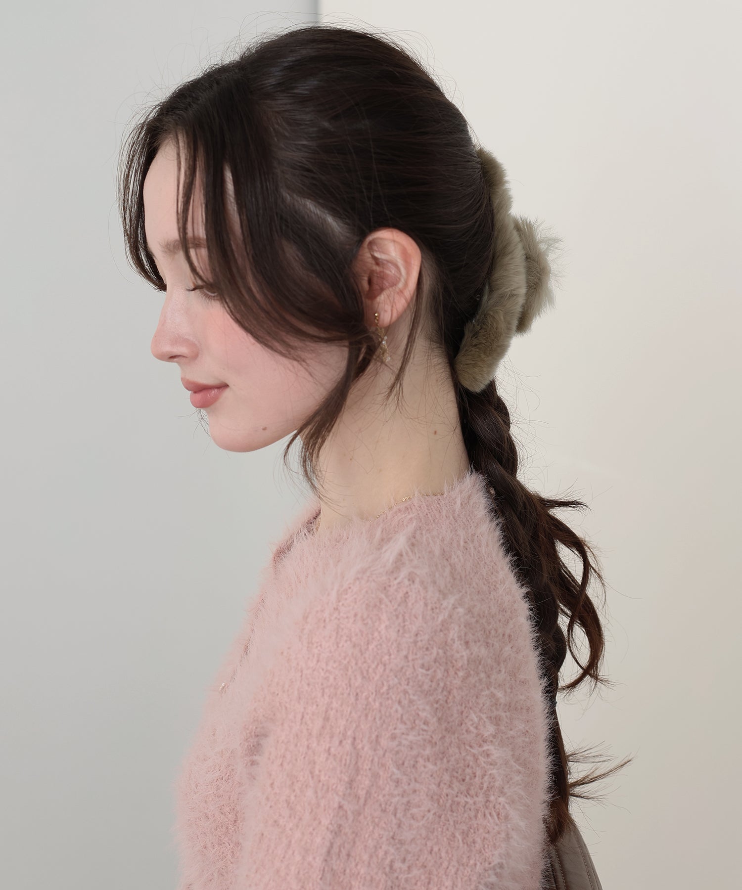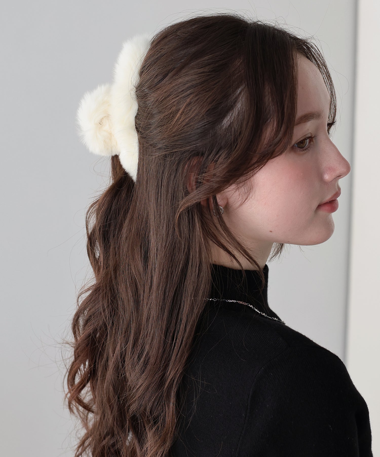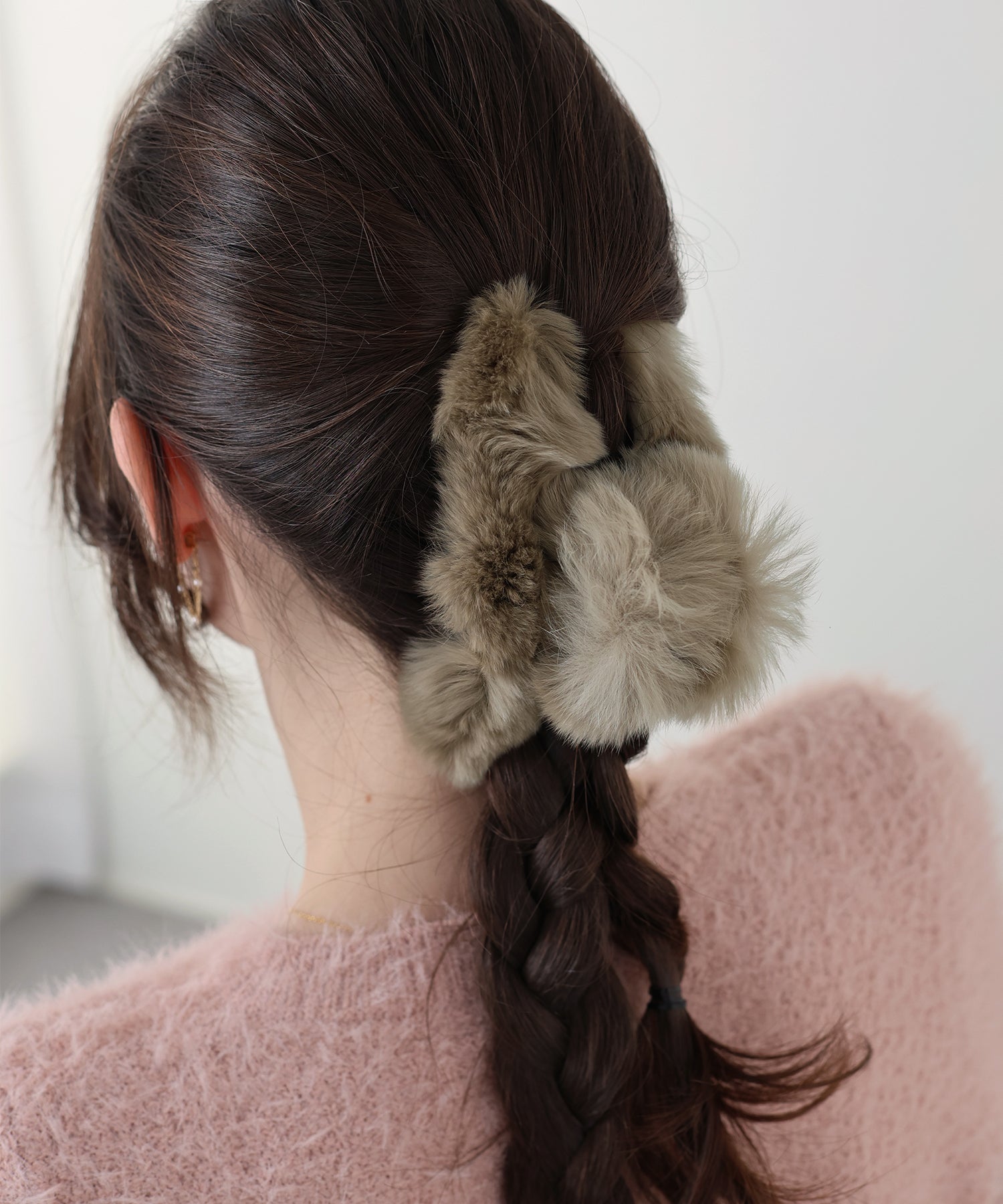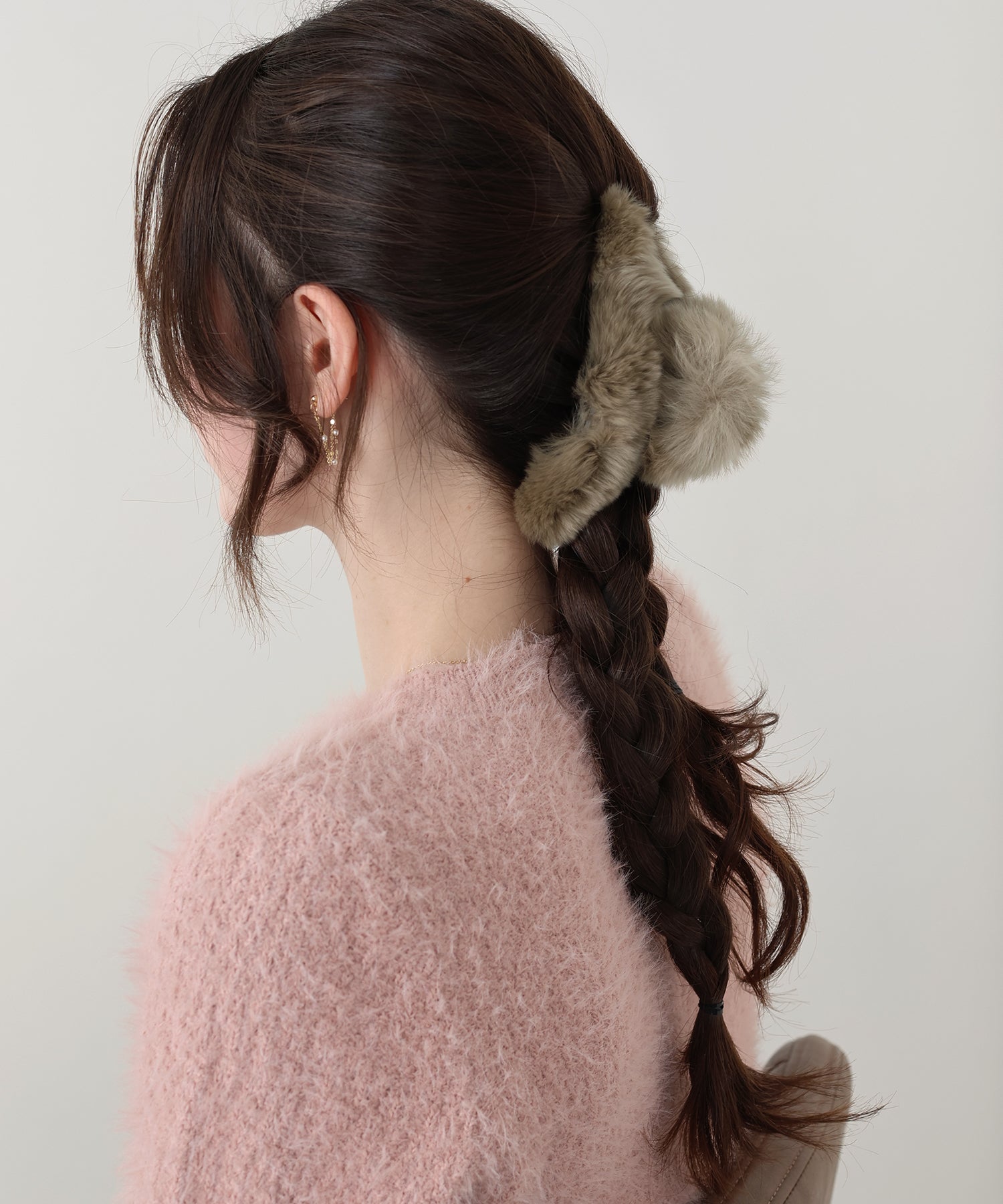 ふわふわのファーをあしらいコーデに秋冬のムードをプラスするヘアクリップ。