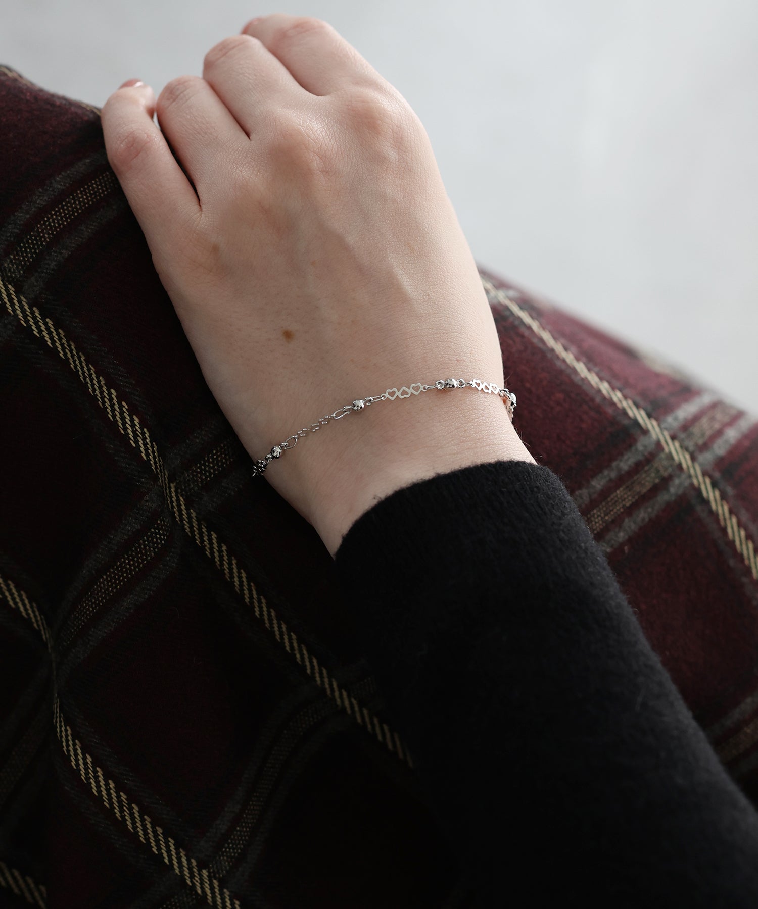 さりげなくガーリーな魅力のハートチェーンブレスレット