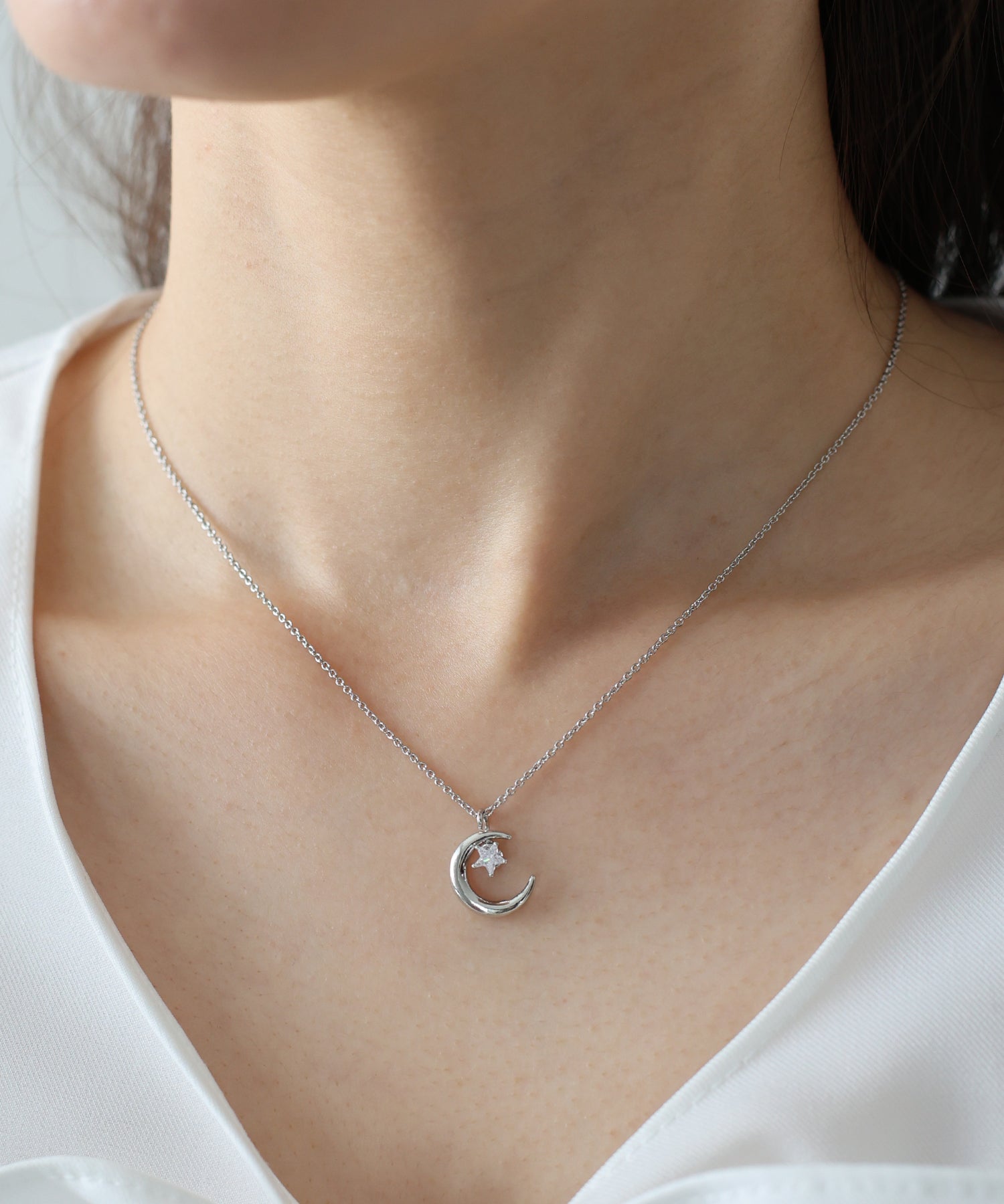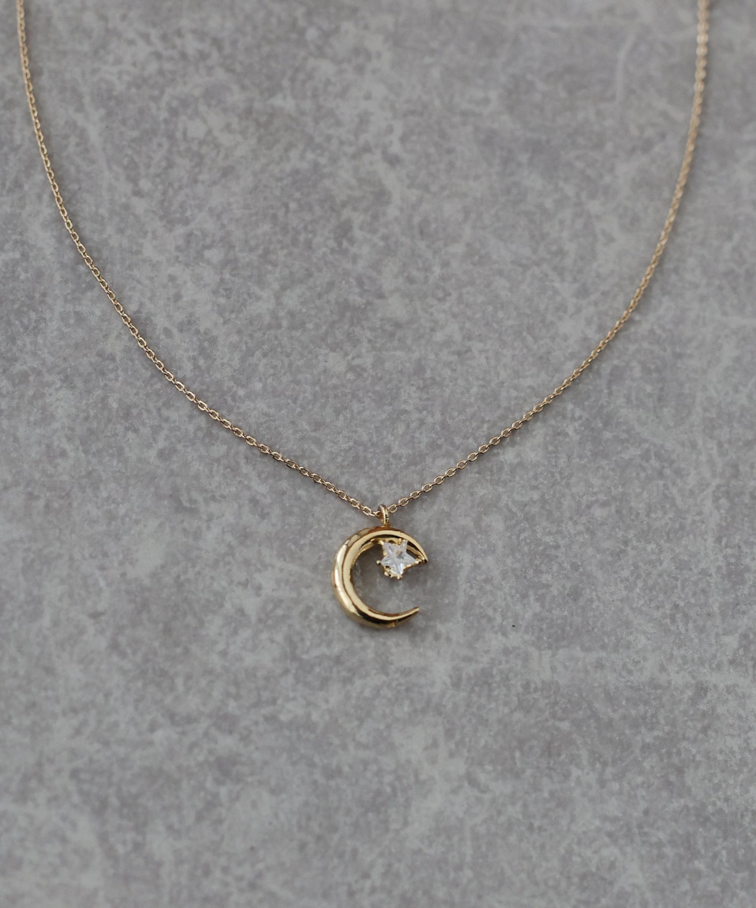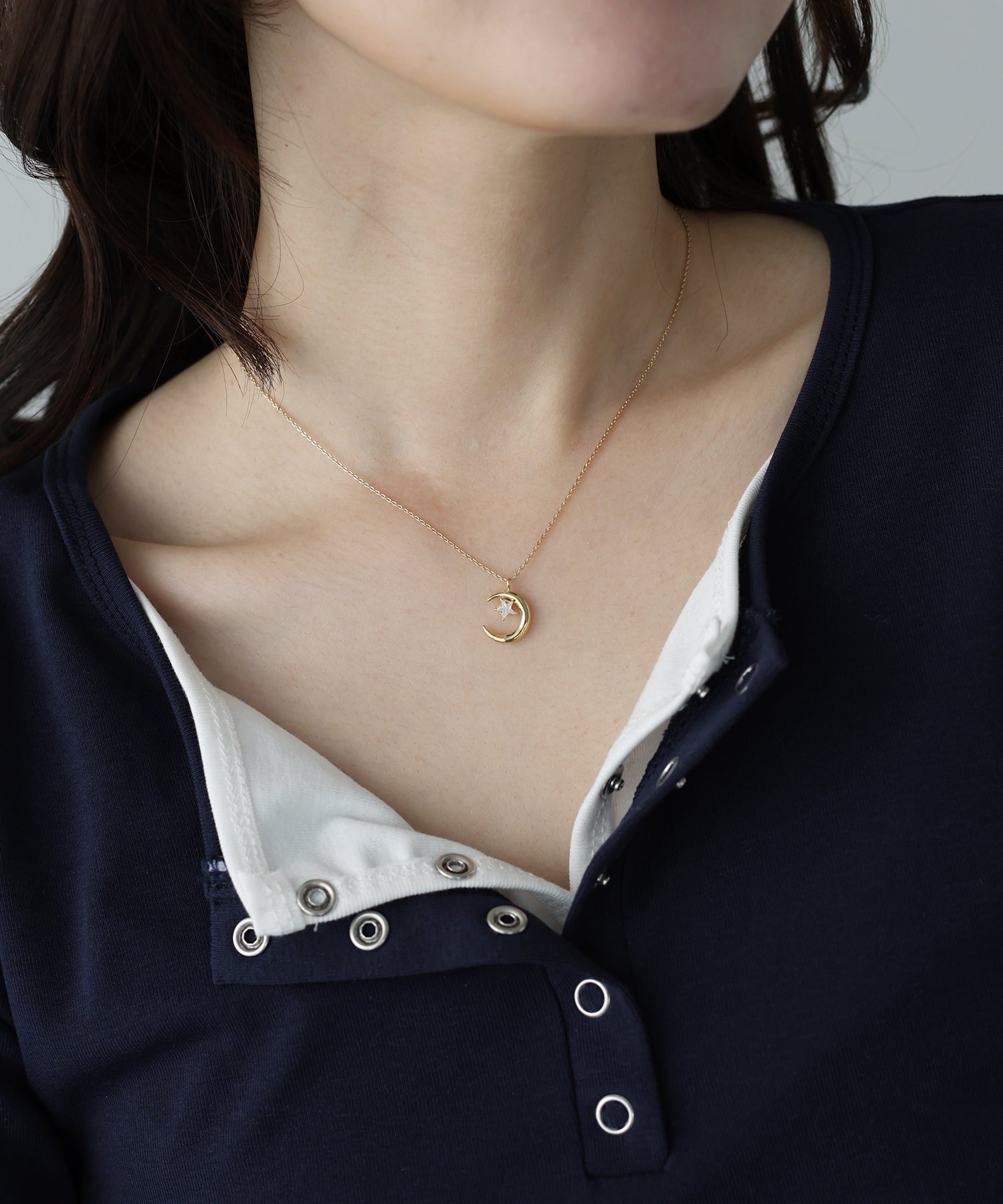 ムーンモチーフのビジューデザインが輝くネックレス。
