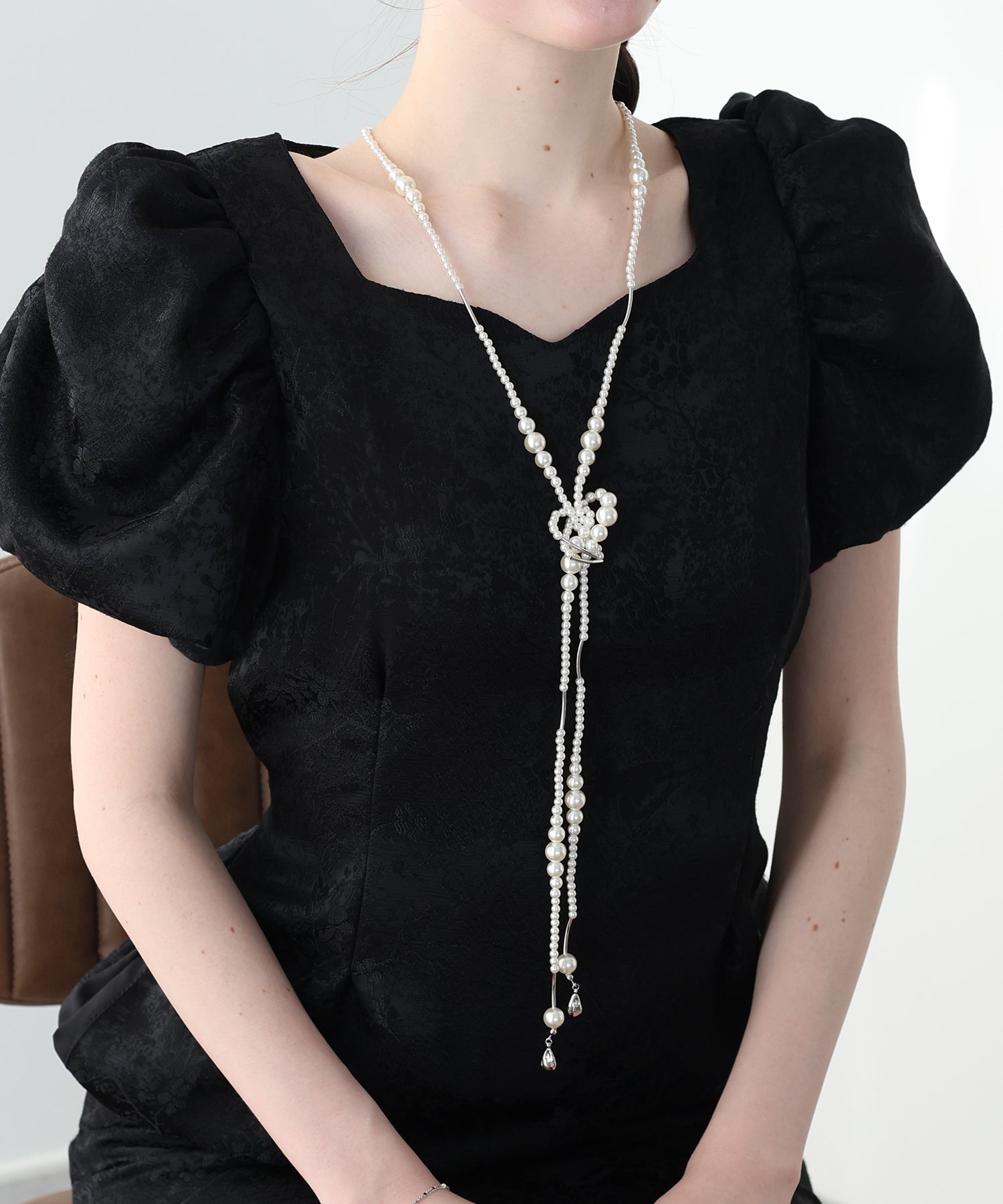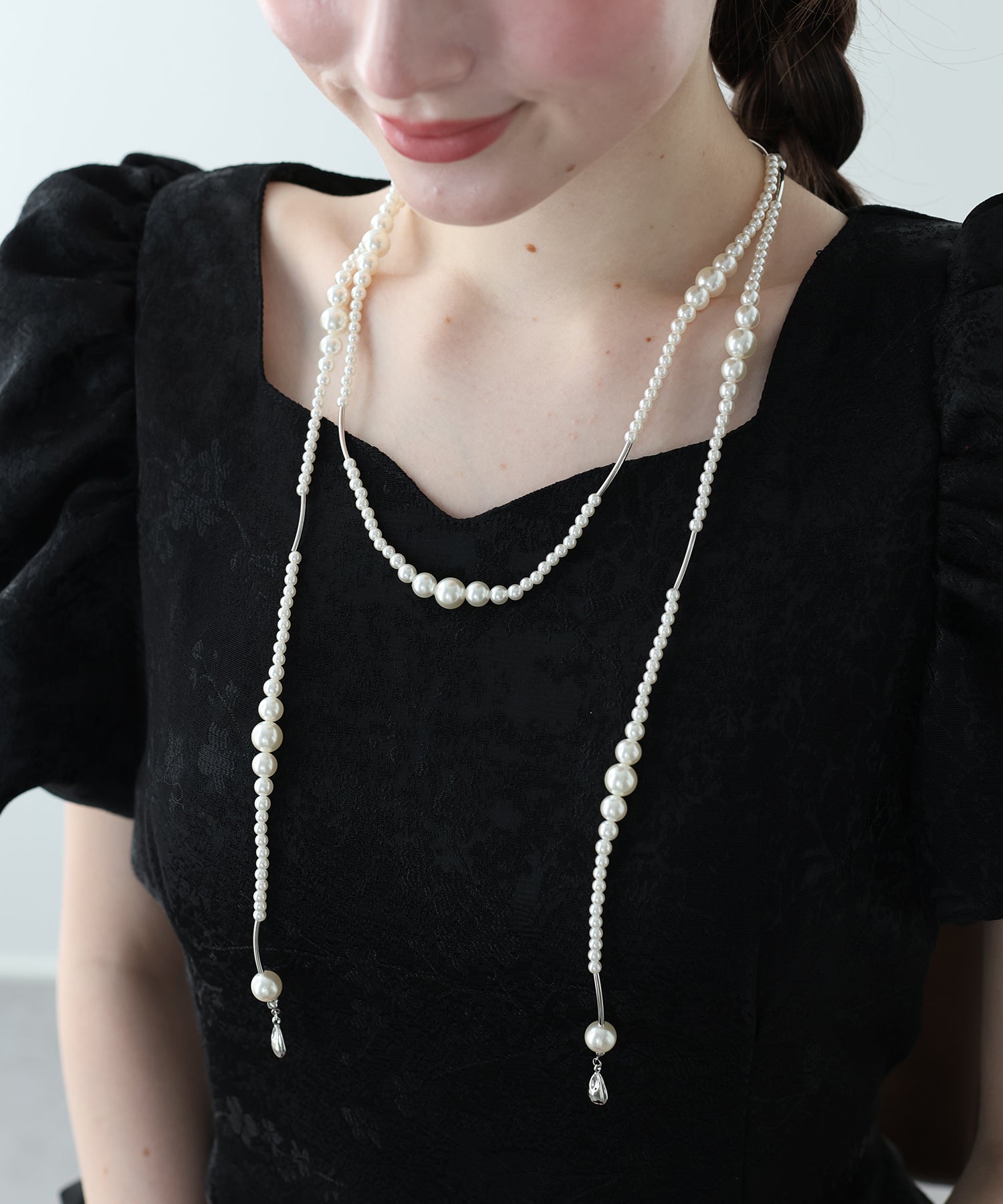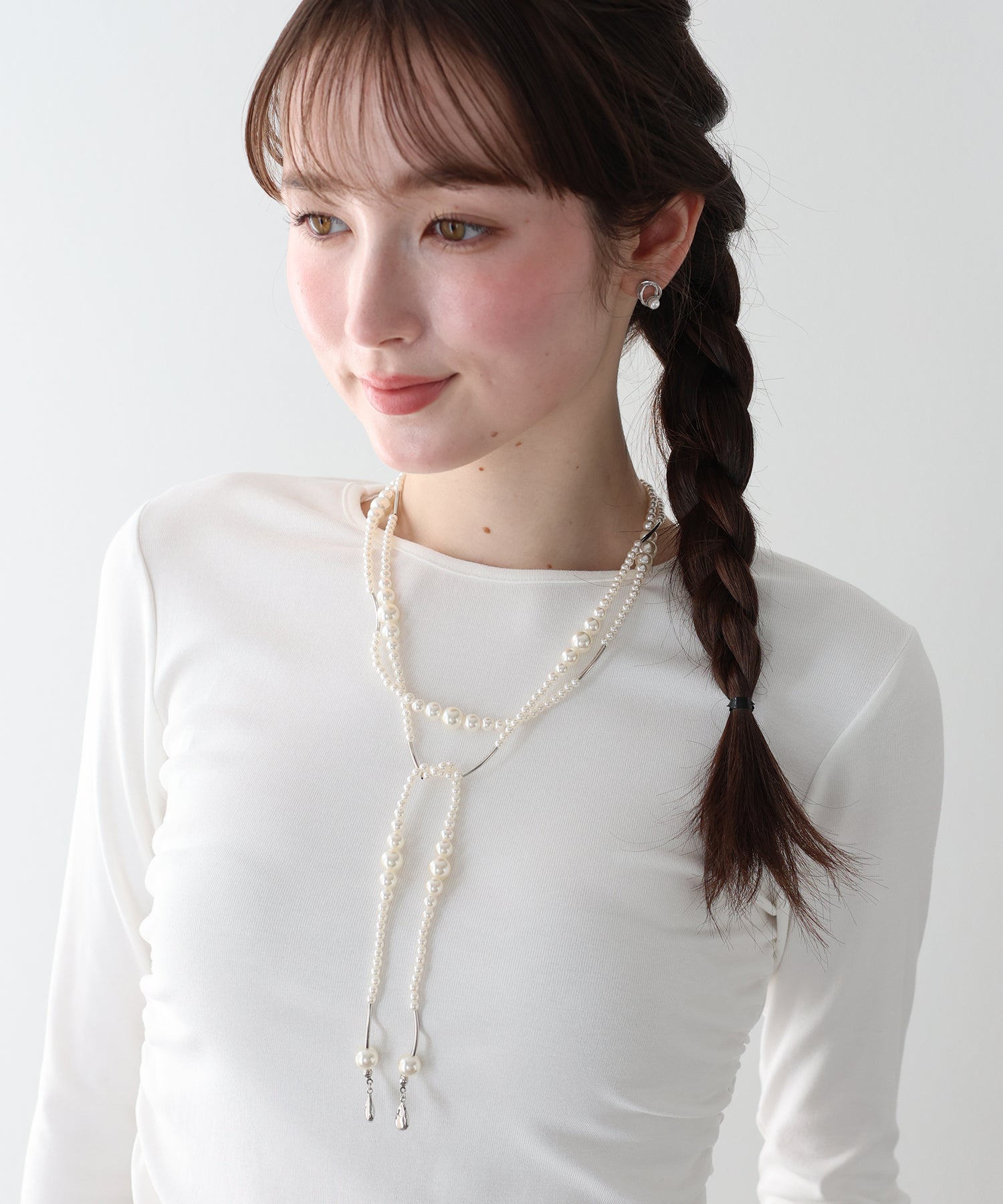 パールの持つ上品でクラシカルな印象に、ラリエット特有のモダンな抜け感が加わり、コンテンポラリーな表情に仕上げました。