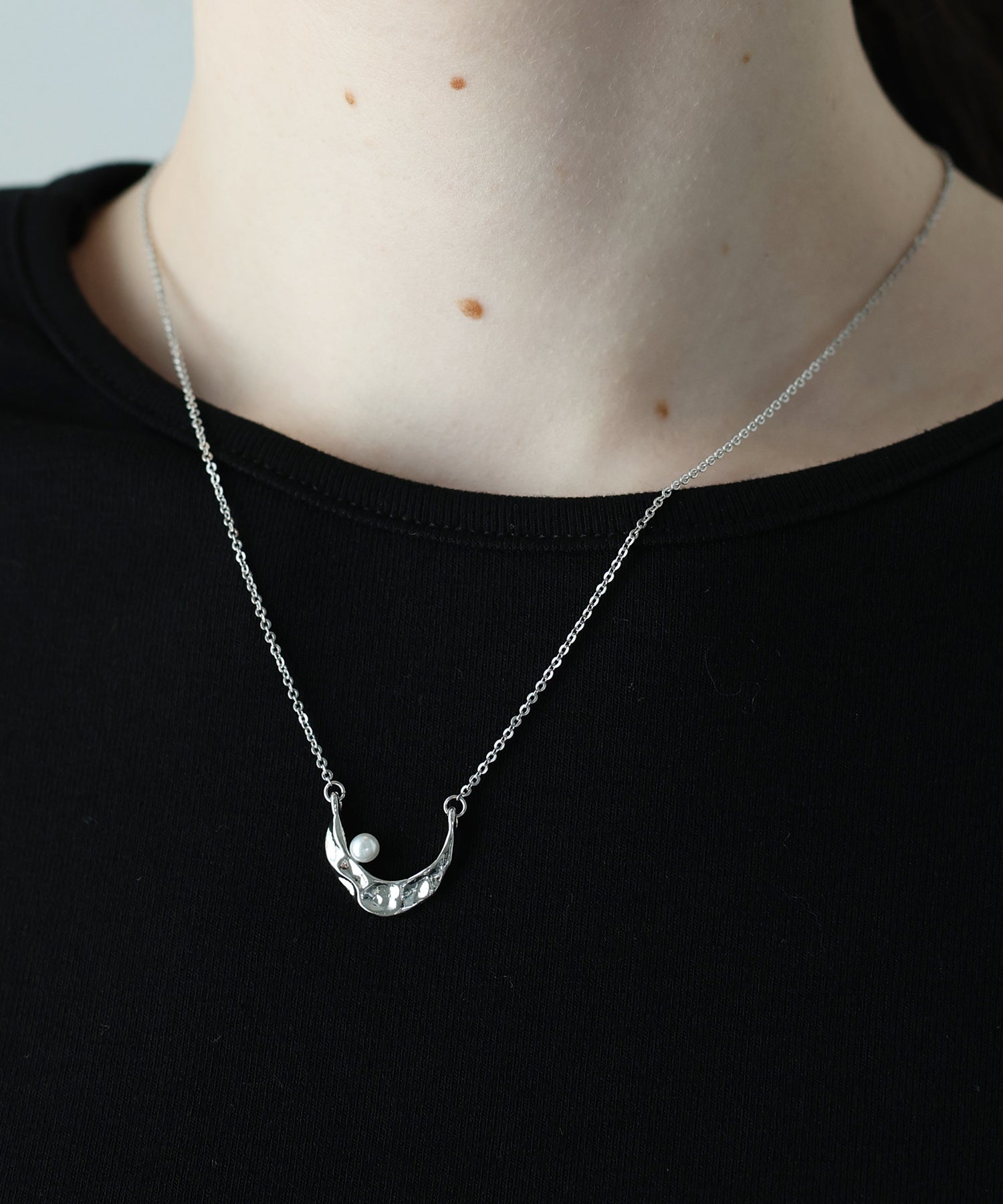 ニュアンス感のあるムーン風のメタルモチーフに、控えめな小粒パールをあしらった上品なアイテムです。
