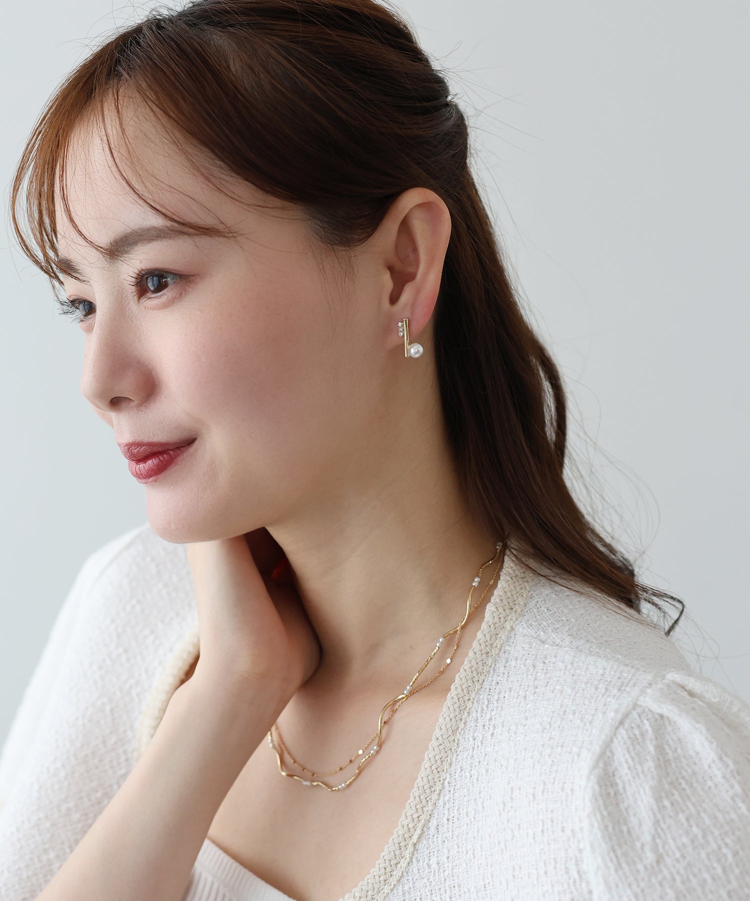 【早割5%OFF】ラインビジューパールピアス【メール便】