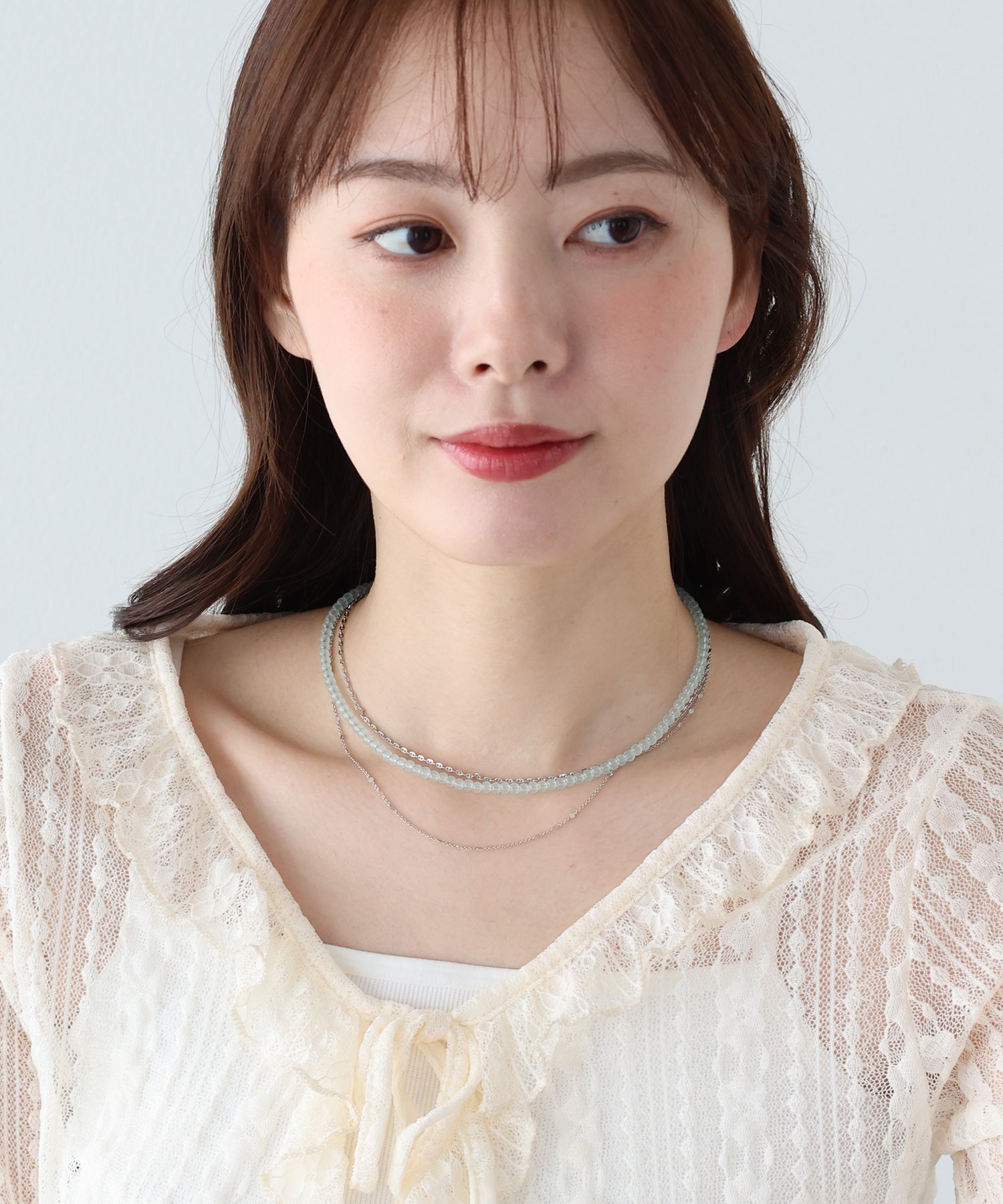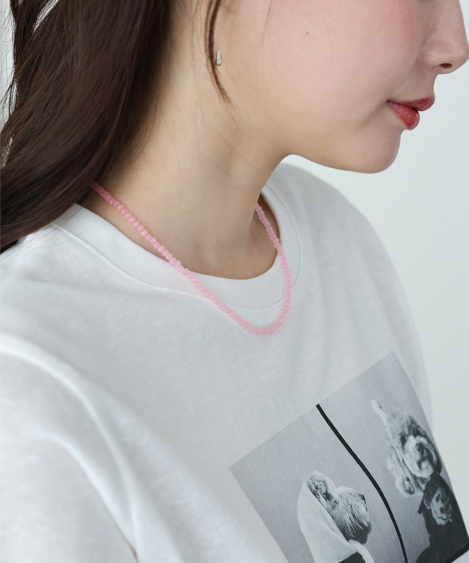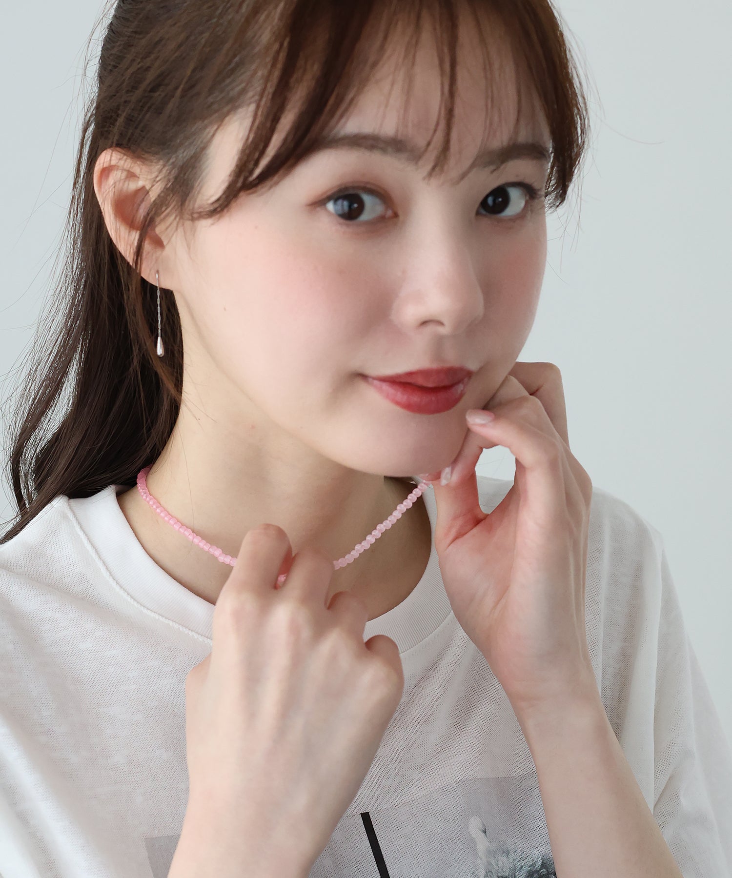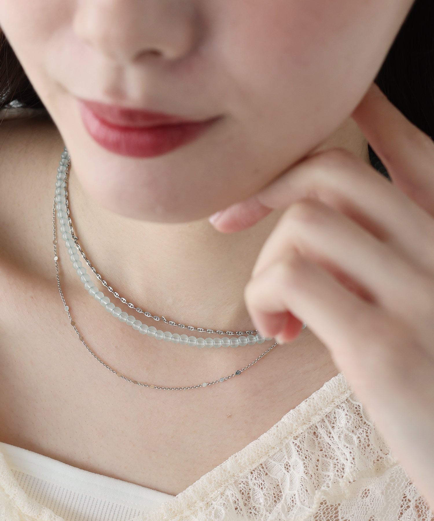 透け感のあるクリアで主張しすぎないカラーで、他のネックレスとレイヤードするのも◎