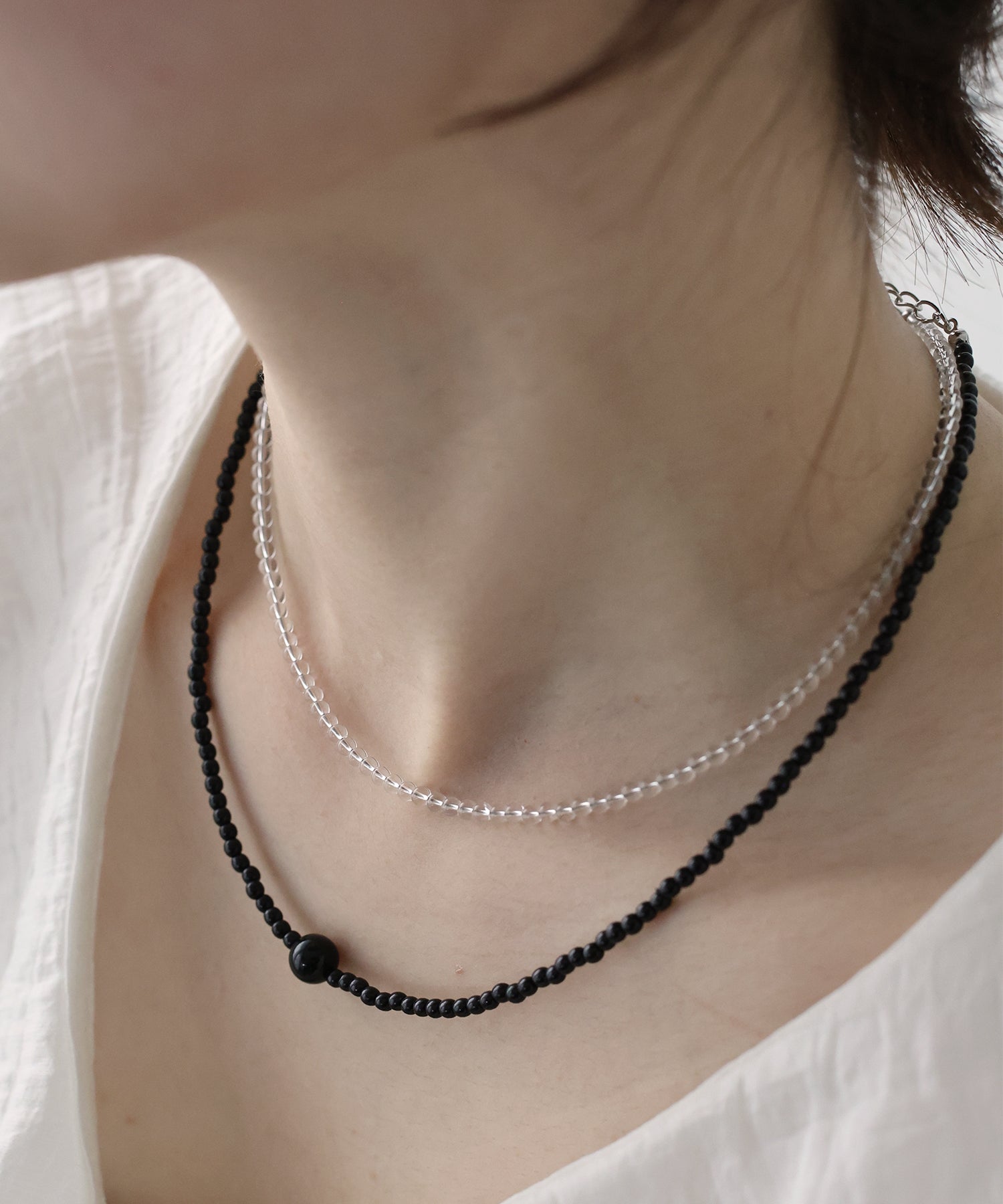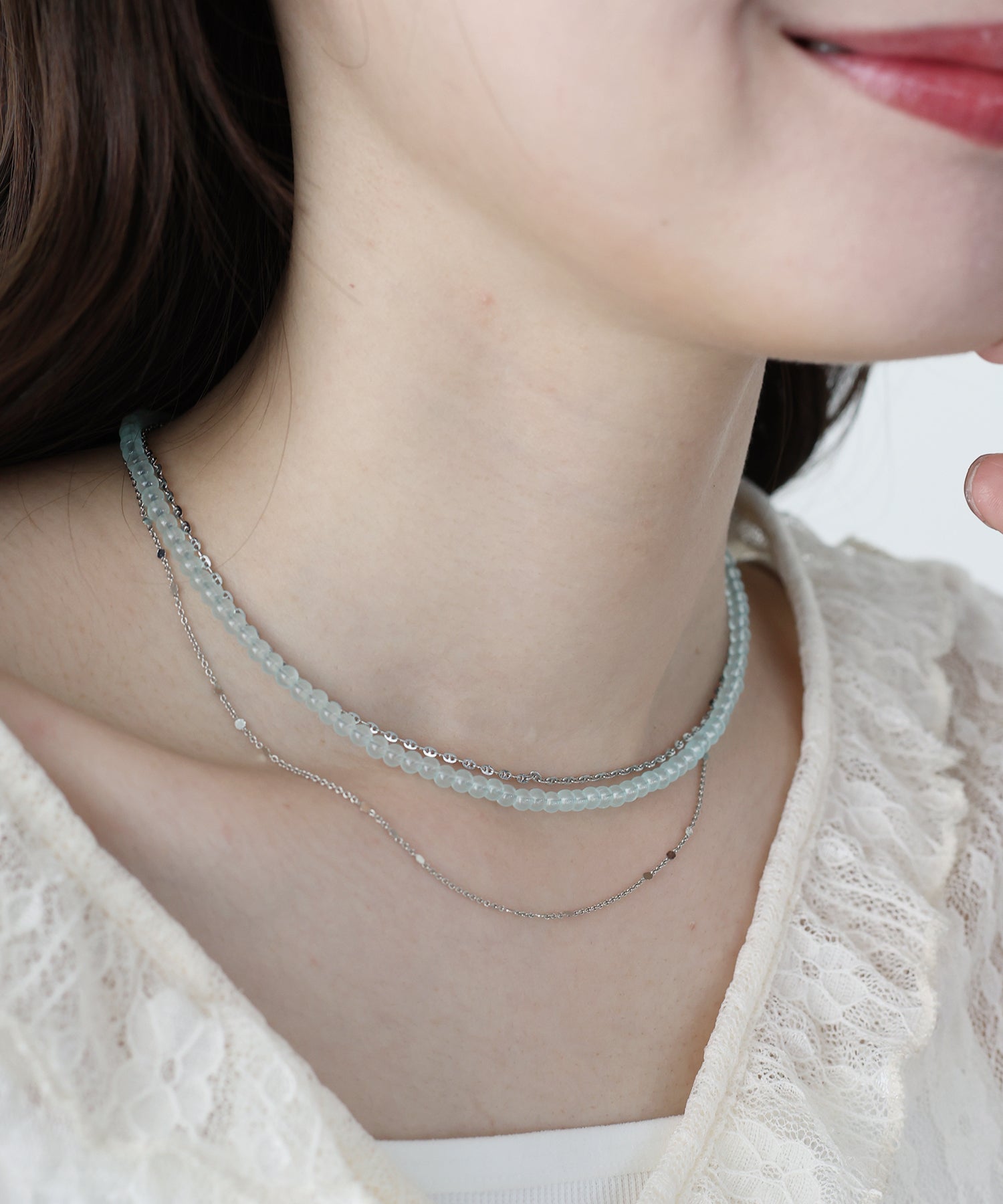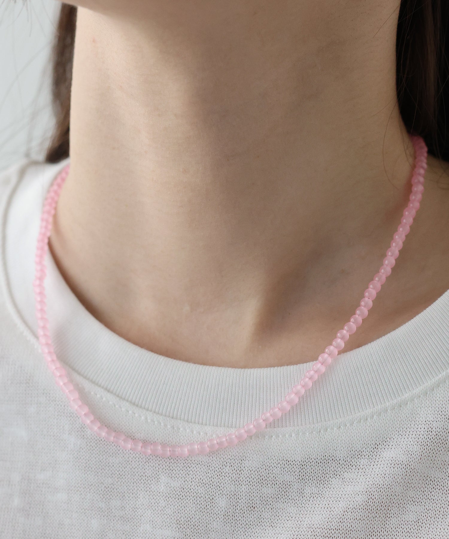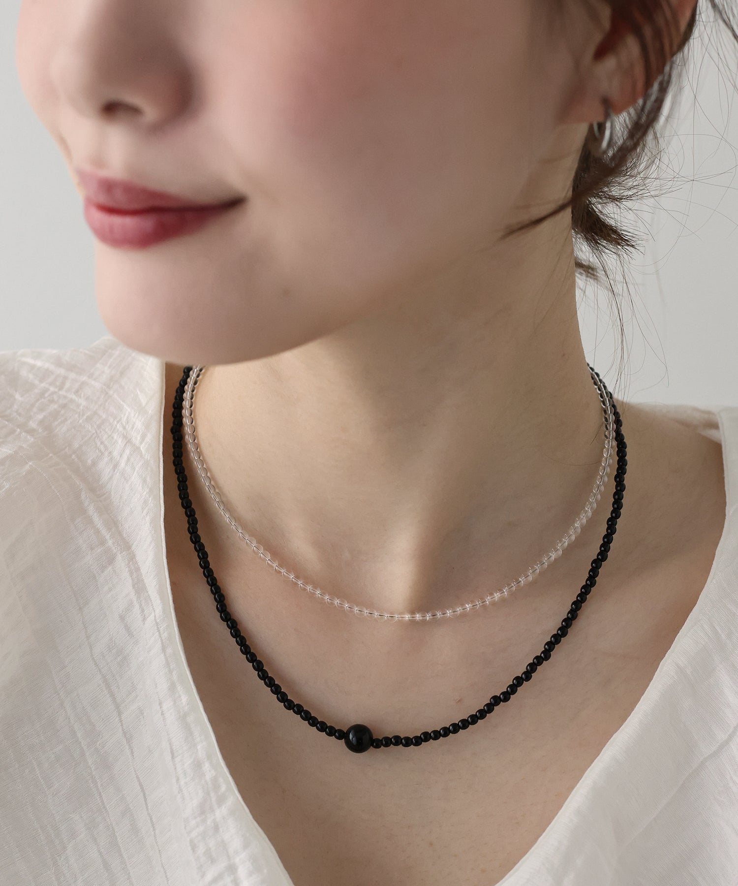 透け感のあるクリアで主張しすぎないカラーで、他のネックレスとレイヤードするのも◎
