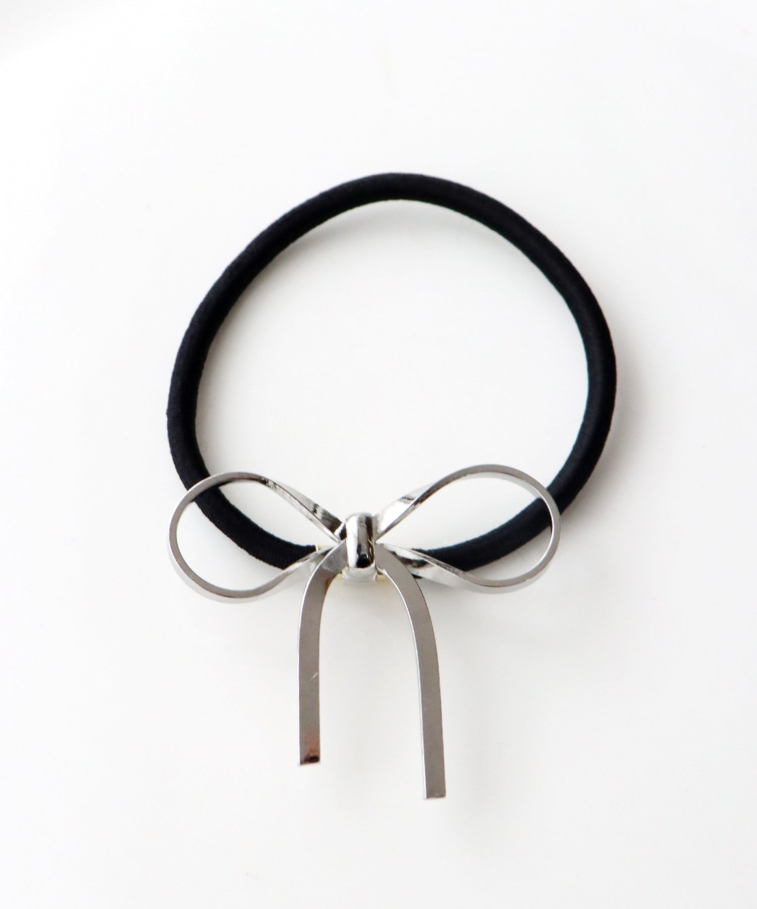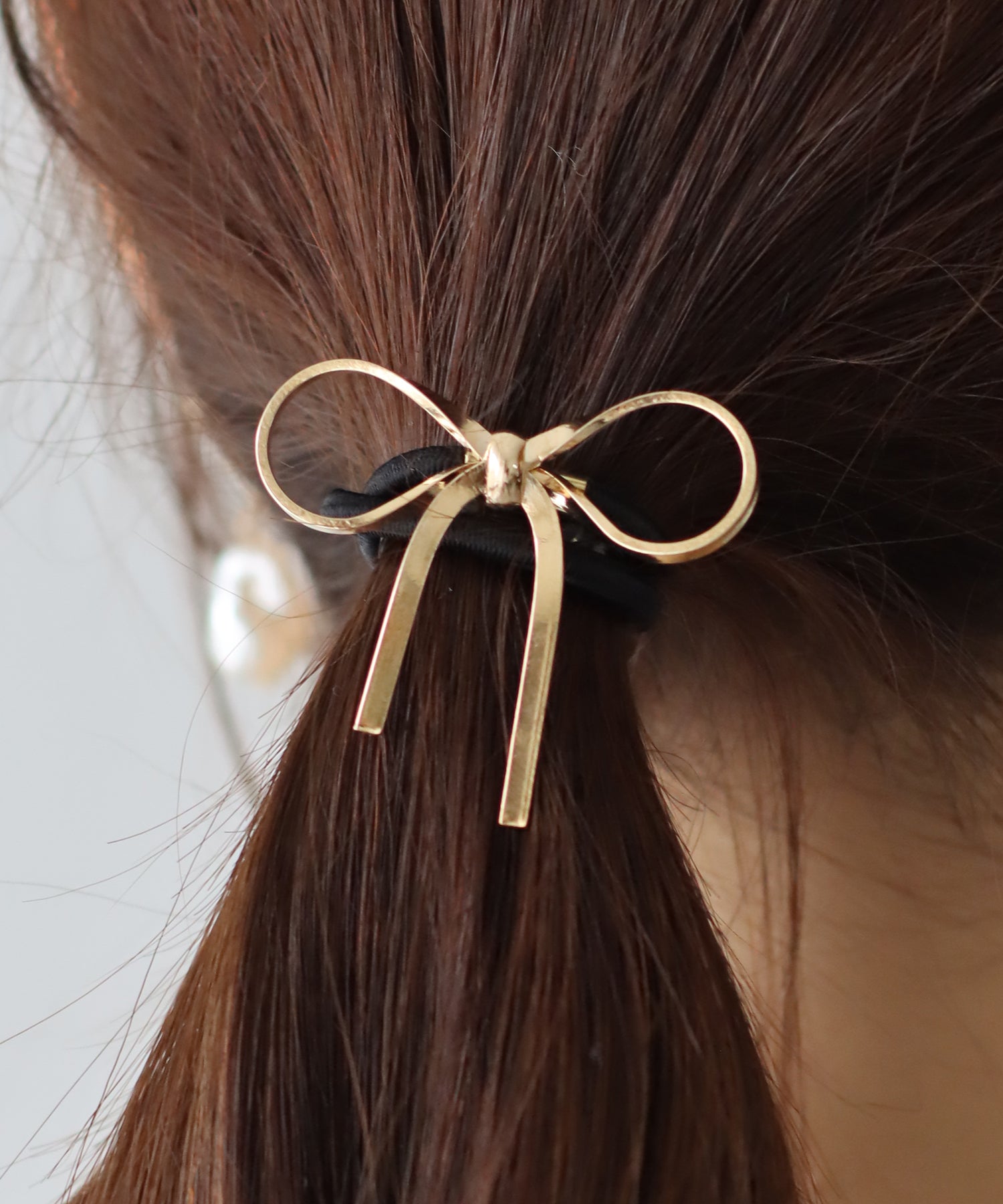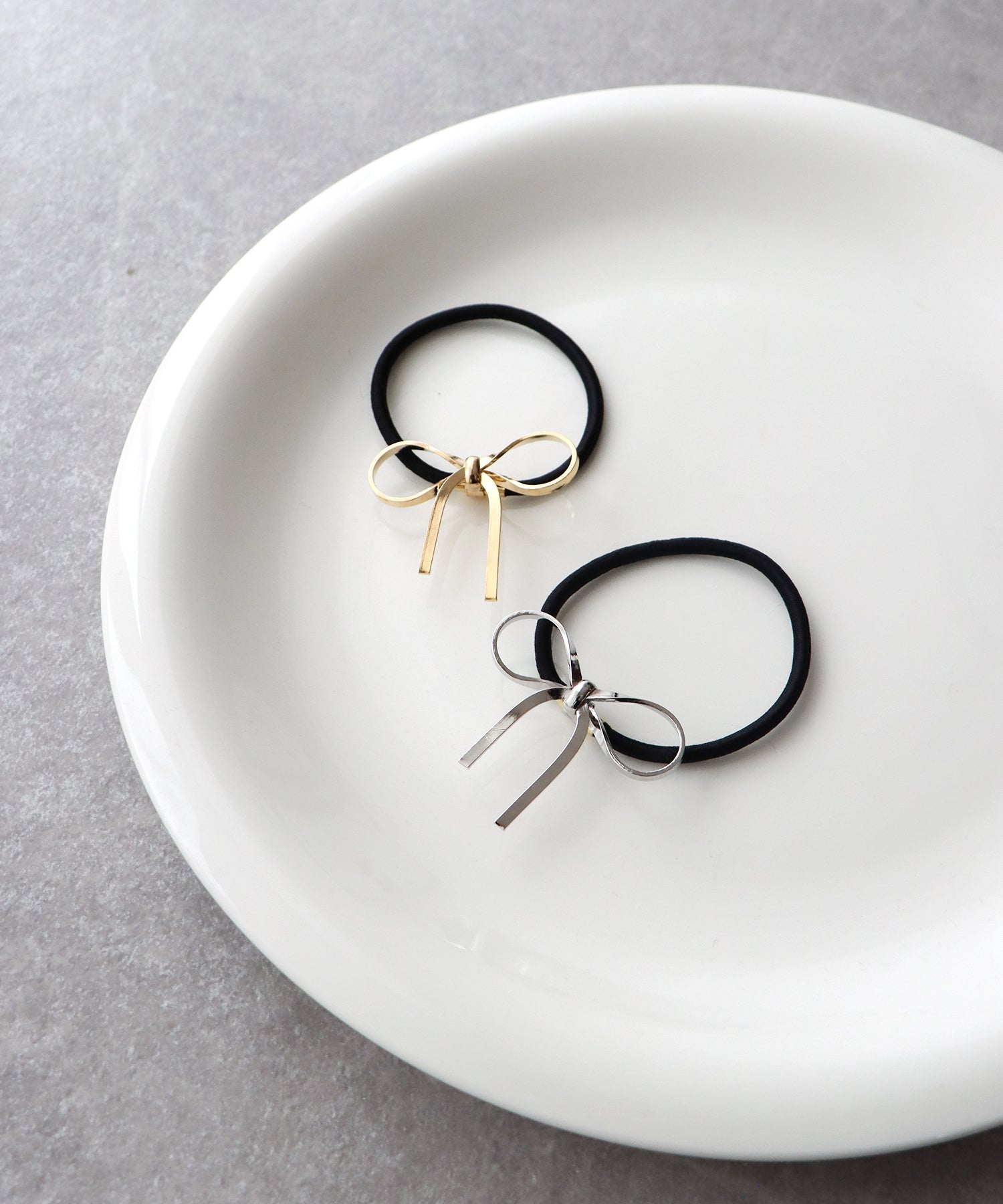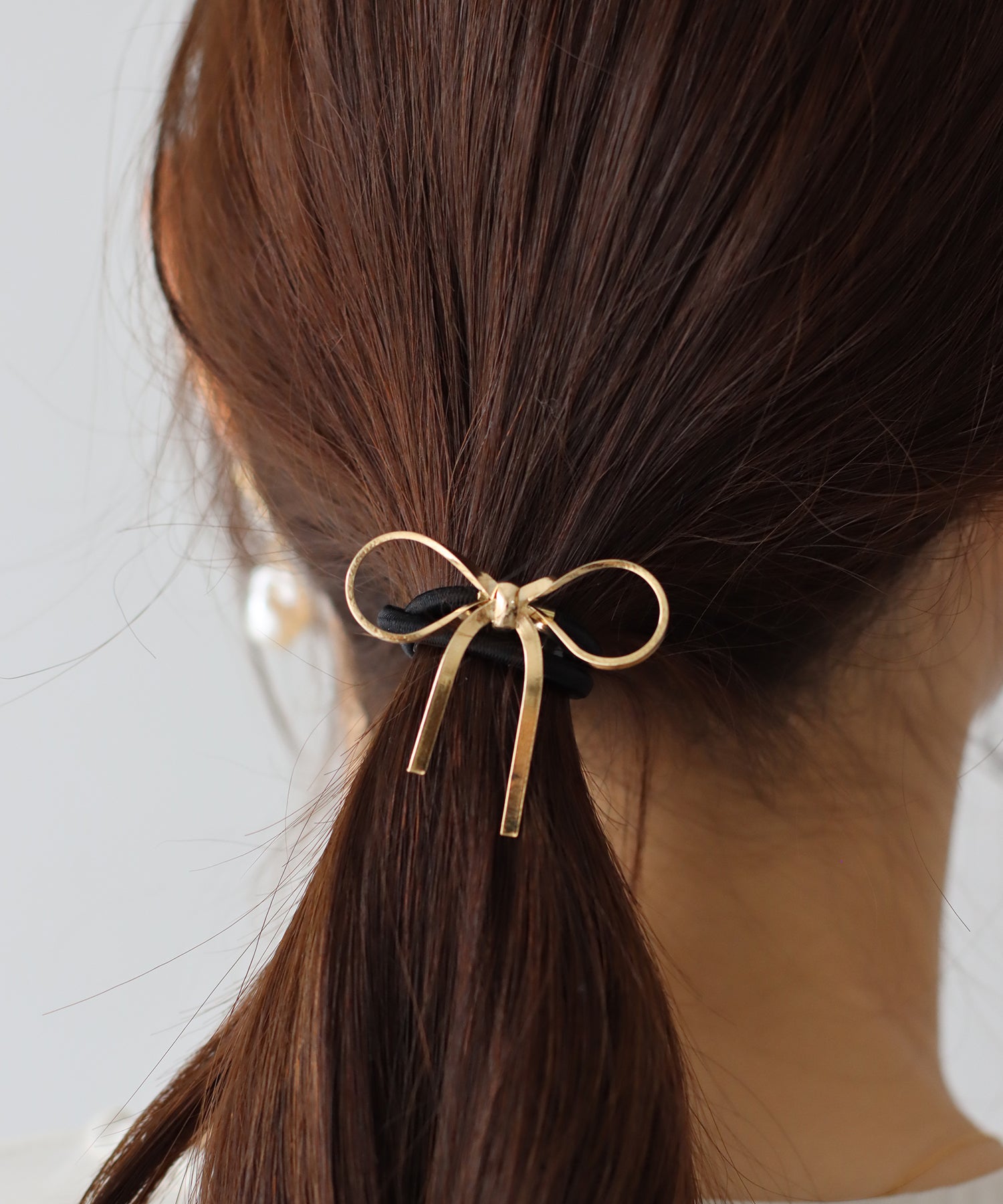 メタルラインの華奢なリボンモチーフのヘアゴム