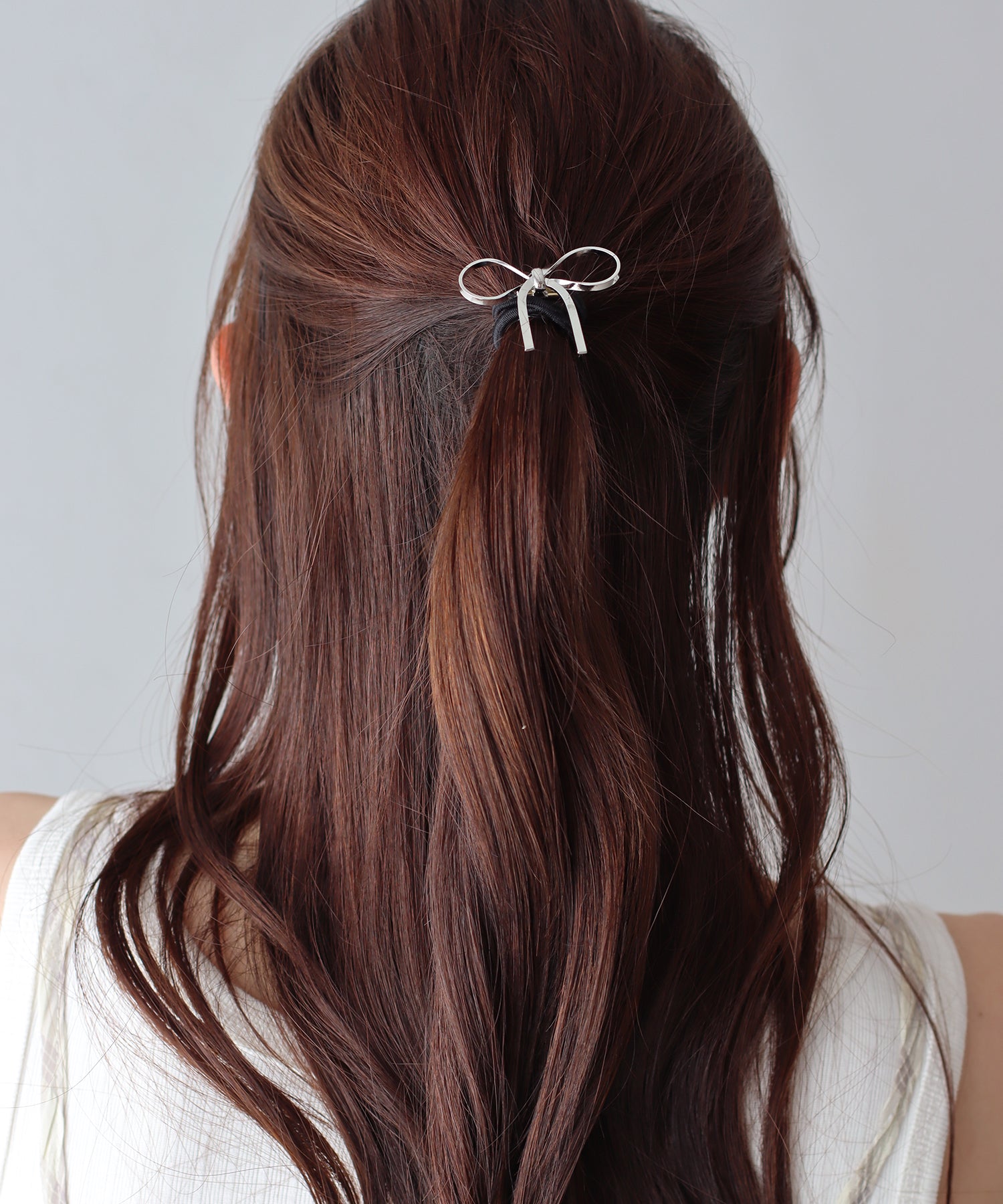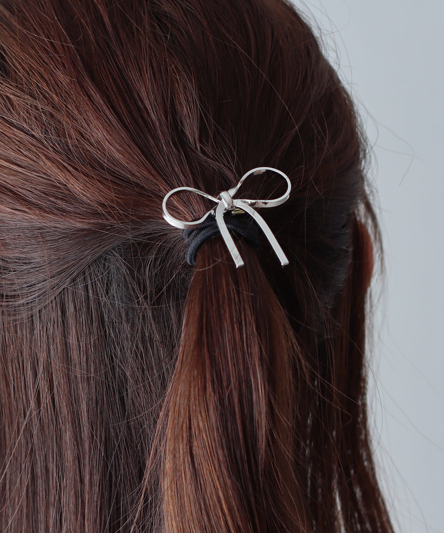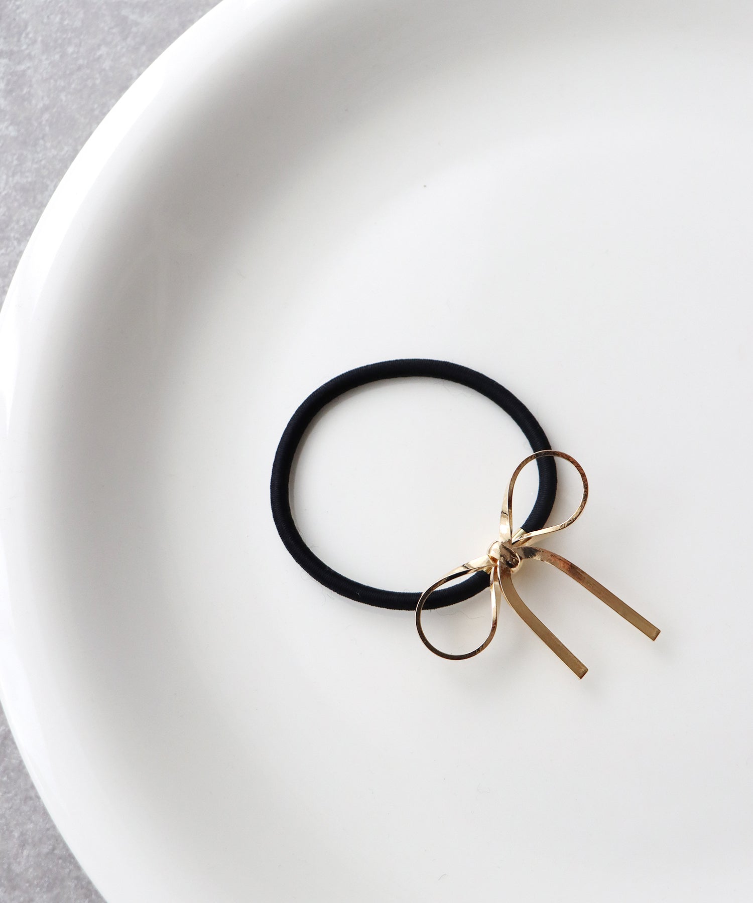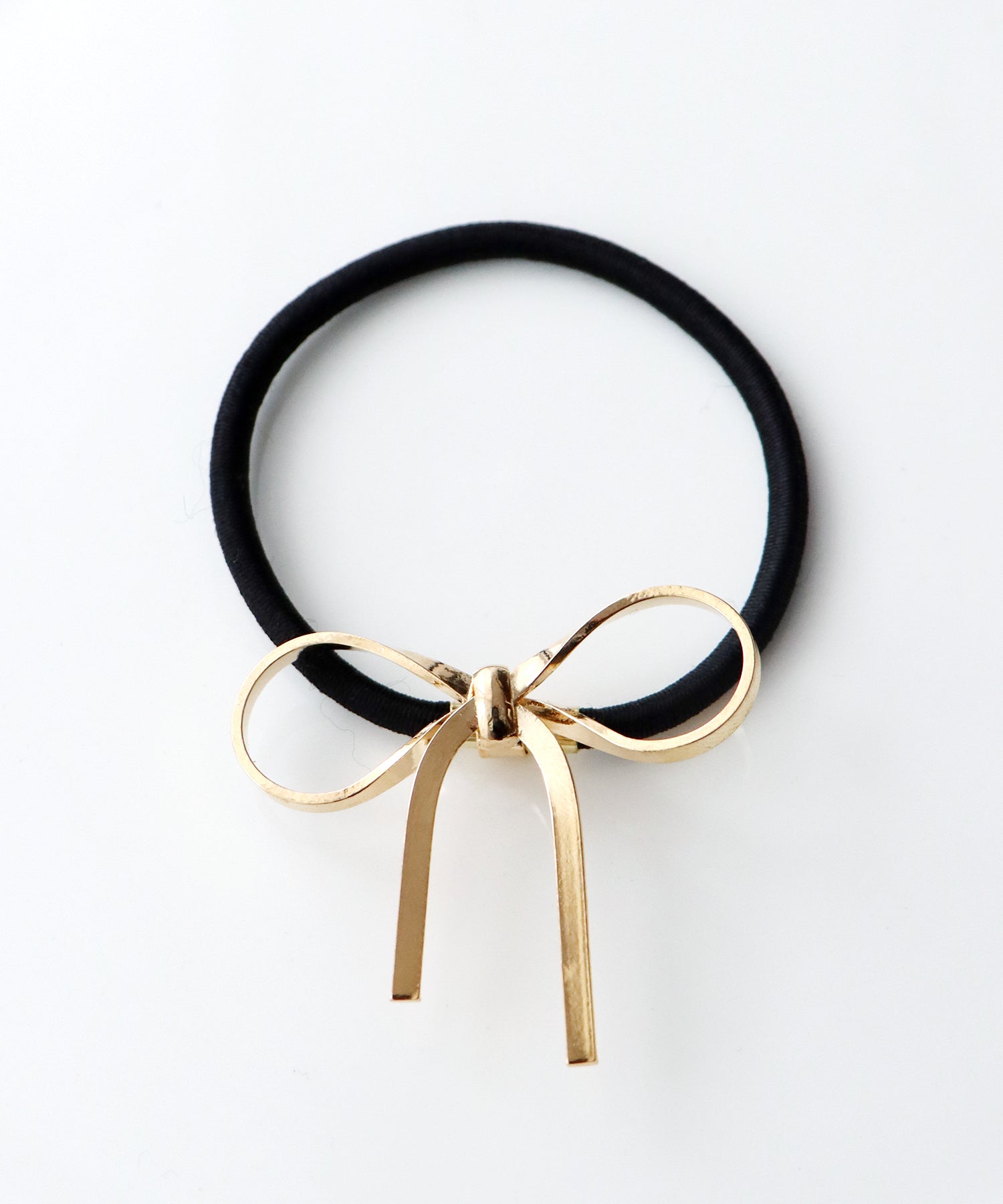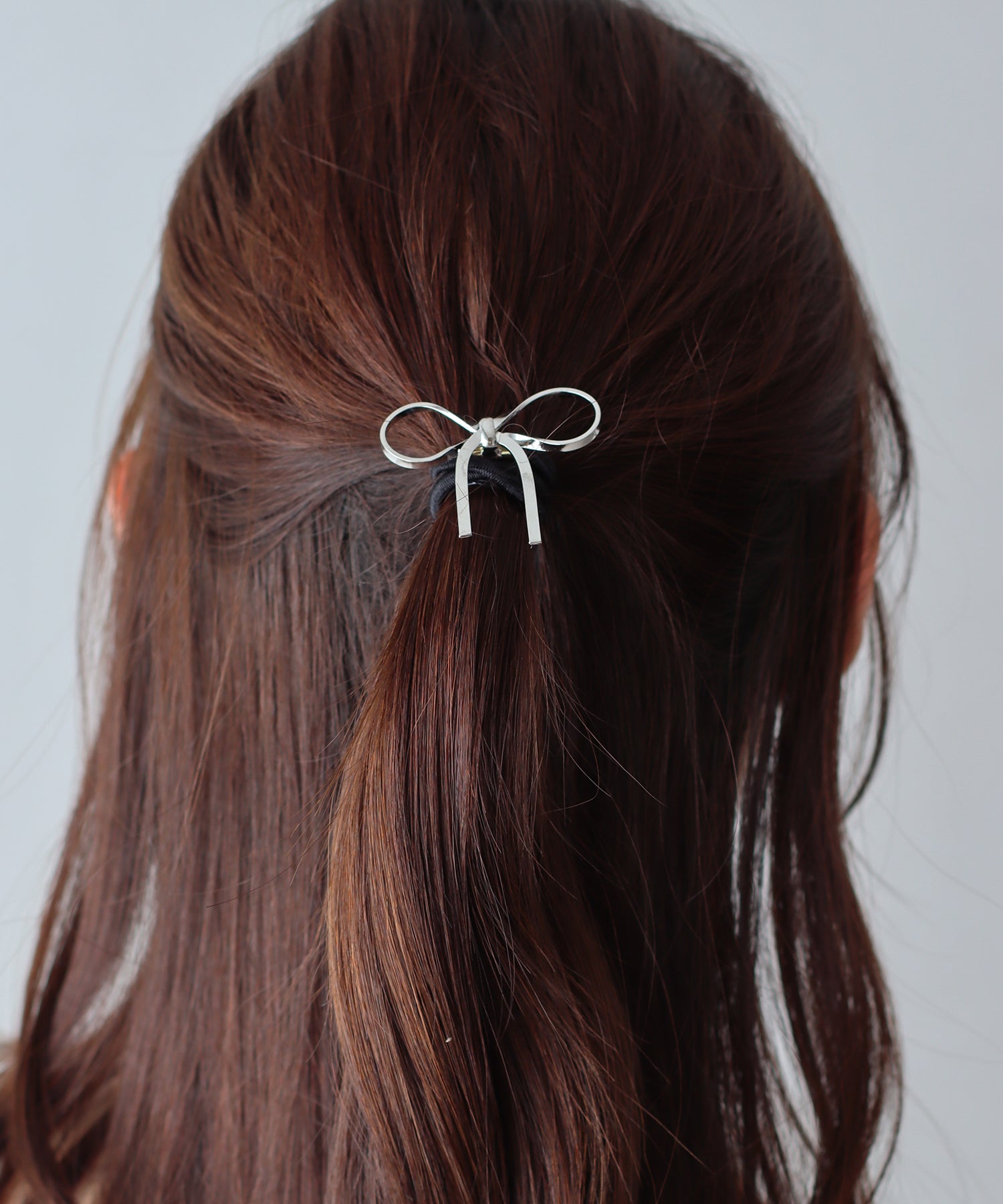 メタルラインの華奢なリボンモチーフのヘアゴム