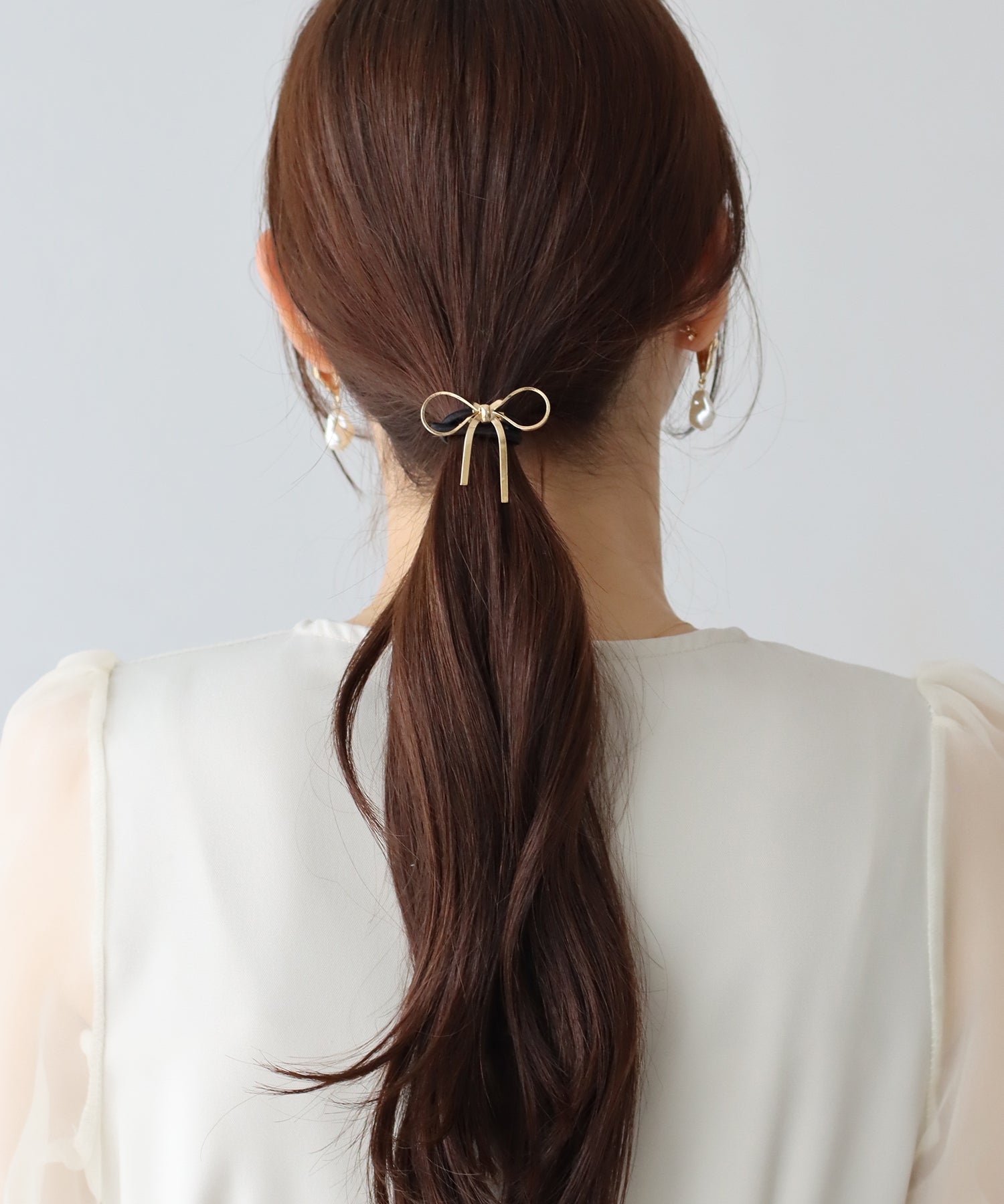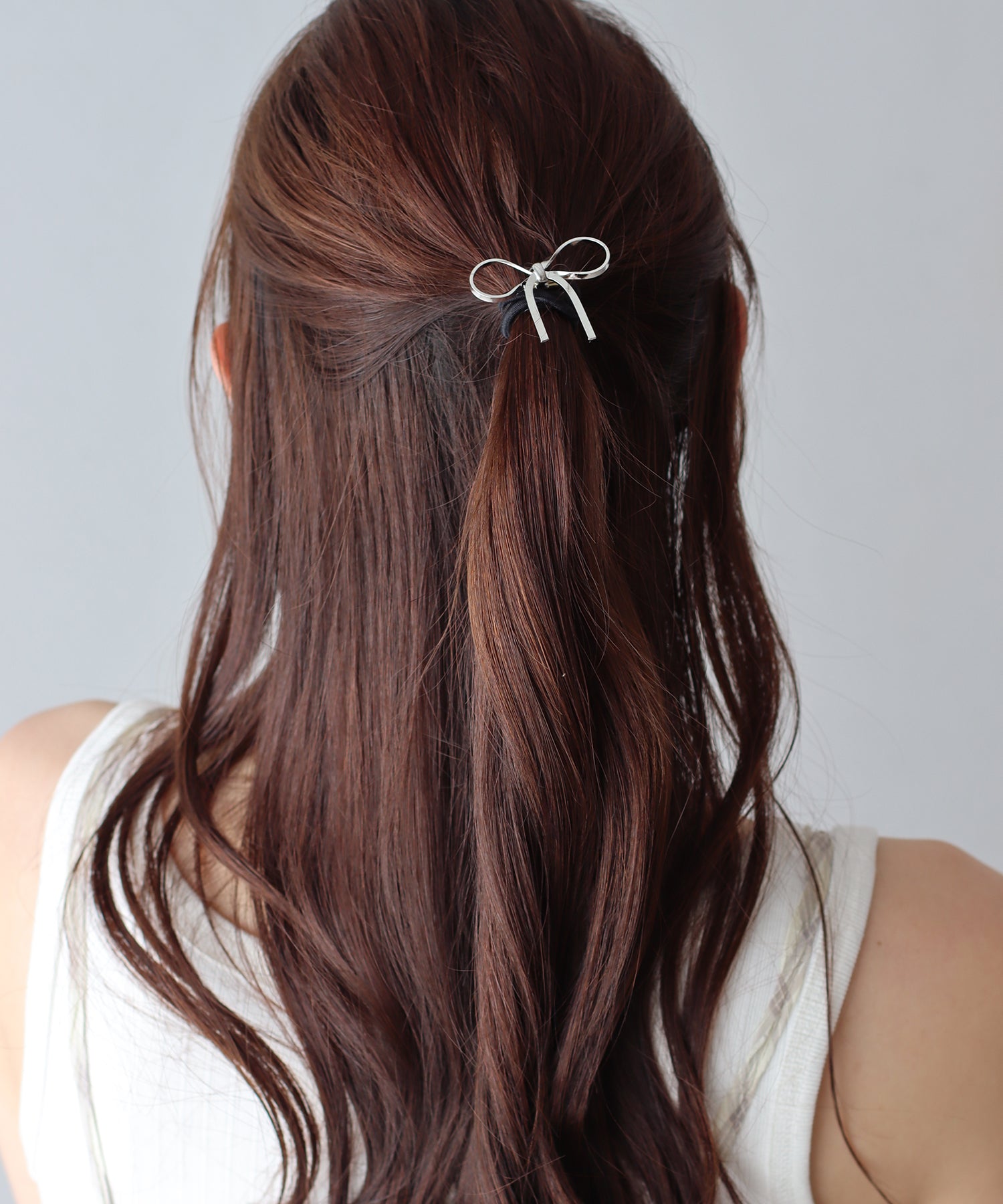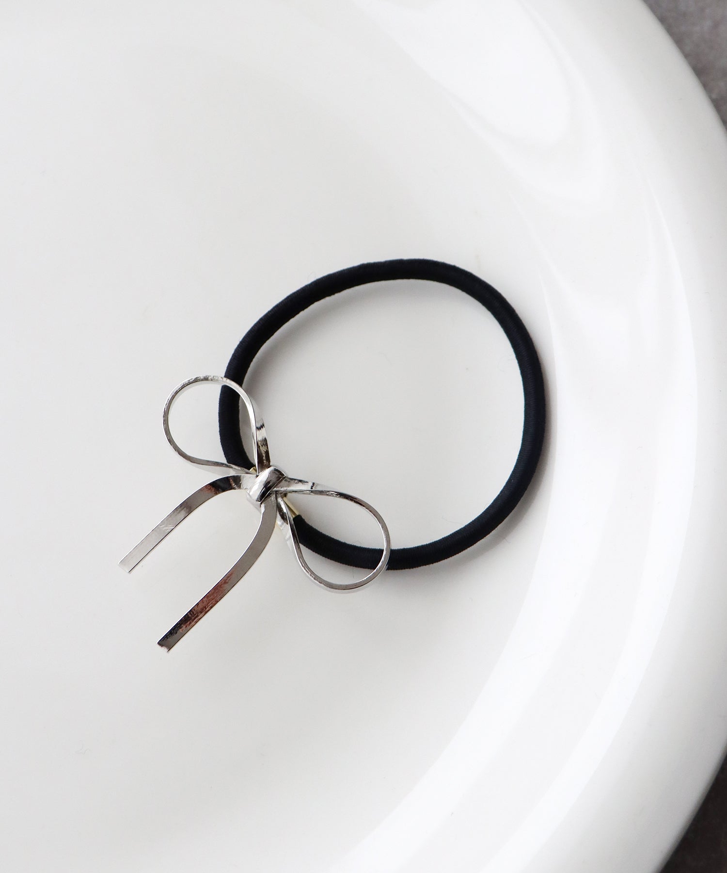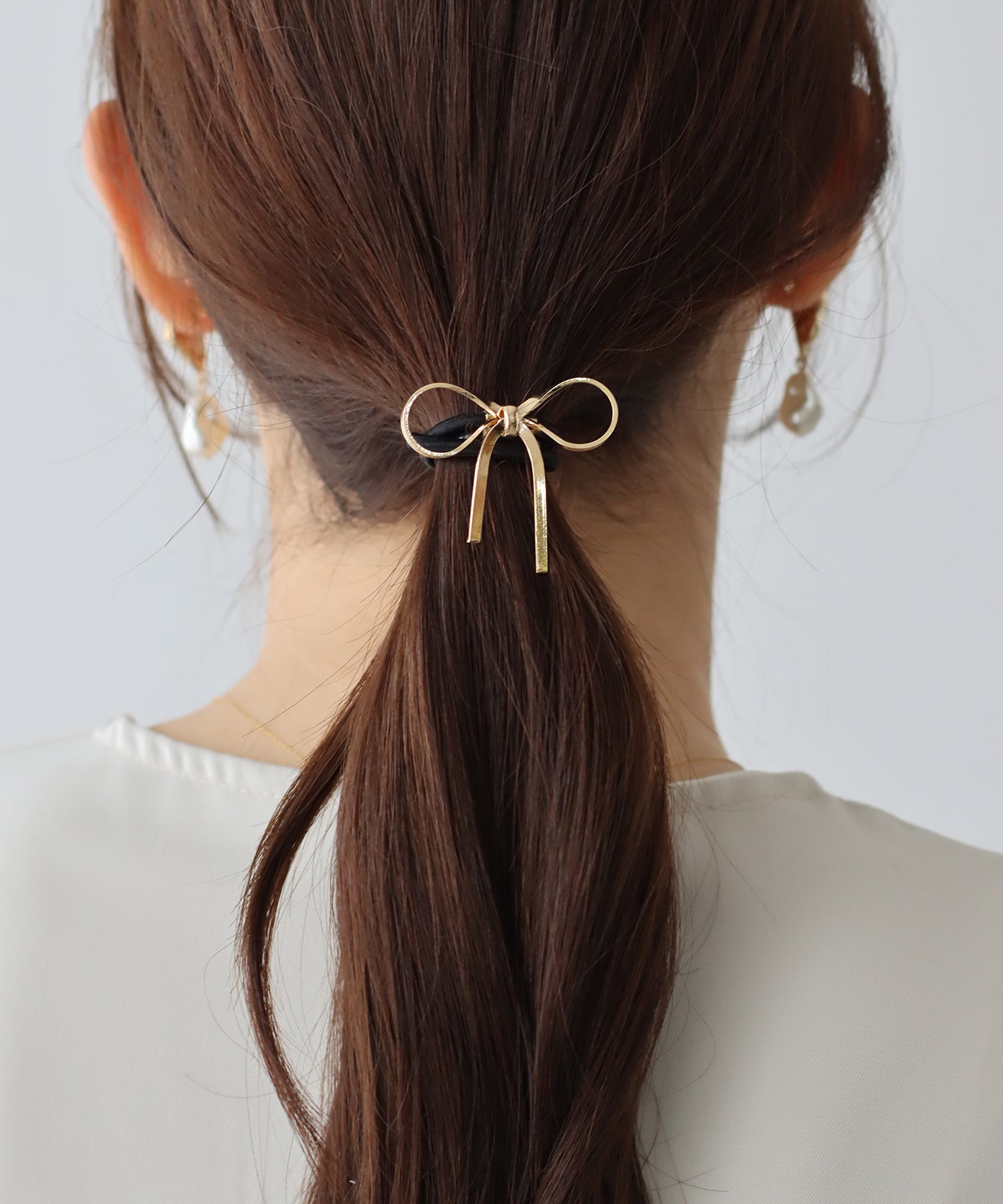 メタルラインの華奢なリボンモチーフのヘアゴム