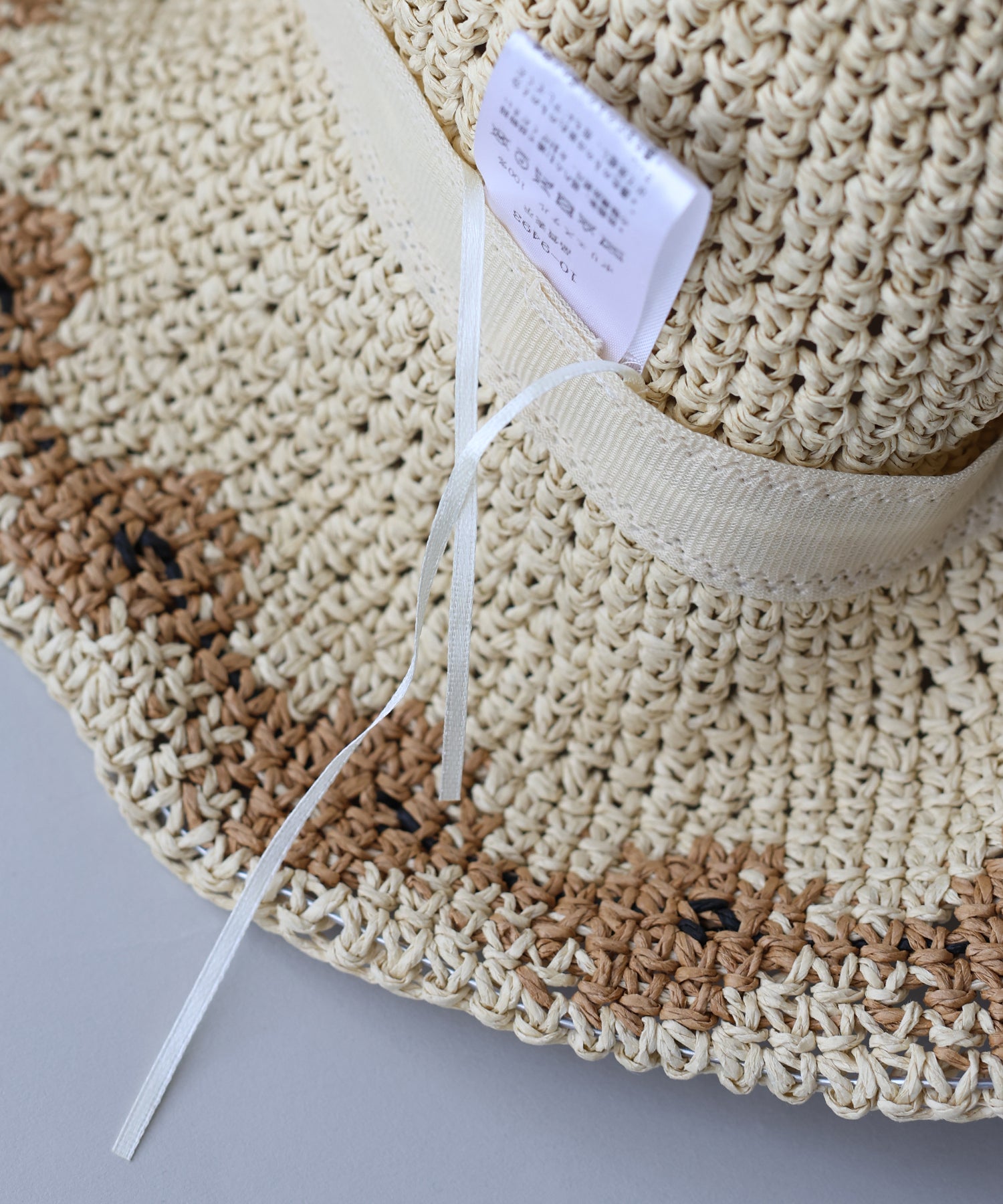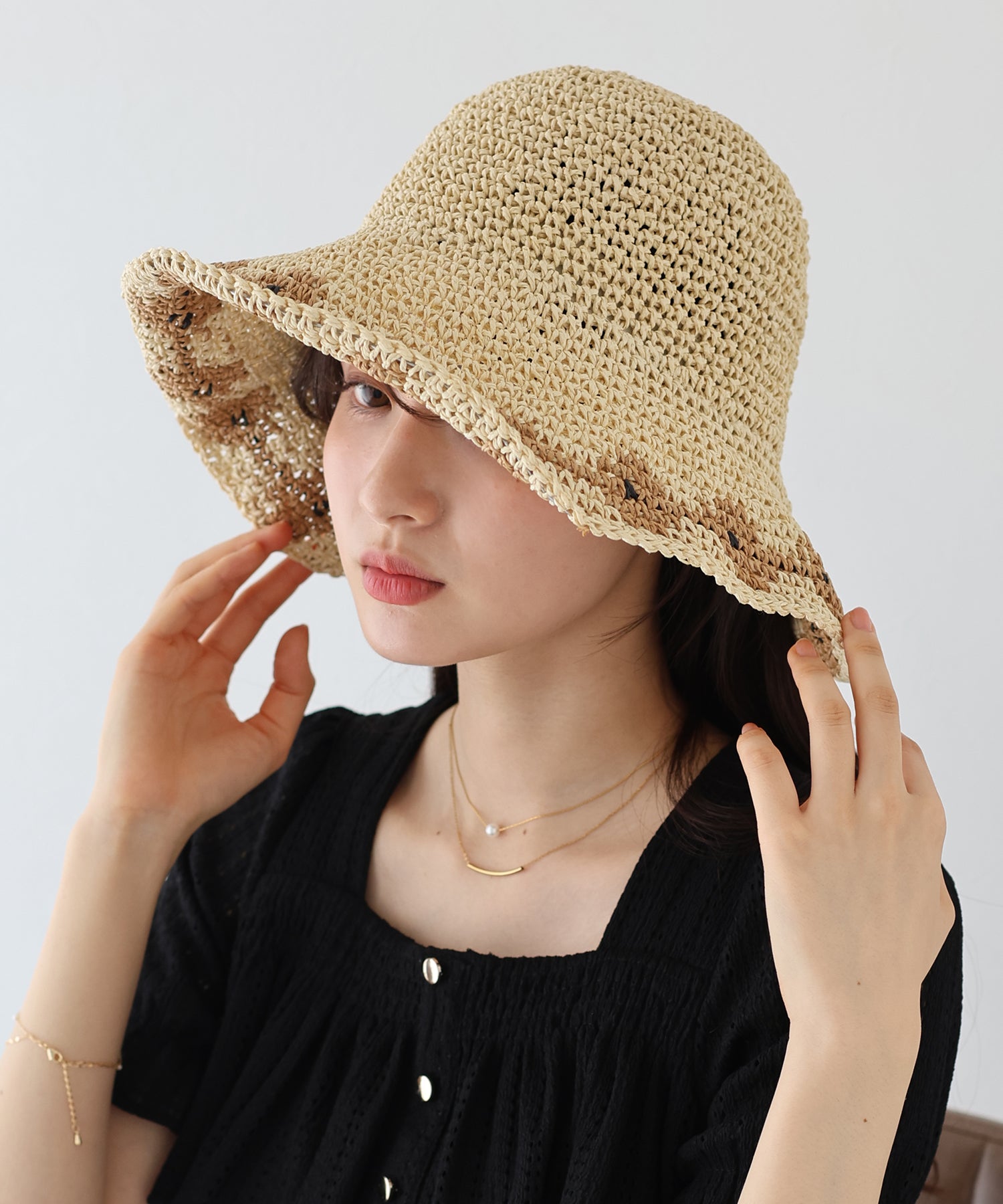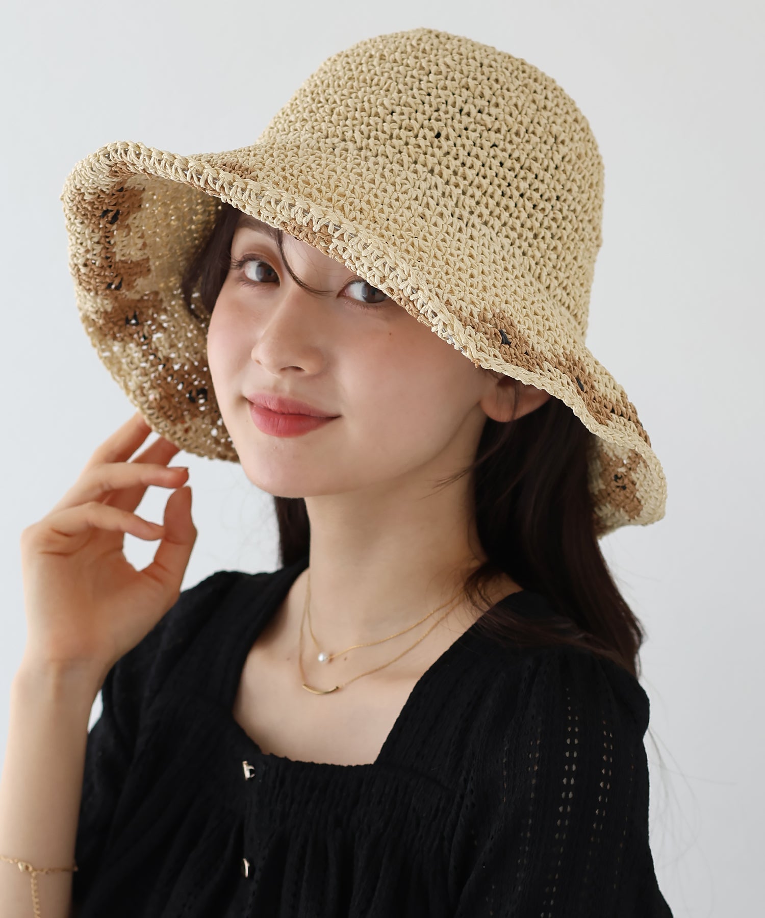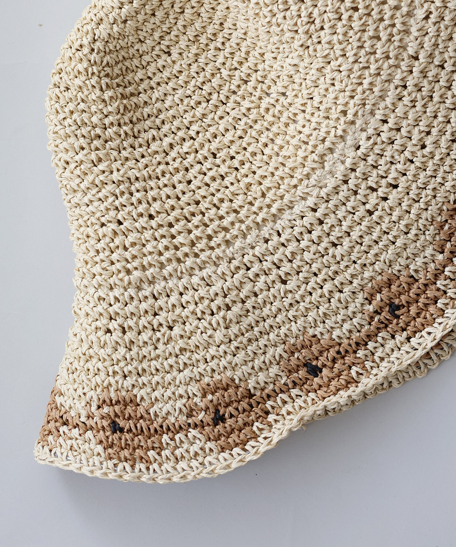 ざっくりした編地なので通気性が良く、ツバ部分にワイヤーを入れているのでお好みの形にアレンジ可能。