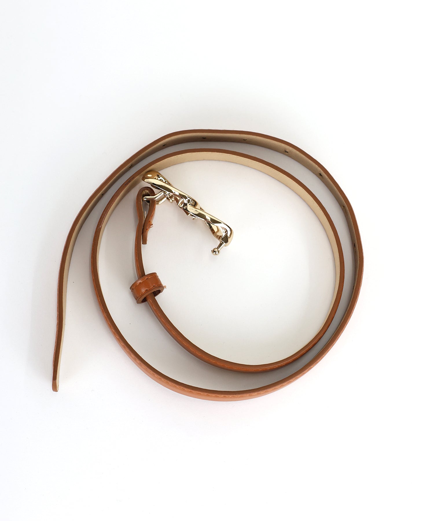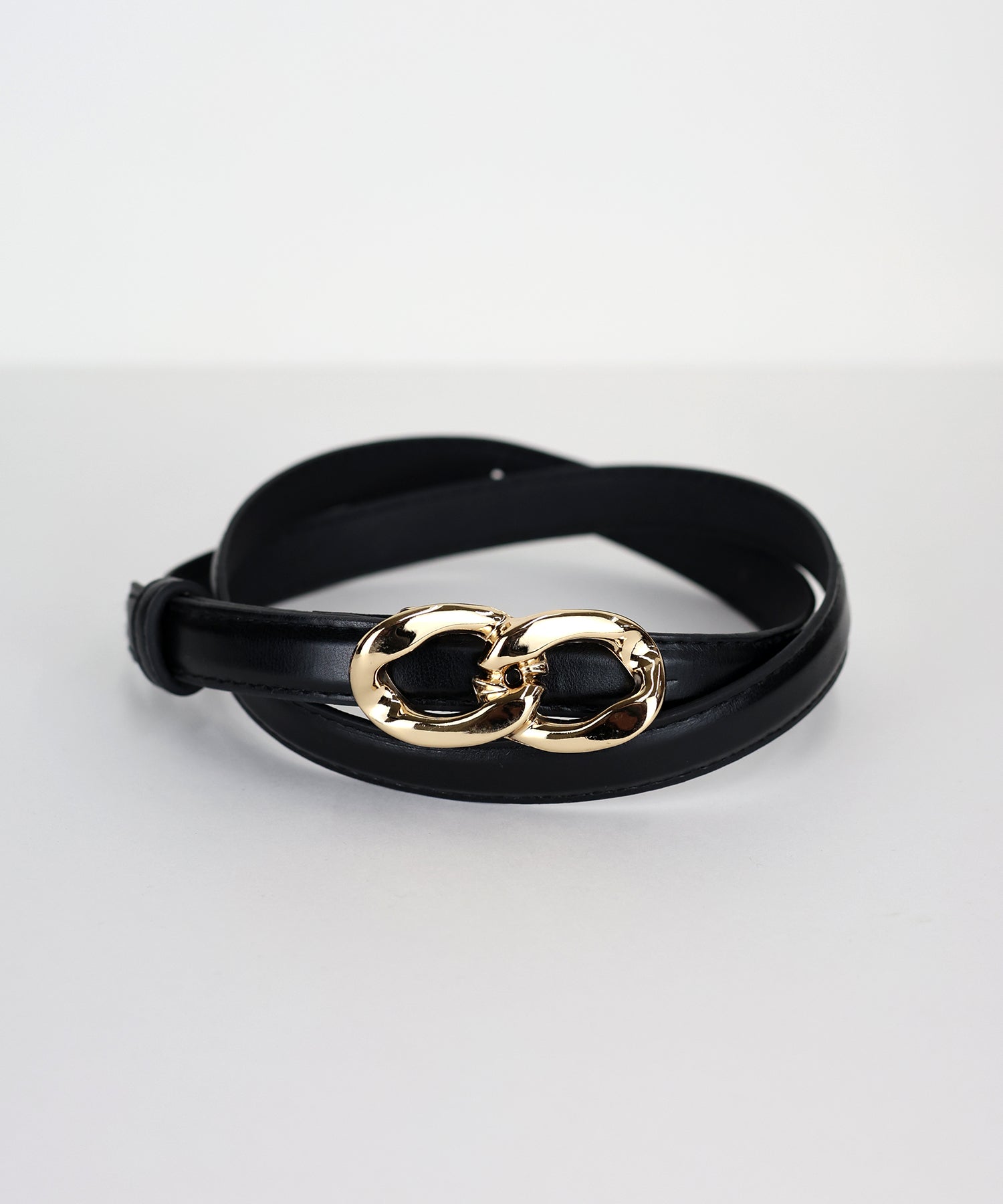 定番のベルトデザインにゴールドのダブルリングのバックルがコーディネートのアクセントになります。