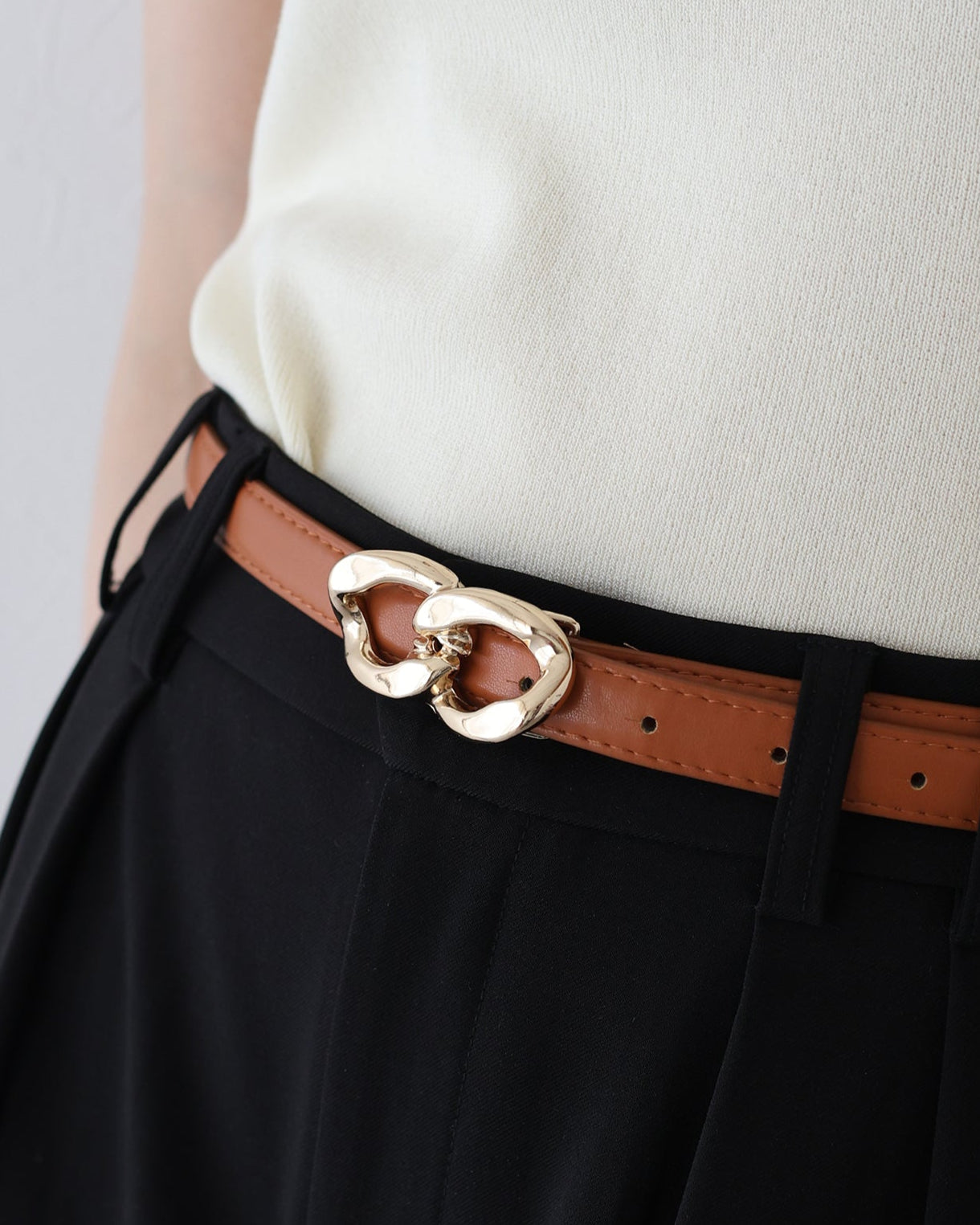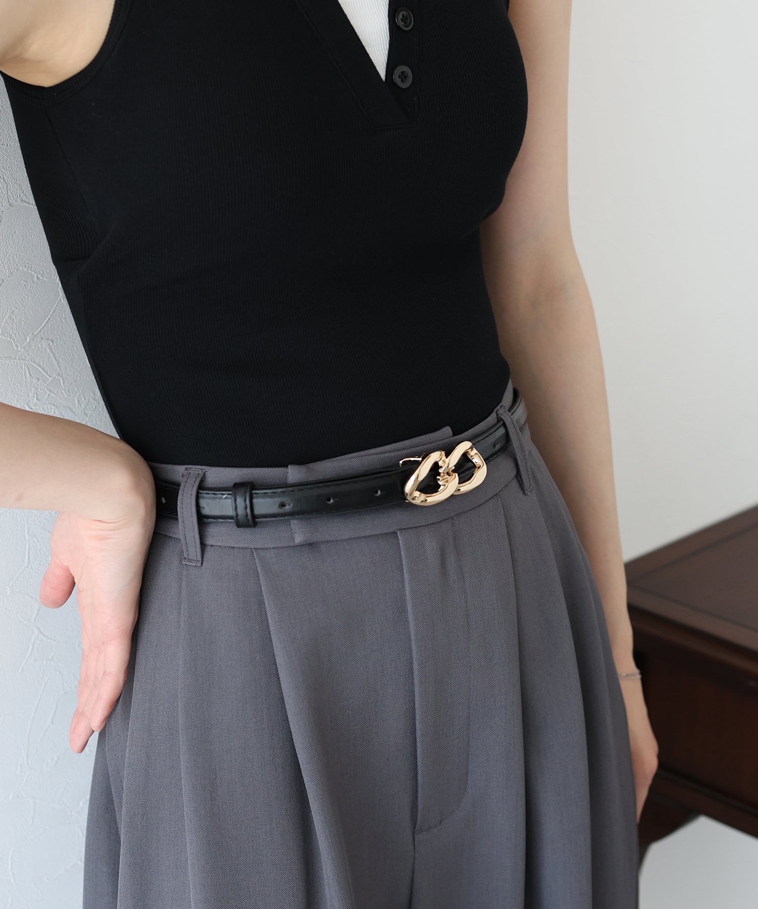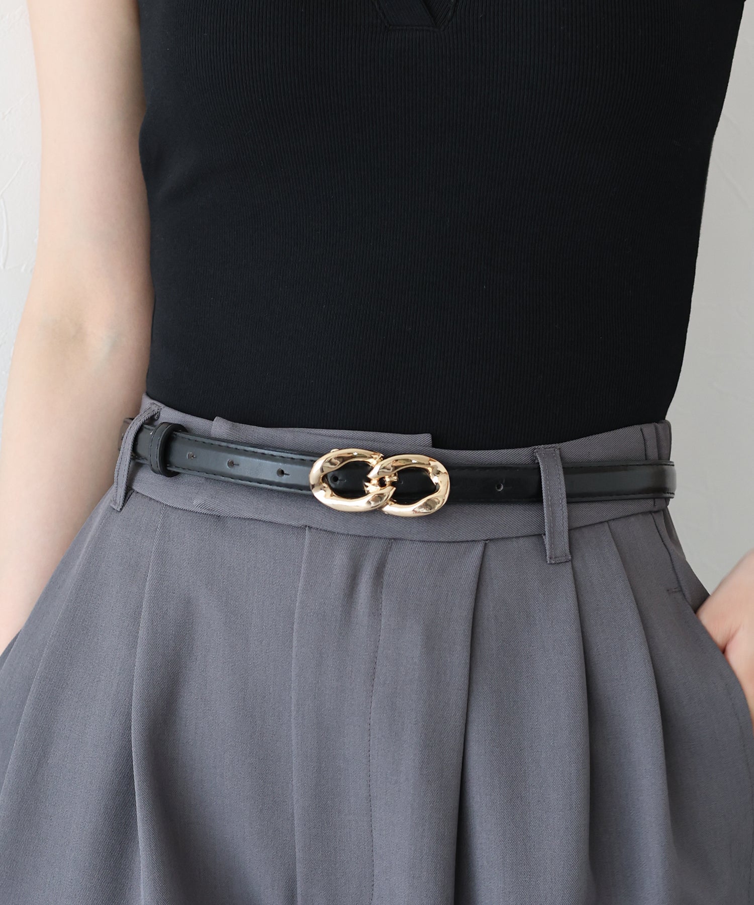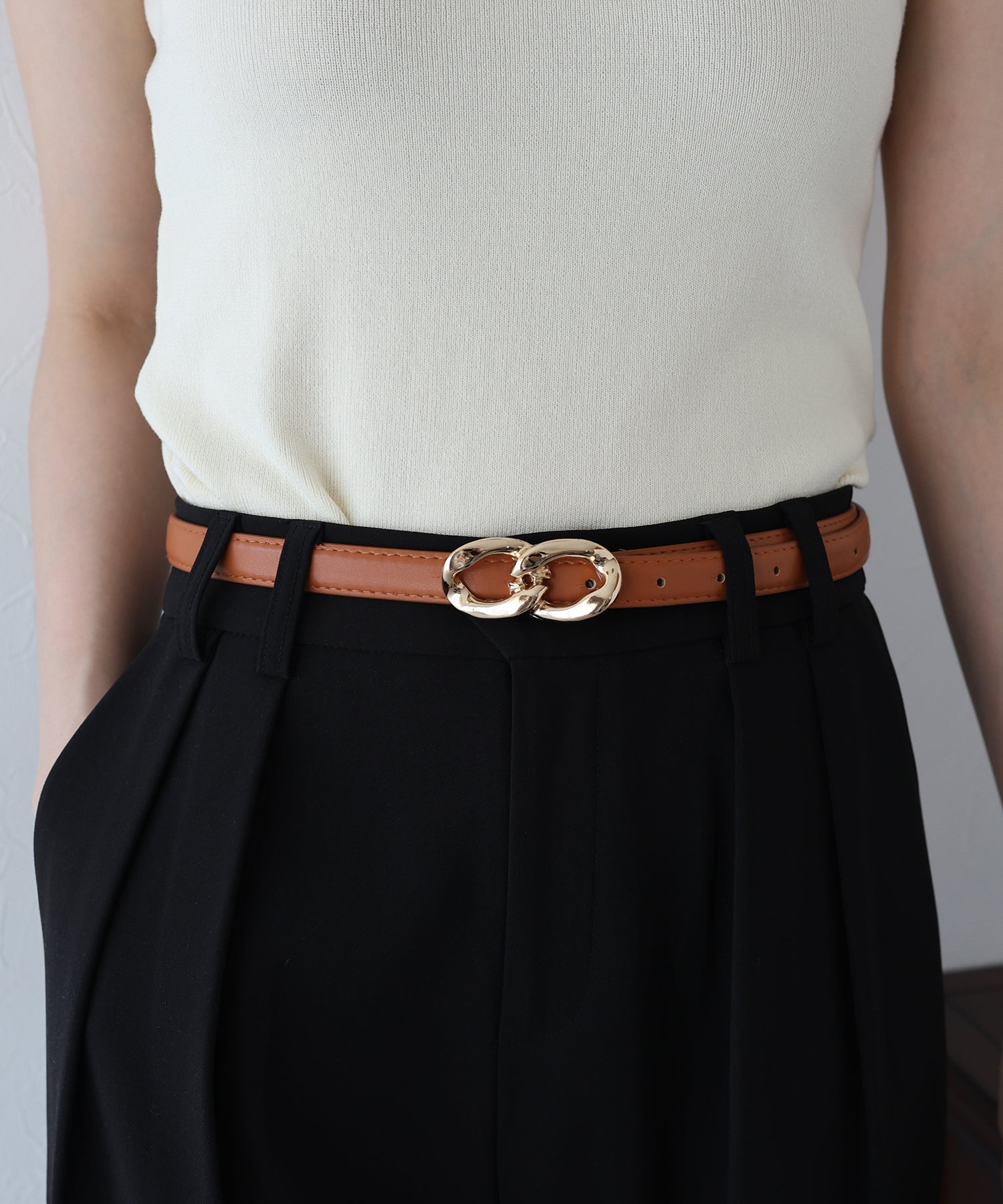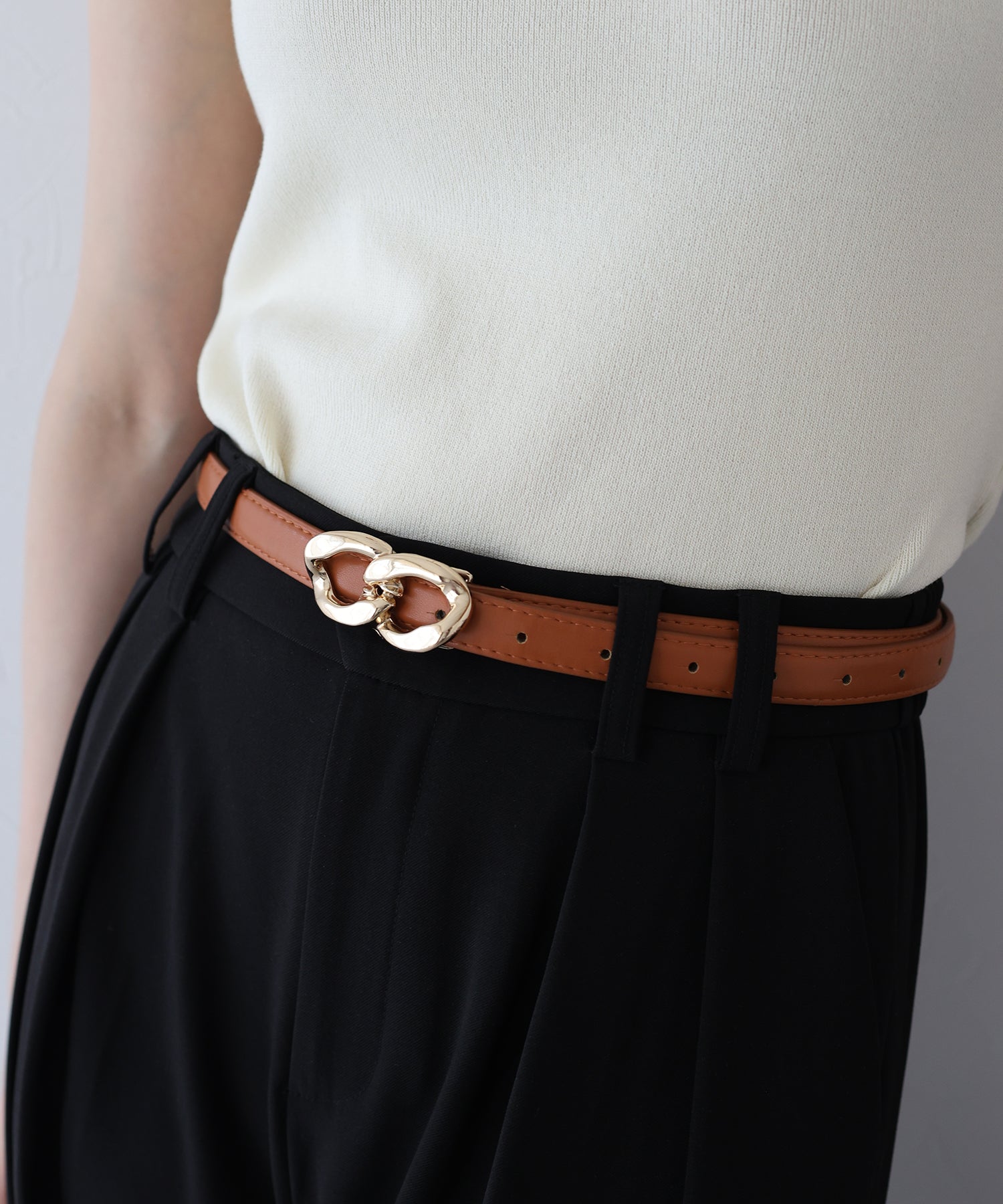 ボトムスにはもちろん、シャツやワンピースなどのウエストマークにもおすすめです。