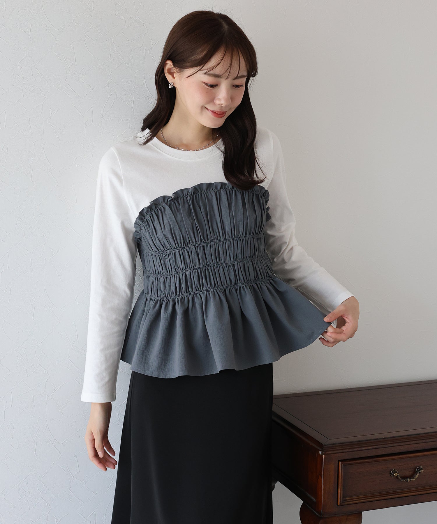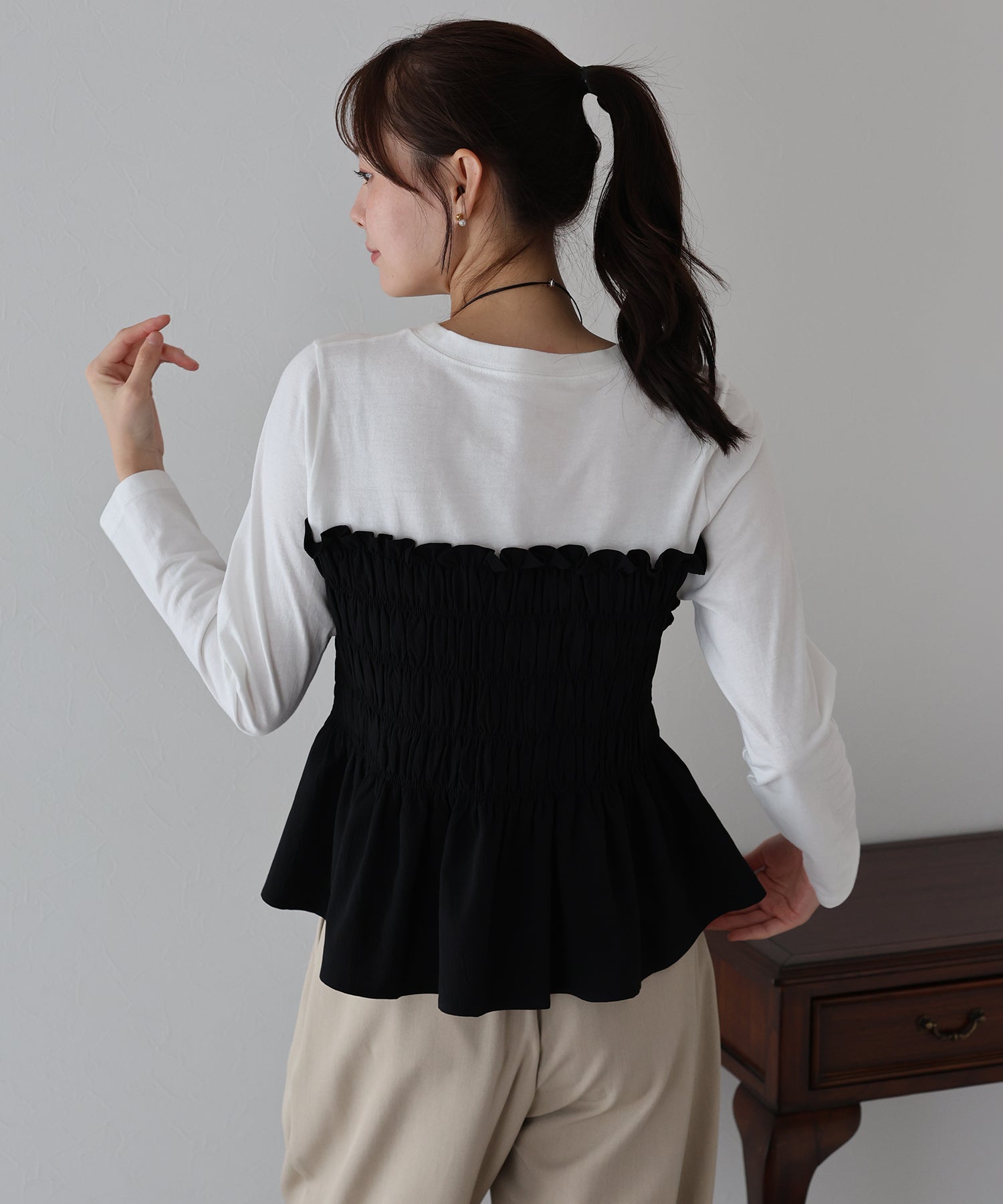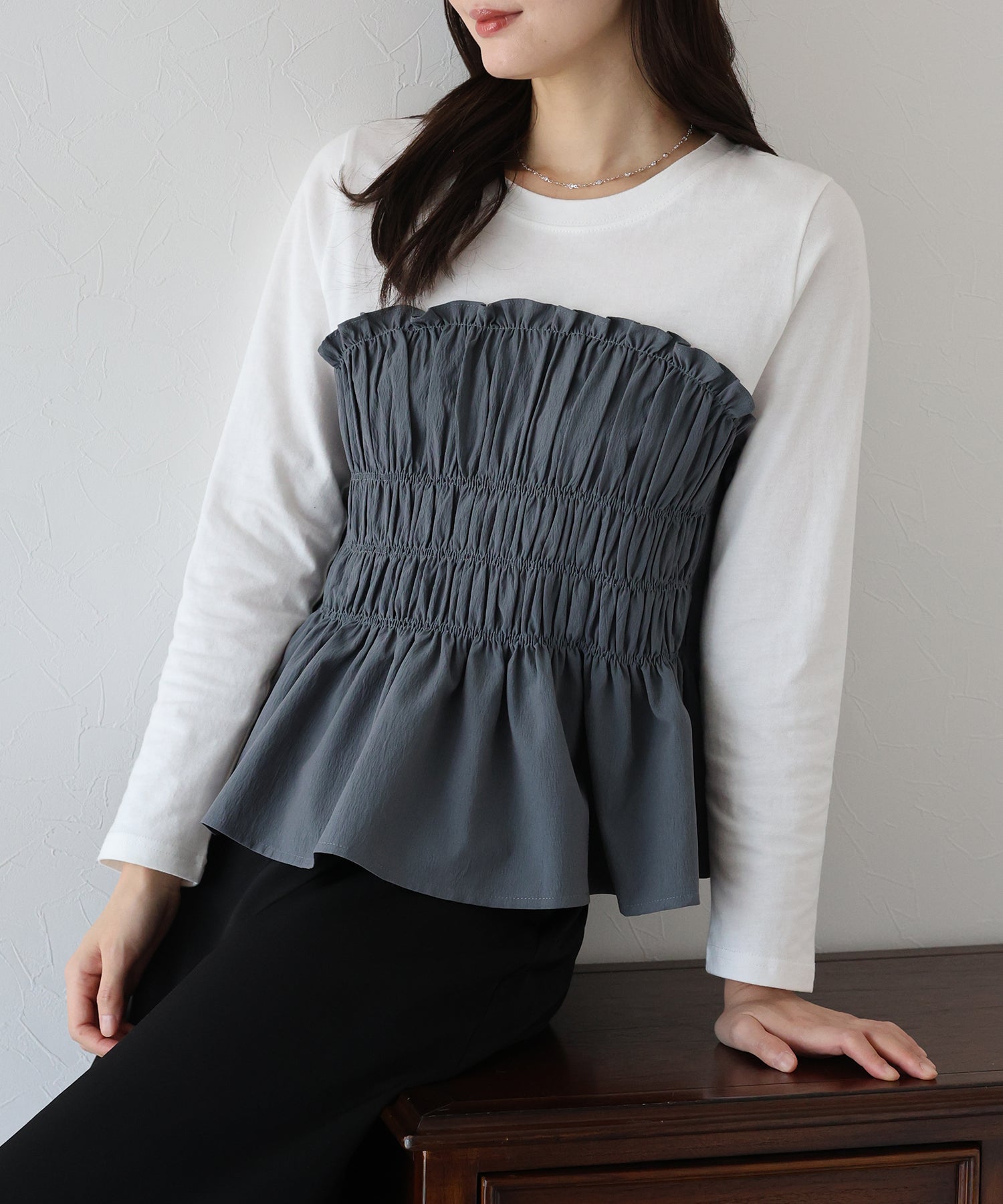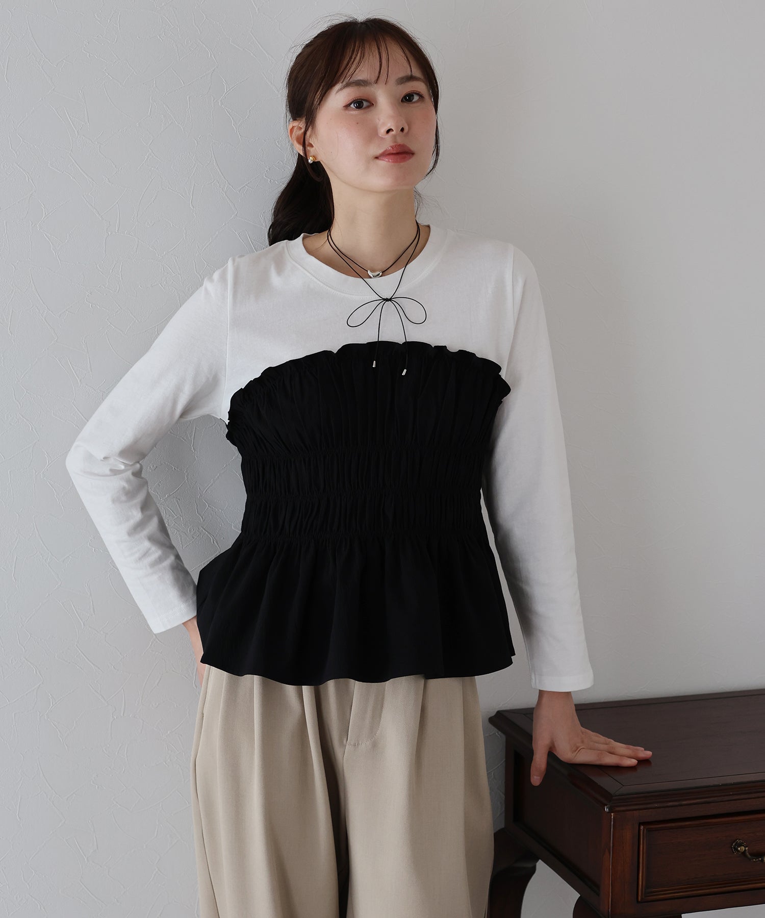 ロンTにビスチェをレイヤードしているかようなドッキングカットソー。