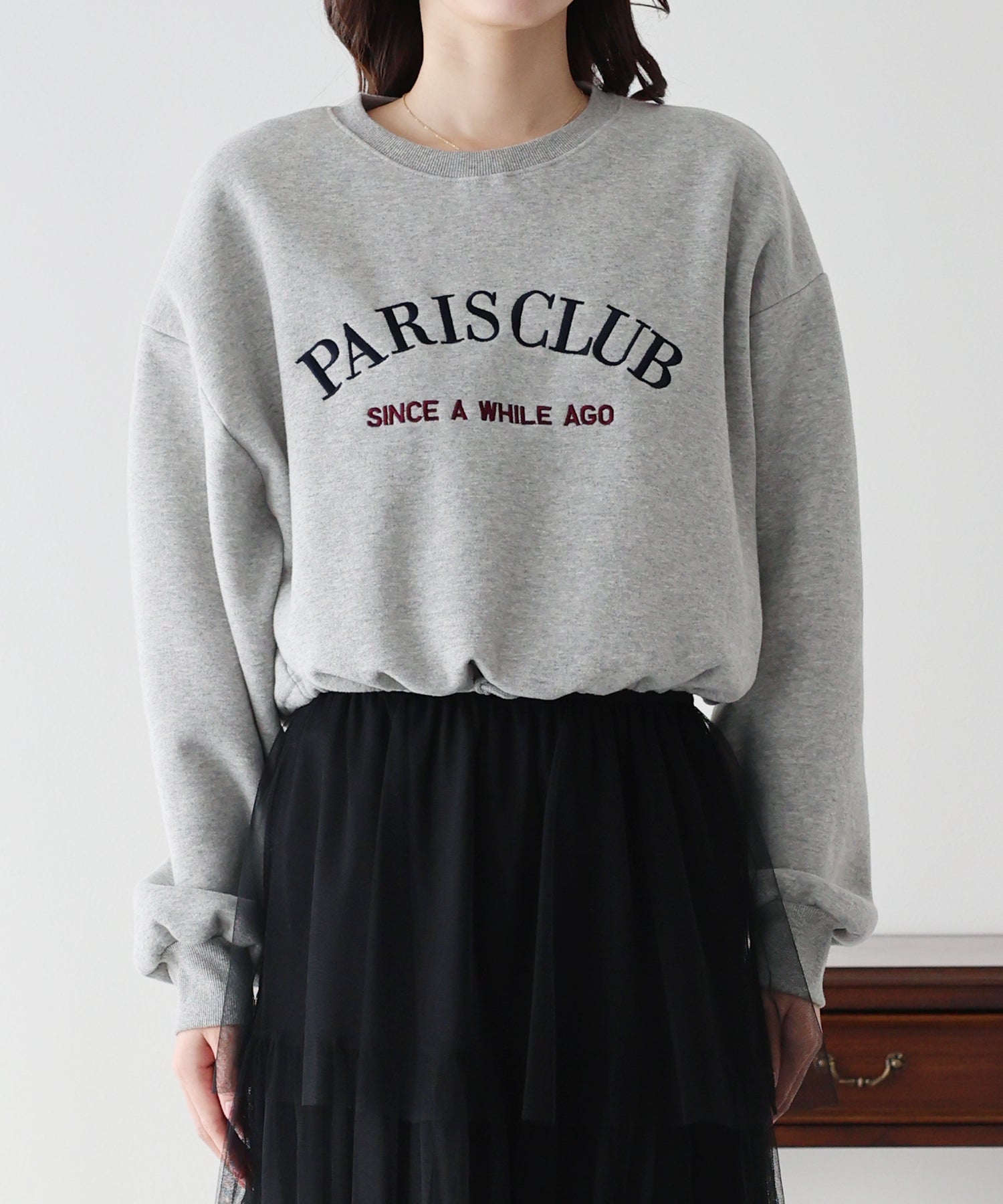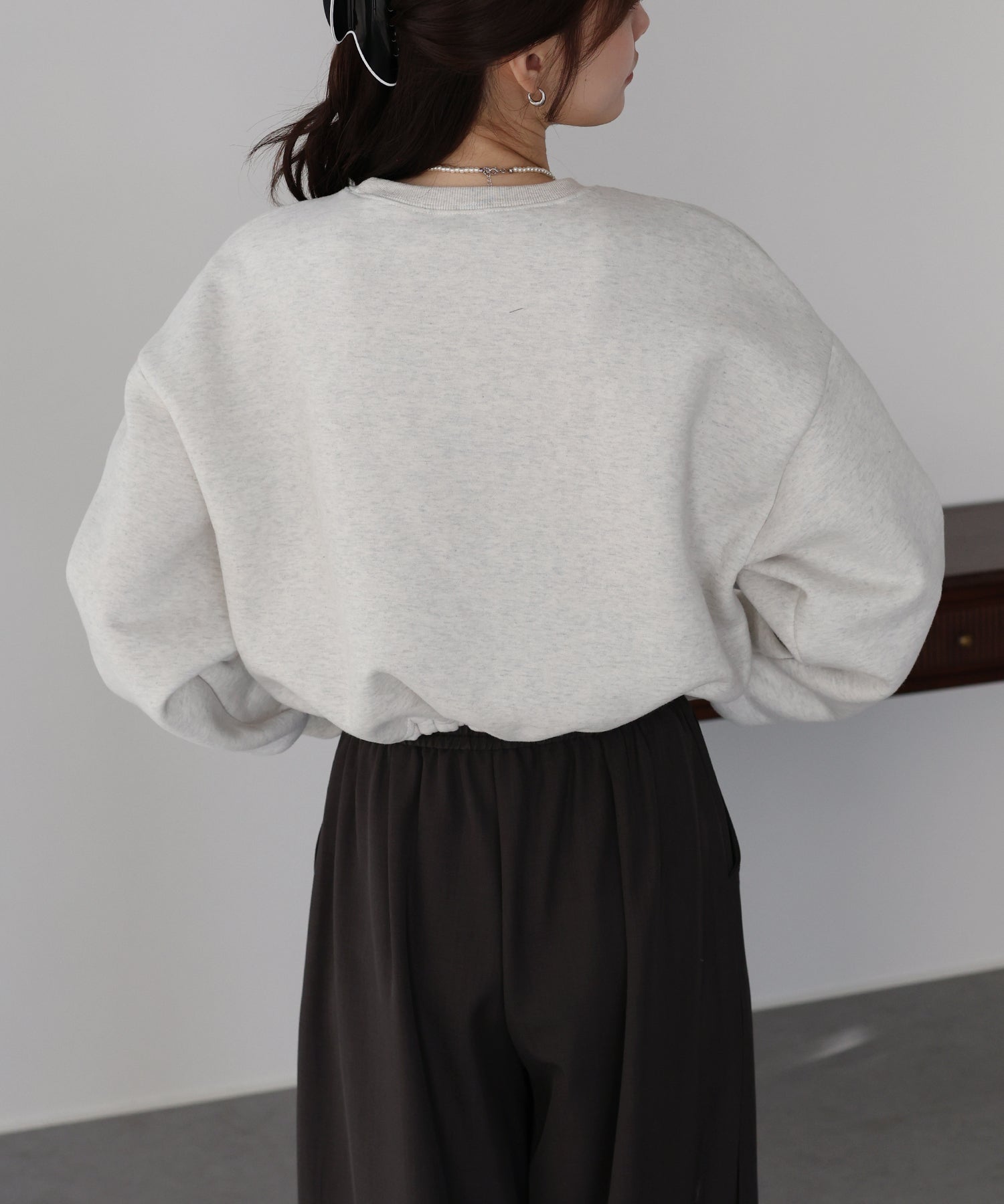 ショート丈ながらもルーズなシルエットで、今っぽい抜け感が叶うスウェットトップス。