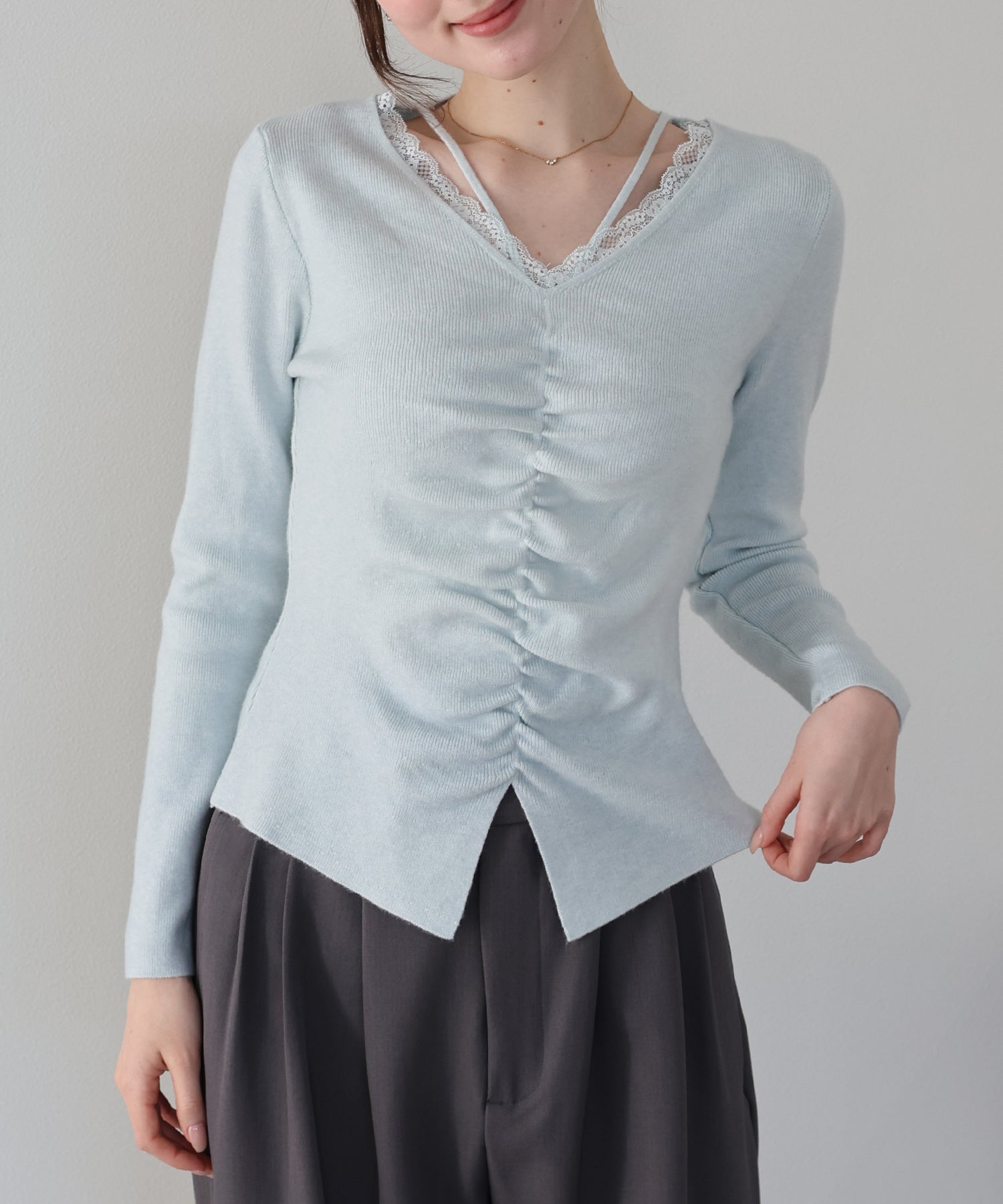 フェミニンな魅力が詰まったフロントギャザーレースニット