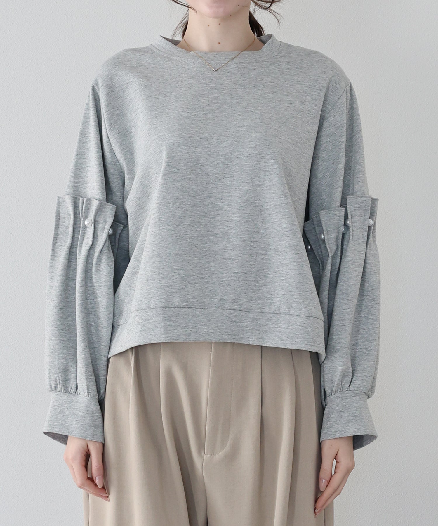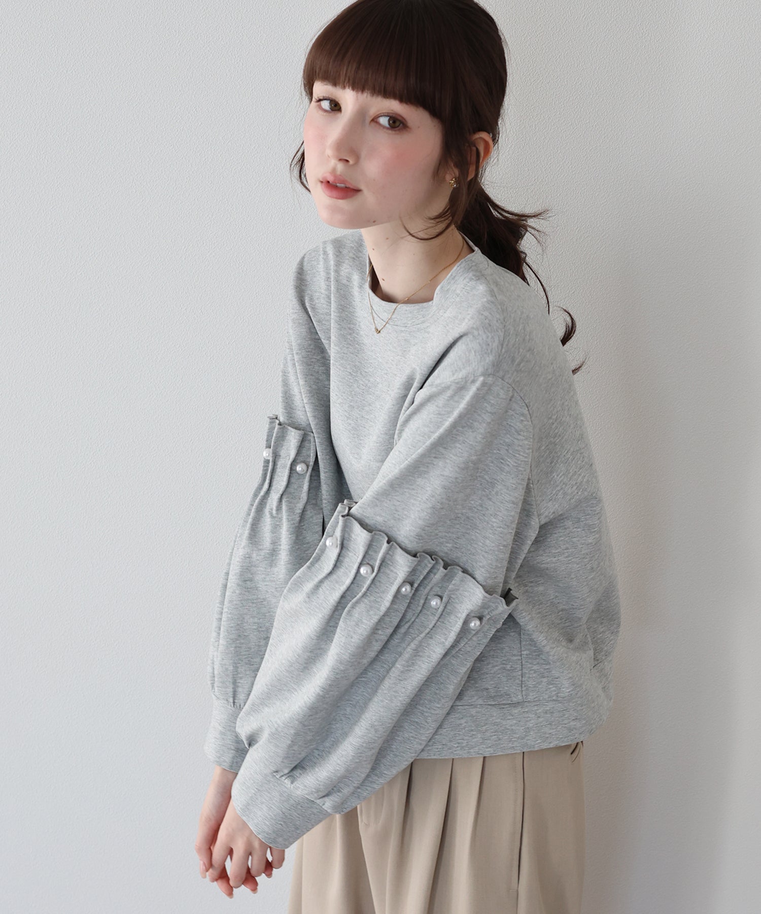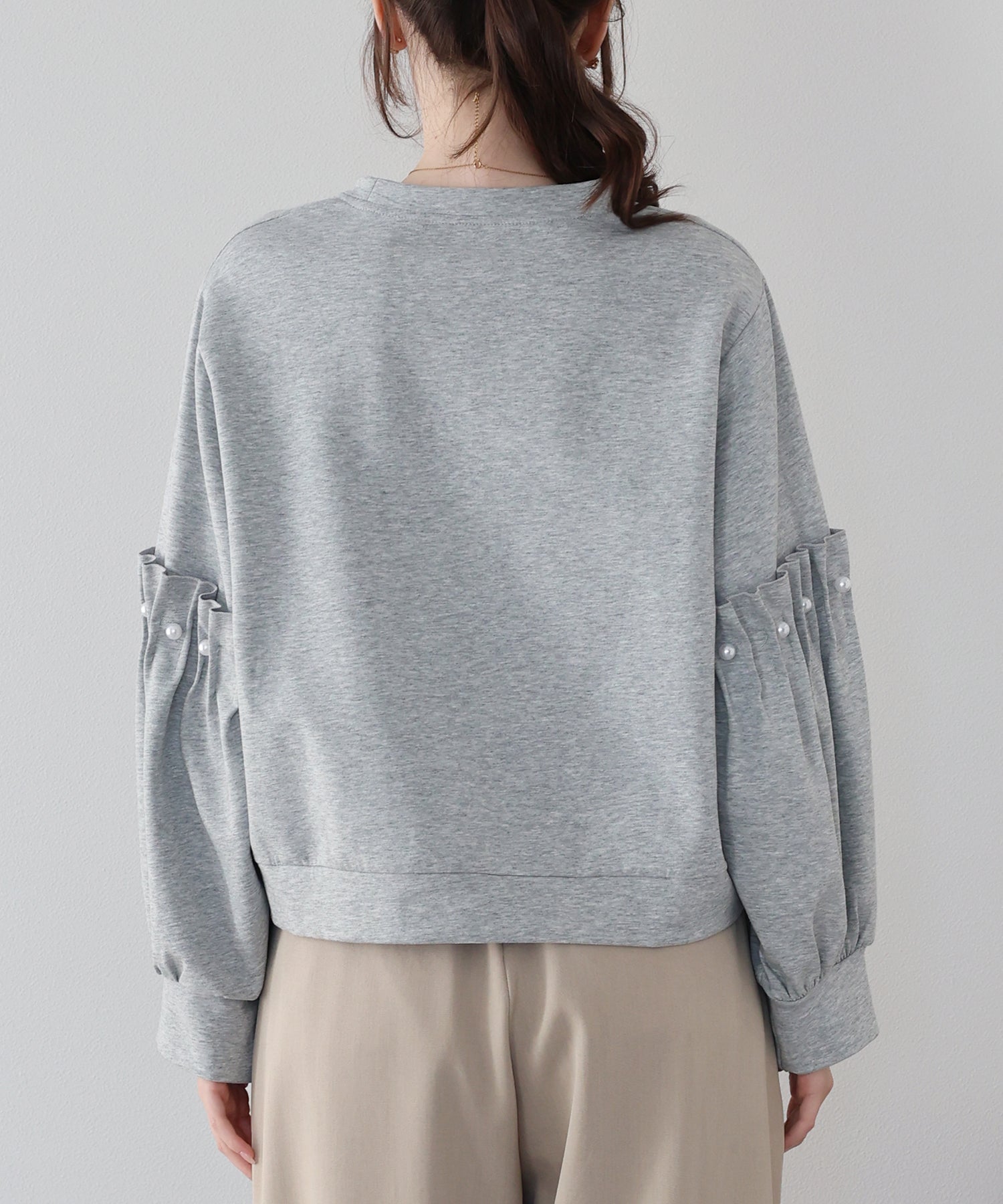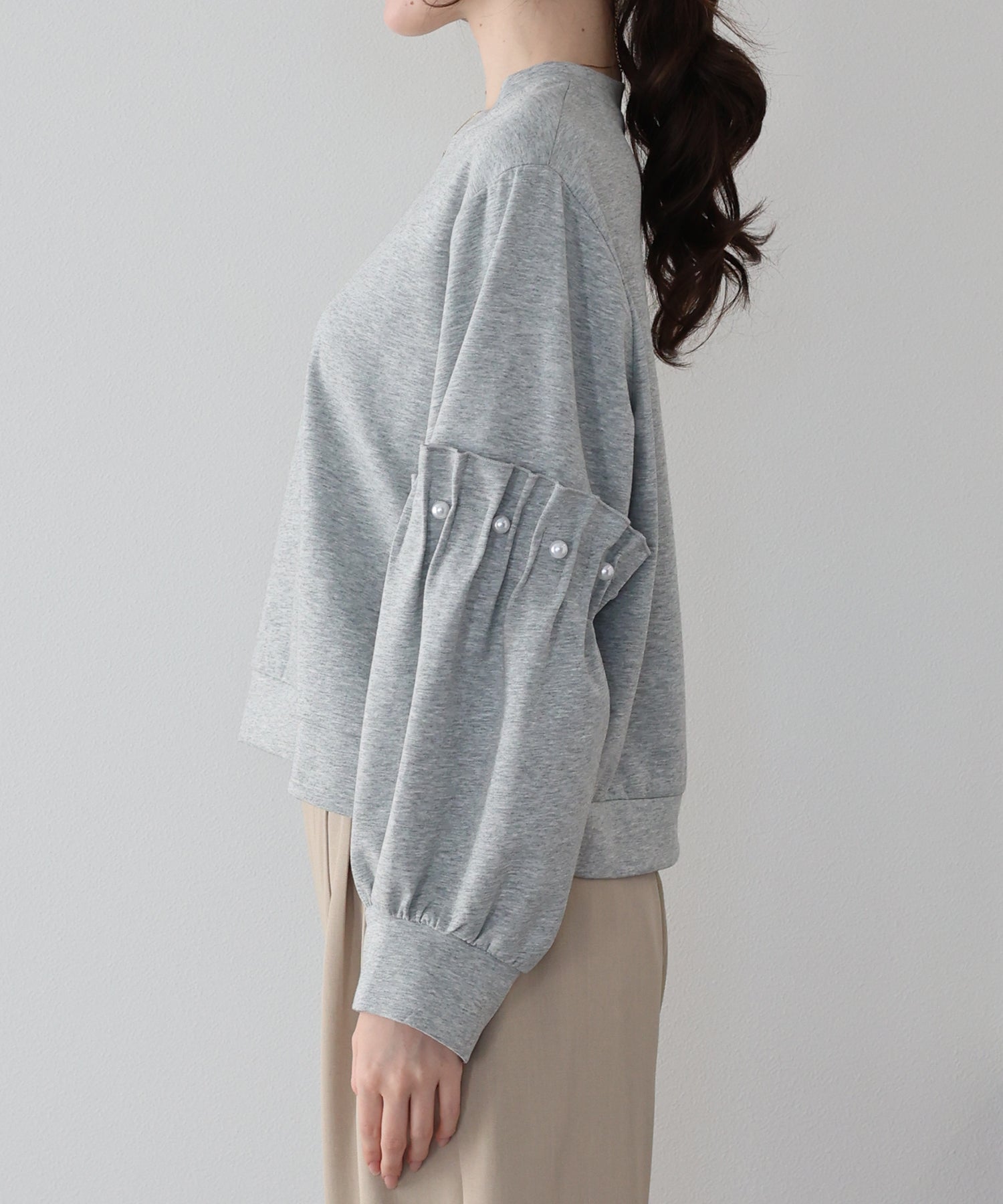 【早割5%OFF】ギャザースリーブパールスウェット