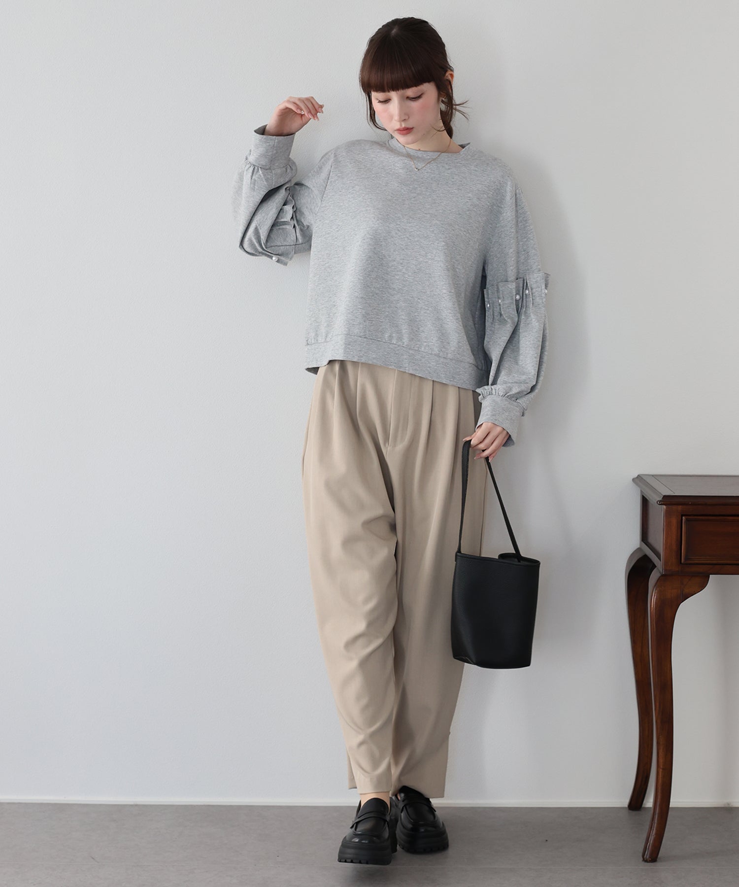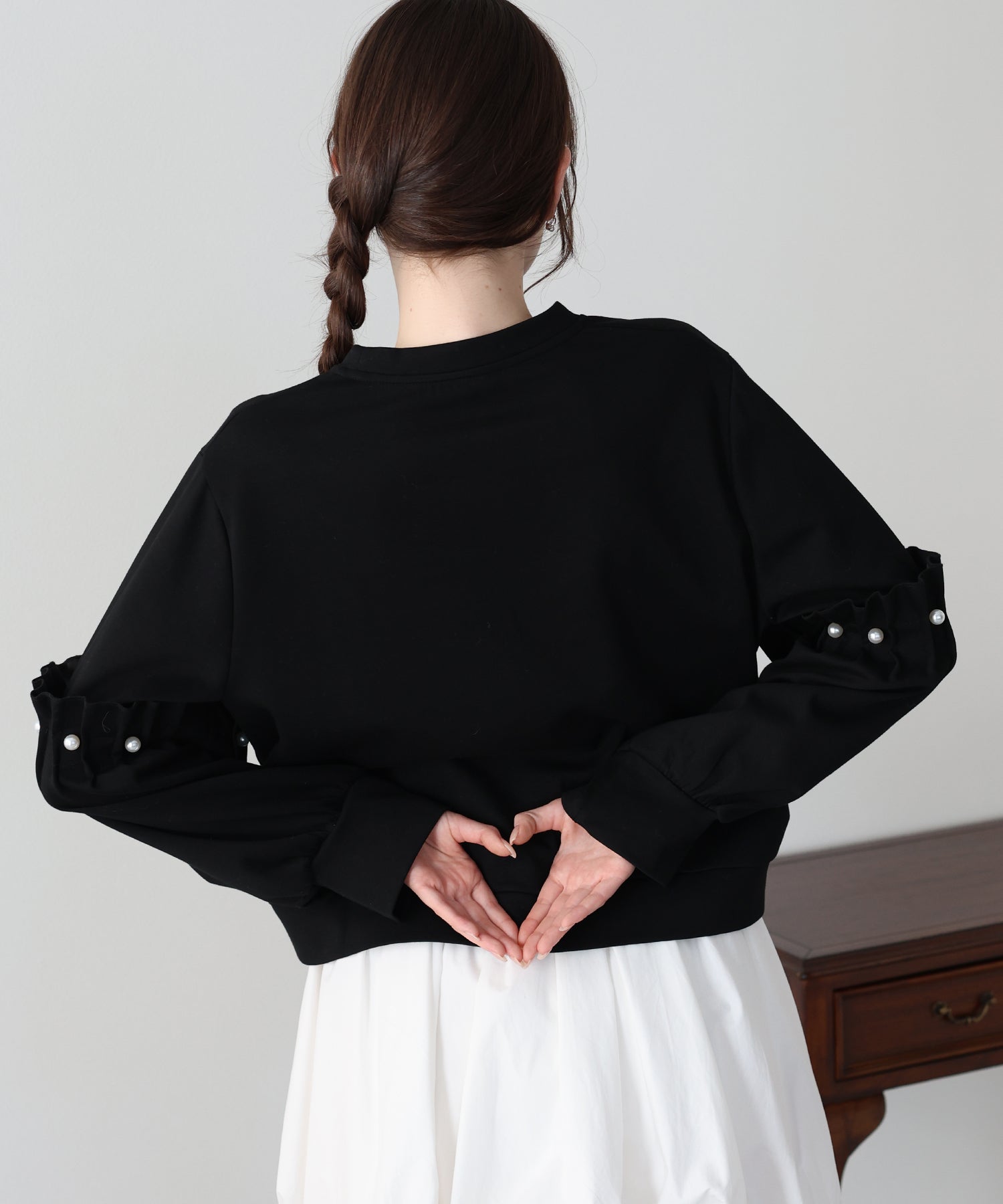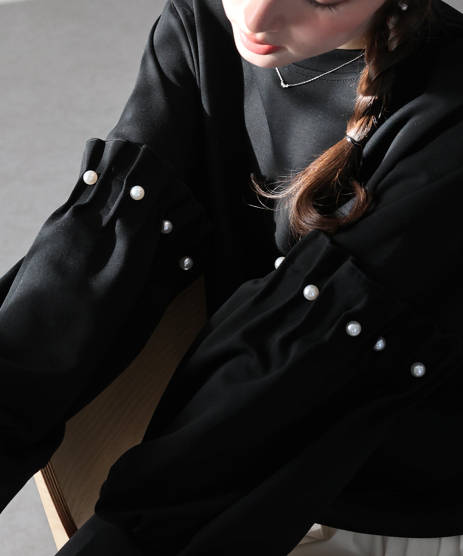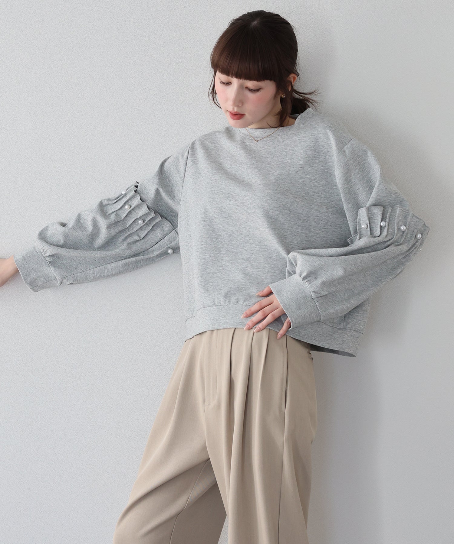【早割5%OFF】ギャザースリーブパールスウェット